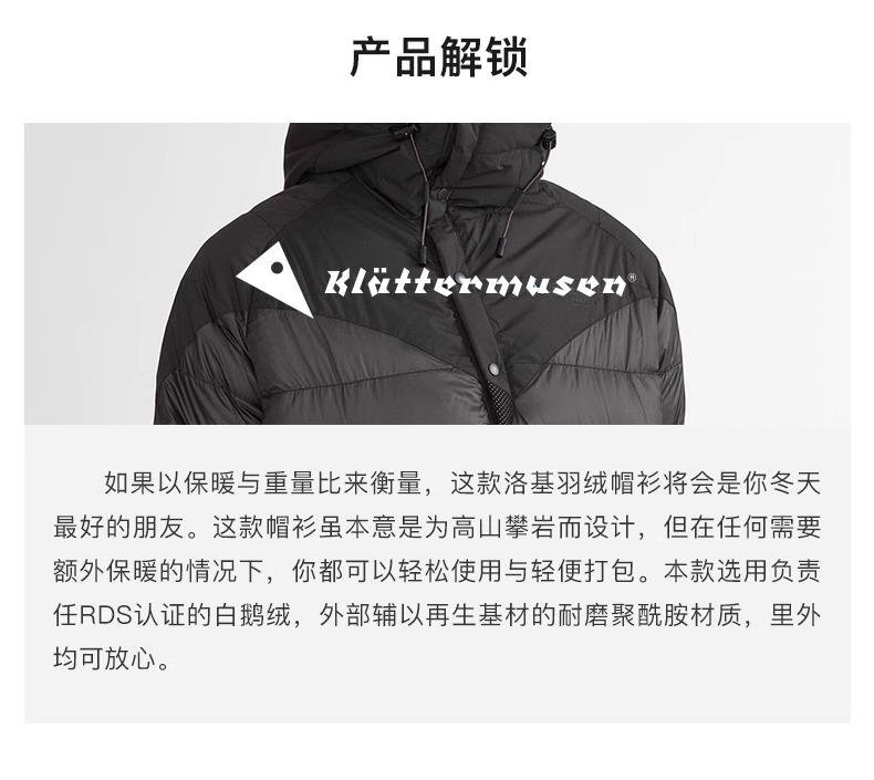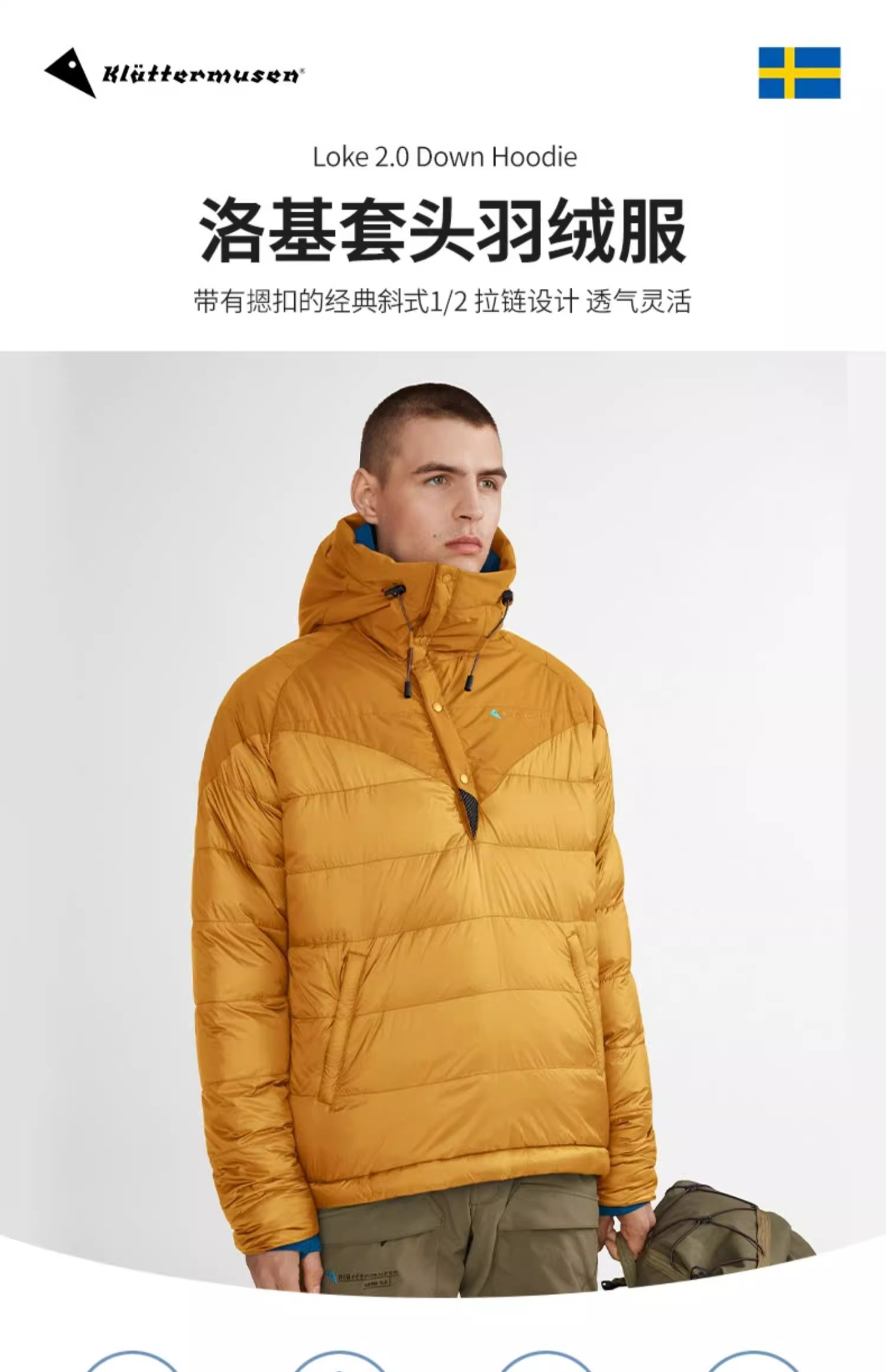 Klattermusen攀山鼠秋冬男士时尚套头羽绒服防寒服洛基带帽10644M