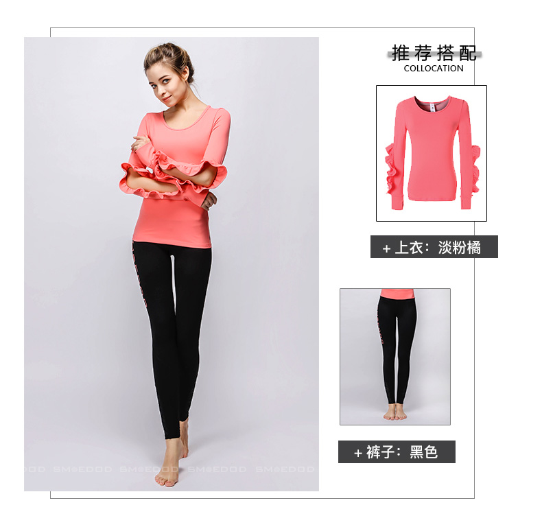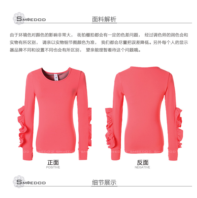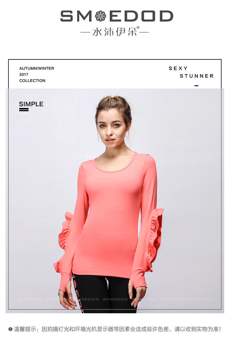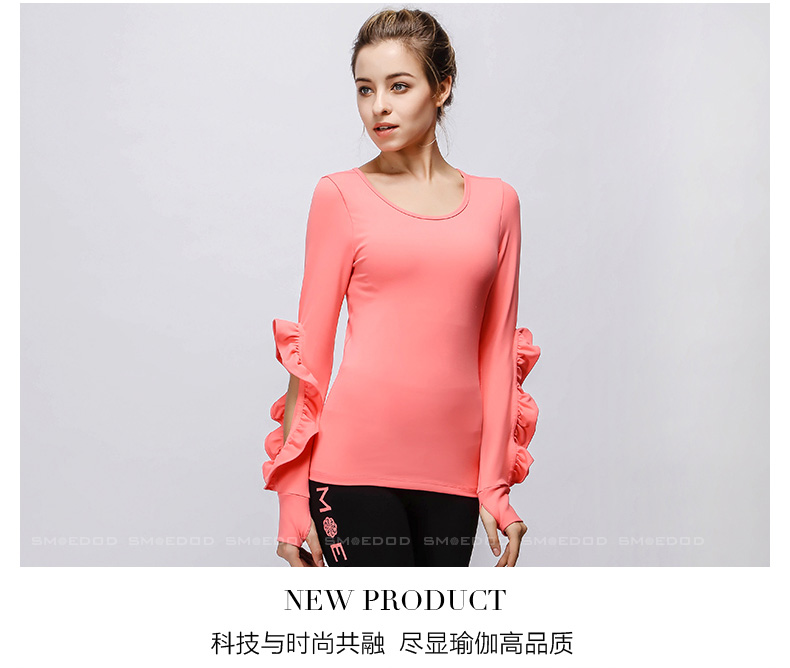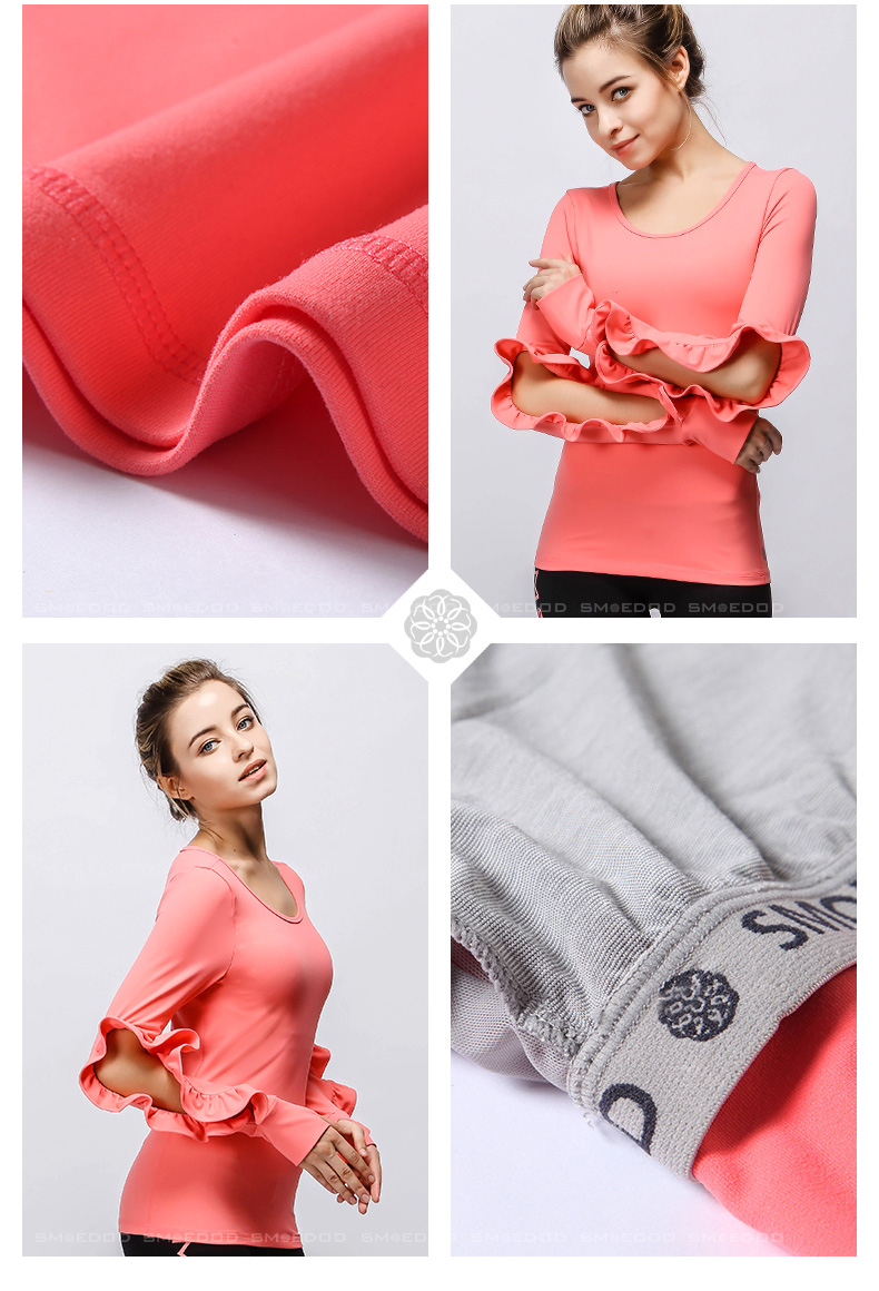 【清仓】水沐伊朵运动健身长袖上衣 时尚花边袖专业瑜伽服