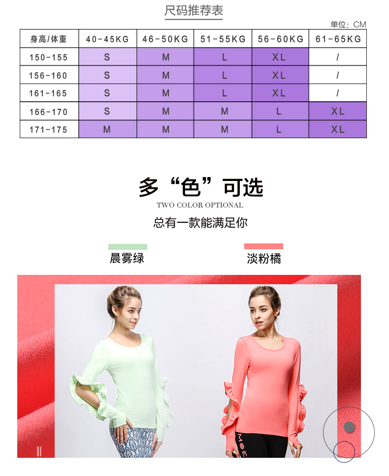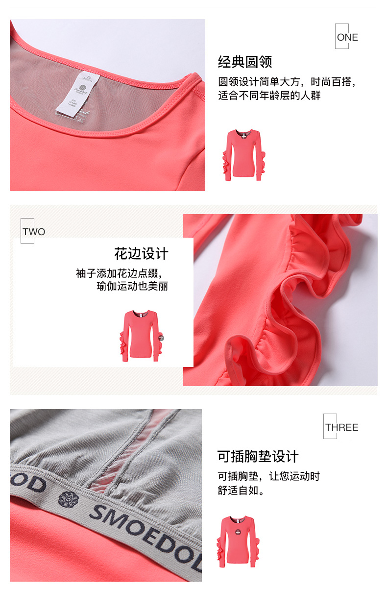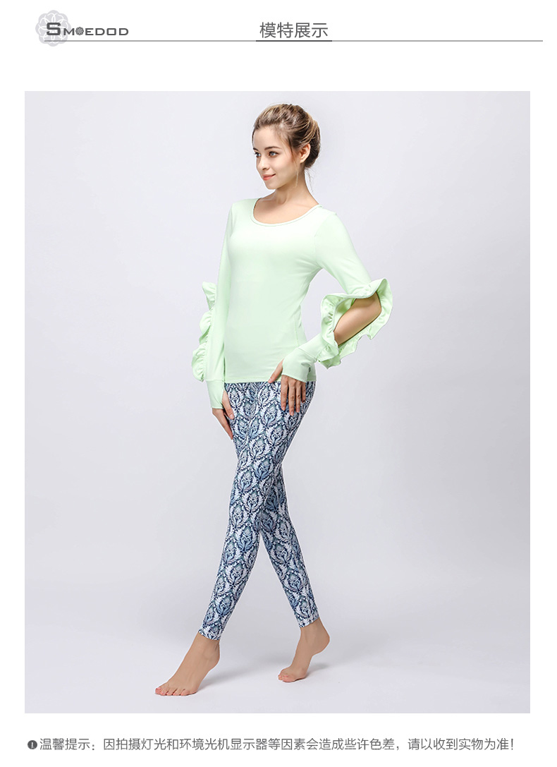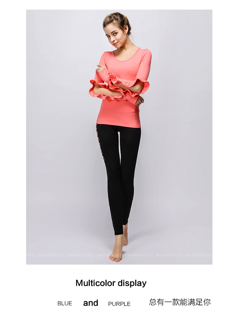 【清仓】水沐伊朵运动健身长袖上衣 时尚花边袖专业瑜伽服