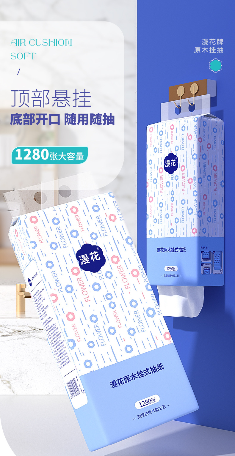 【超值家庭装 新旧款包装随机发】漫花挂抽纸 立体压花 笑脸纸巾 底部抽纸 餐巾纸 卫生纸 干湿 两用擦手纸