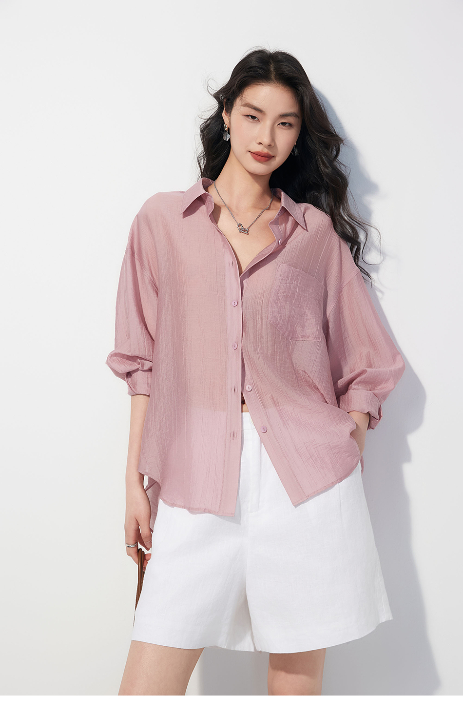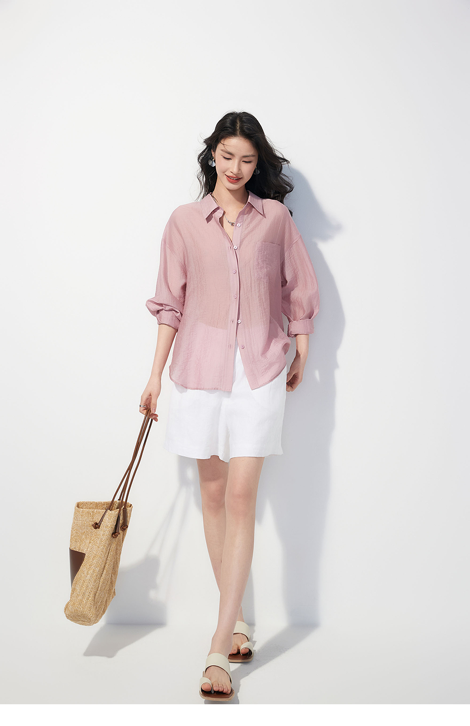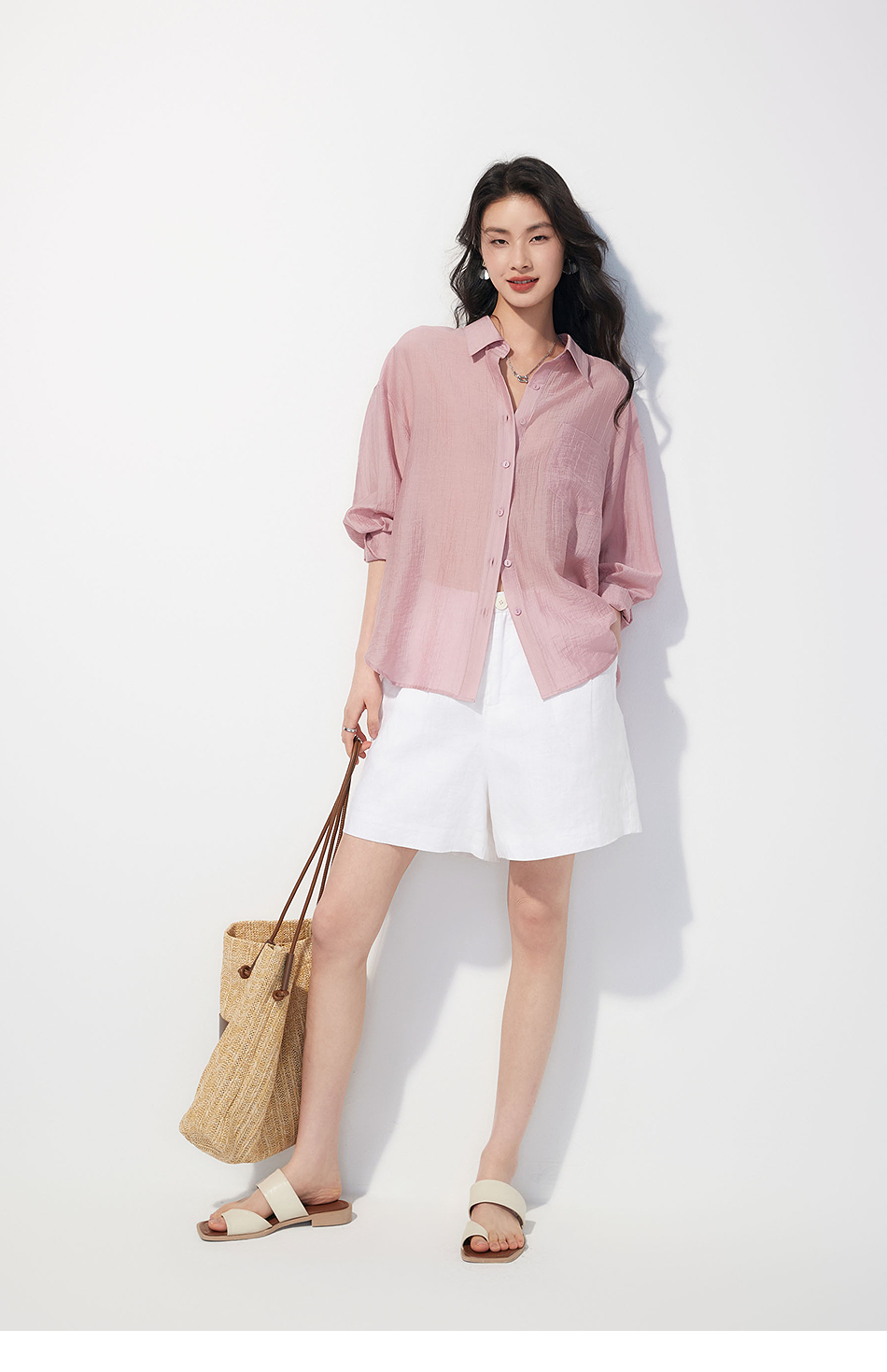棉仓363604012-初棉无袖口袋小金扣宽松版亚麻衬衫