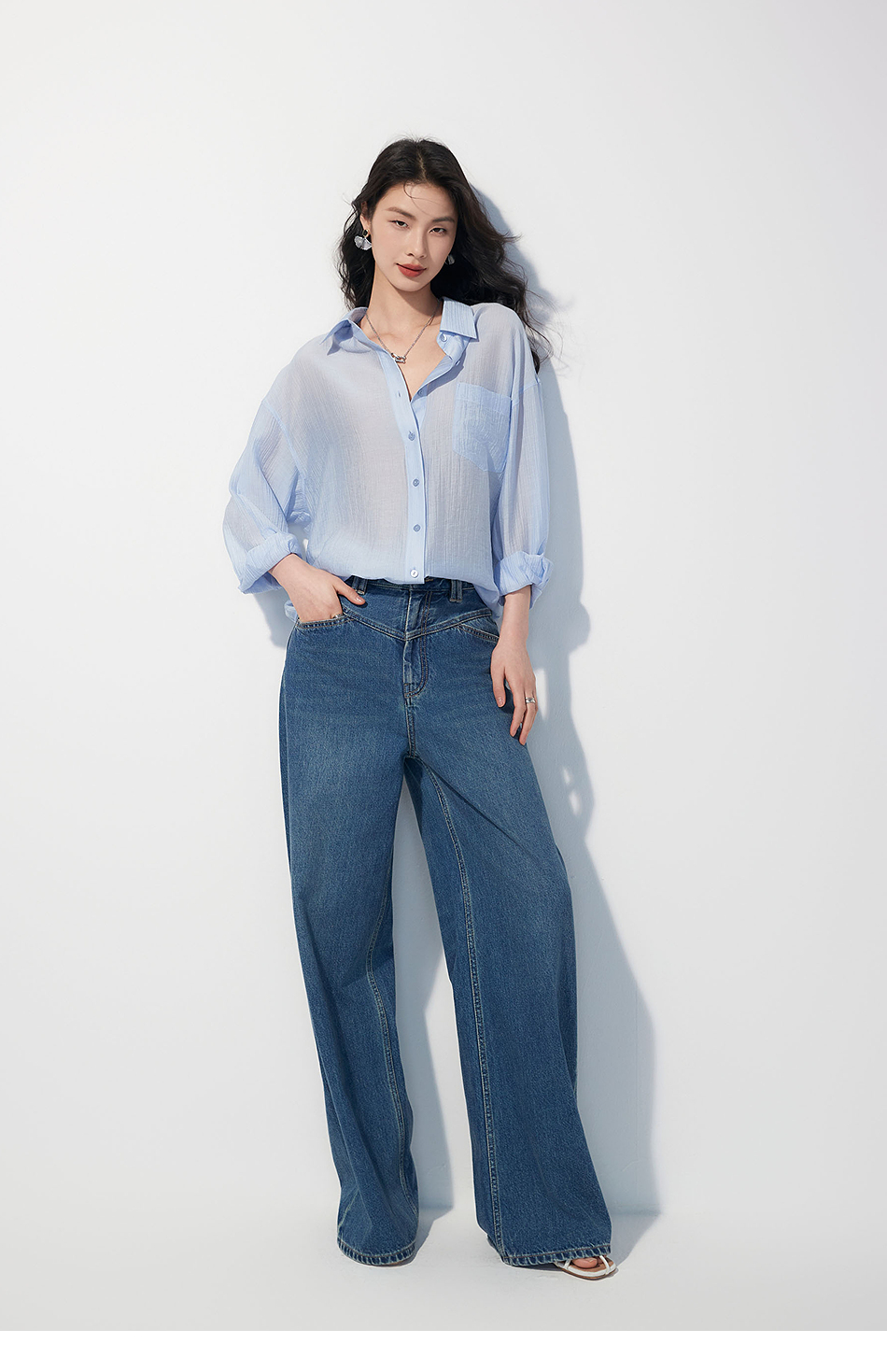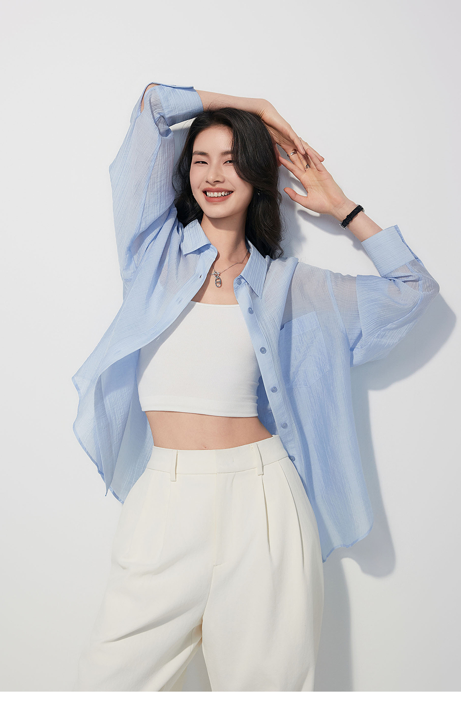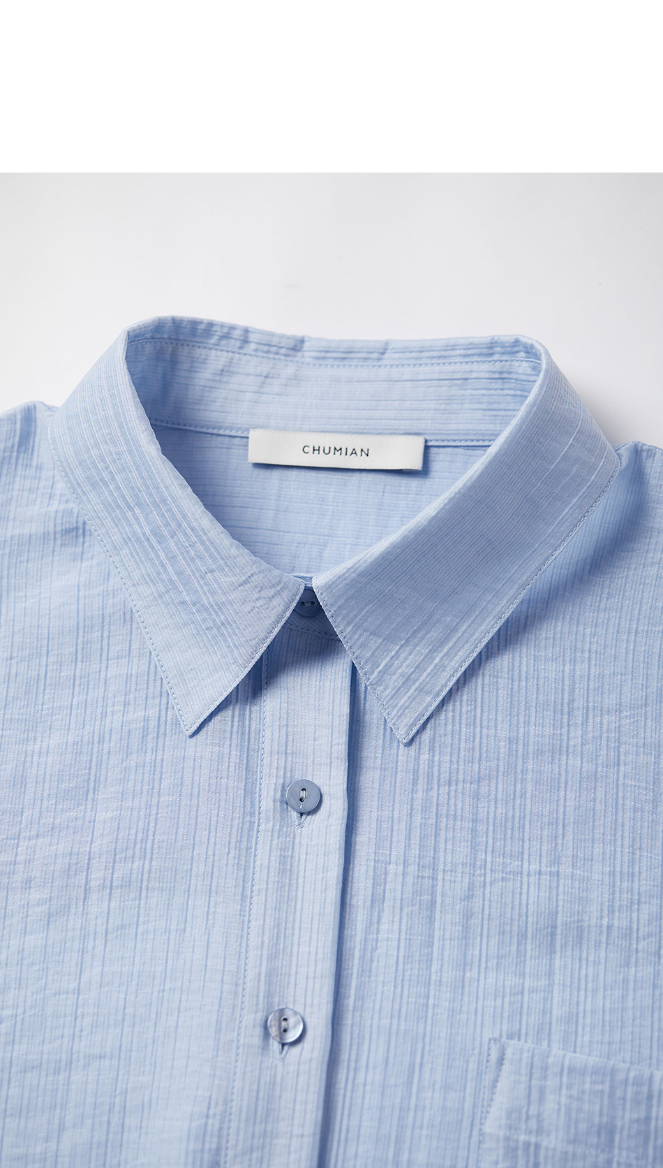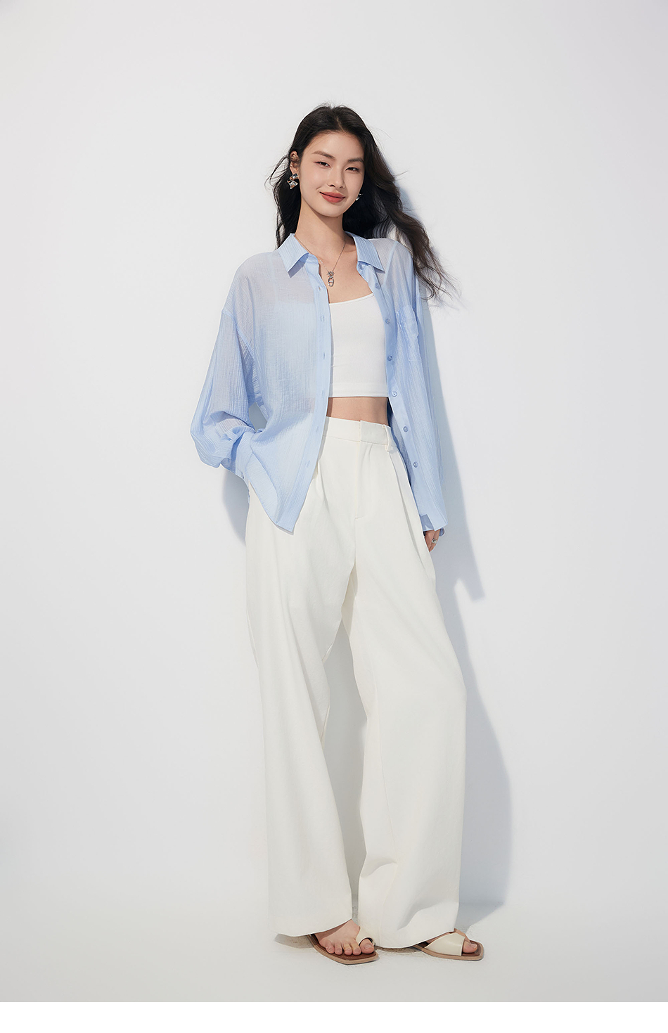 棉仓363604012-初棉无袖口袋小金扣宽松版亚麻衬衫