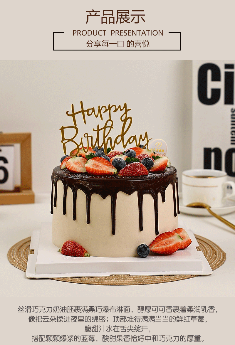 我们坚持当日接单、新鲜现做,拒绝罐头果肉与植物奶油,让每一口都保留食材本真的鲜活清甜。生活需要一点甜,我们的蛋糕不只是一份甜品,更是传递快乐的仪式感,为你带来视觉与味蕾的双重满足~