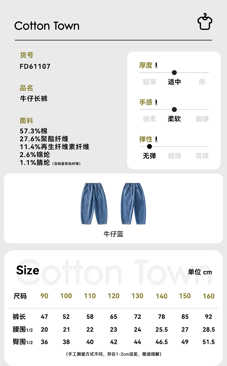 【经典牛仔裤】棉花堂 牛仔长裤 耐穿又百搭 A类 FD61107