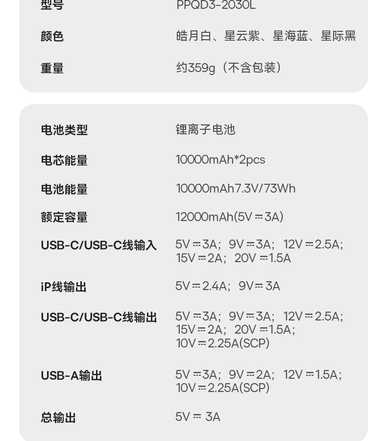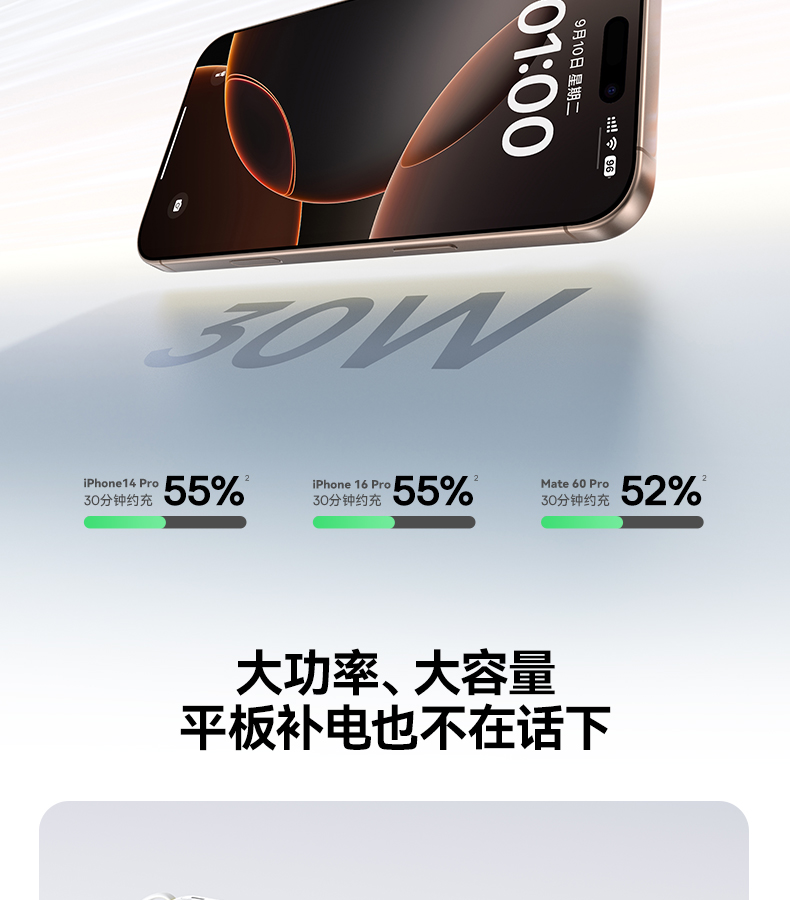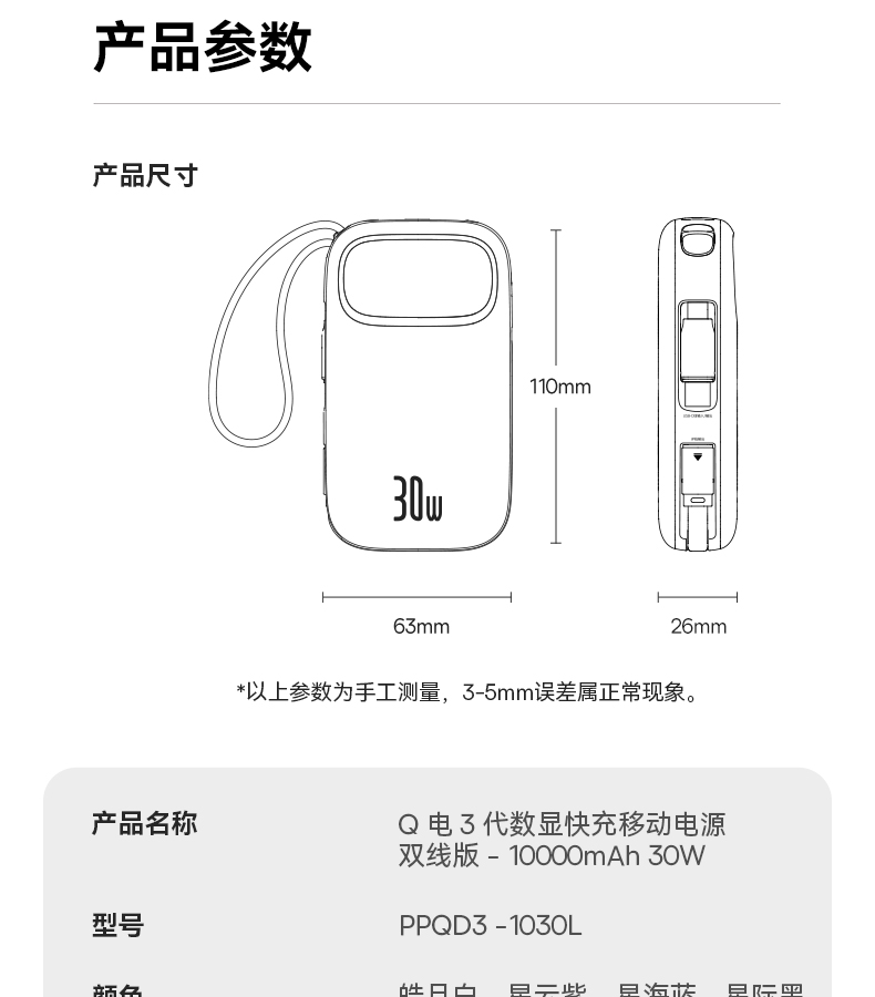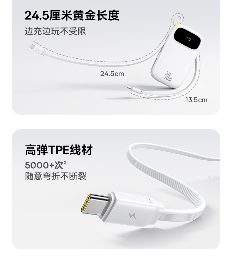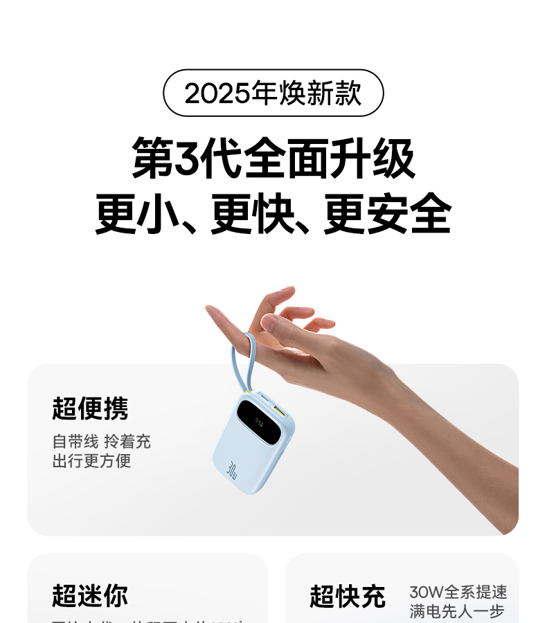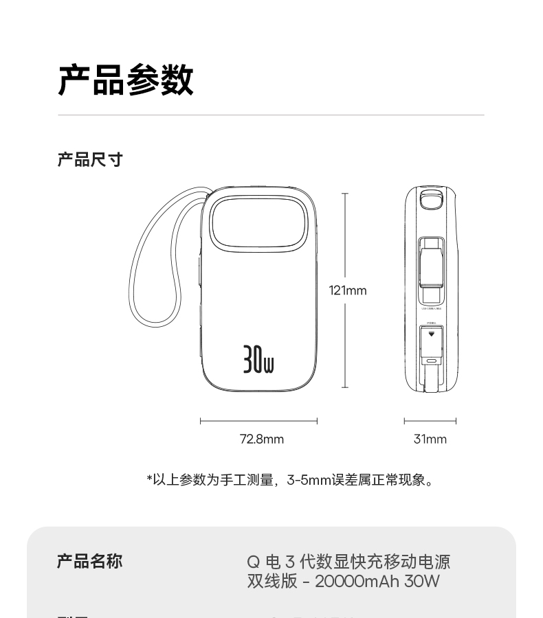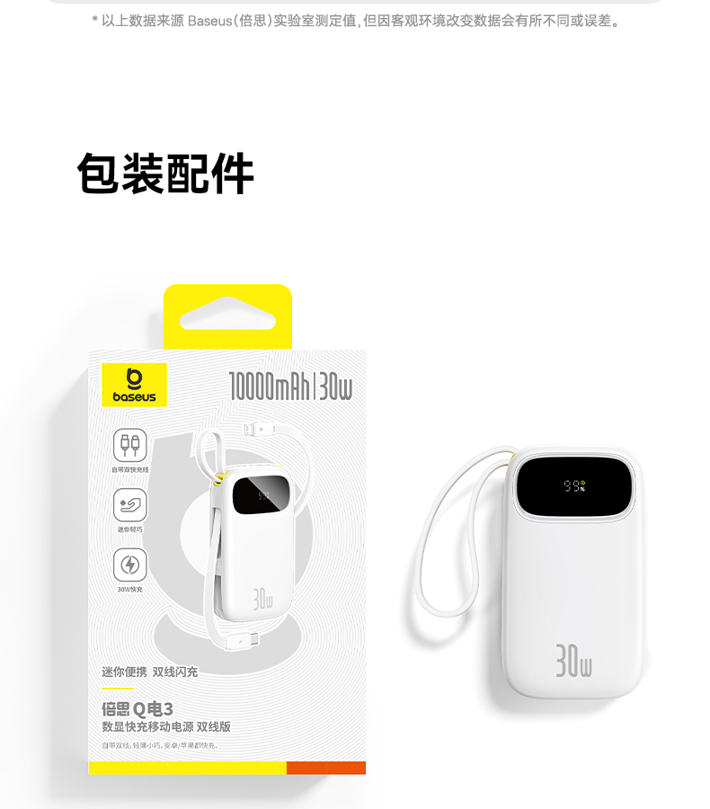 倍思 EnerFill FC31 Q电3 数显快充移动电源 双线版 30W 苹果17