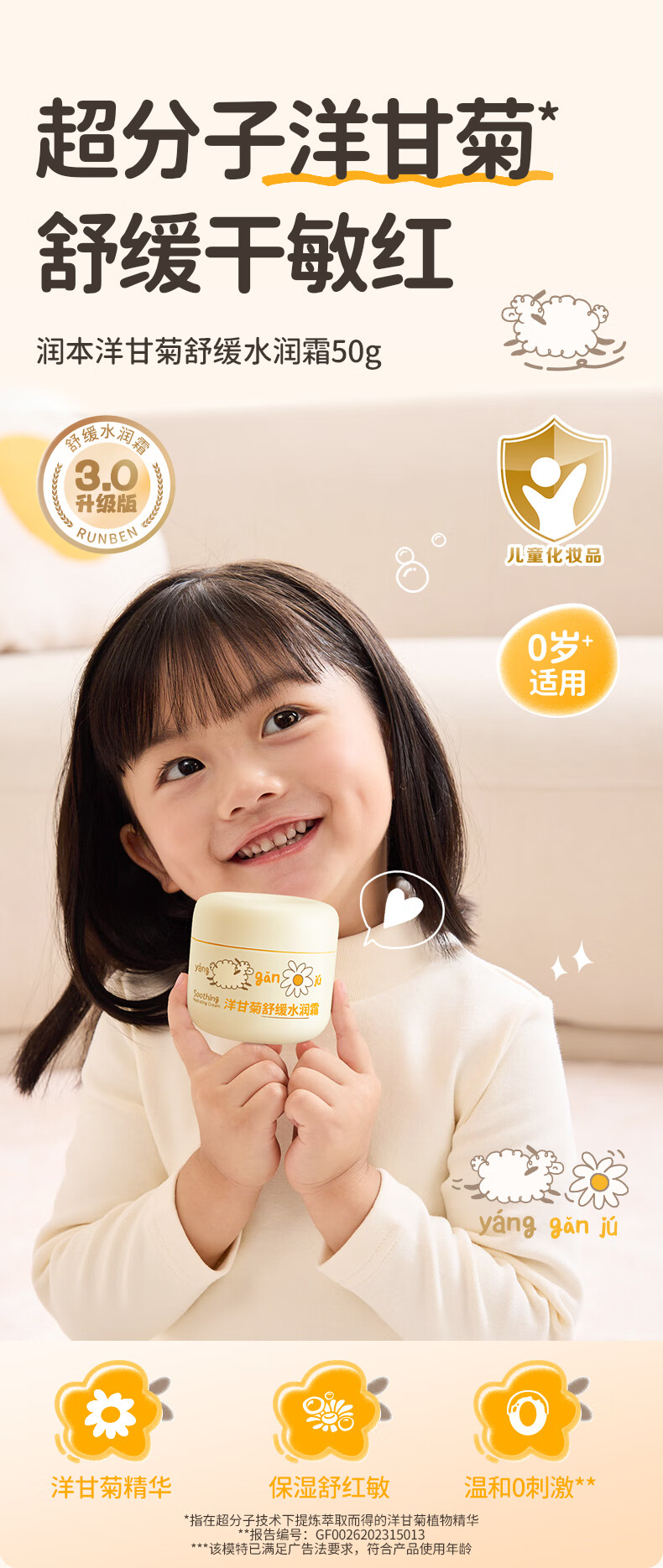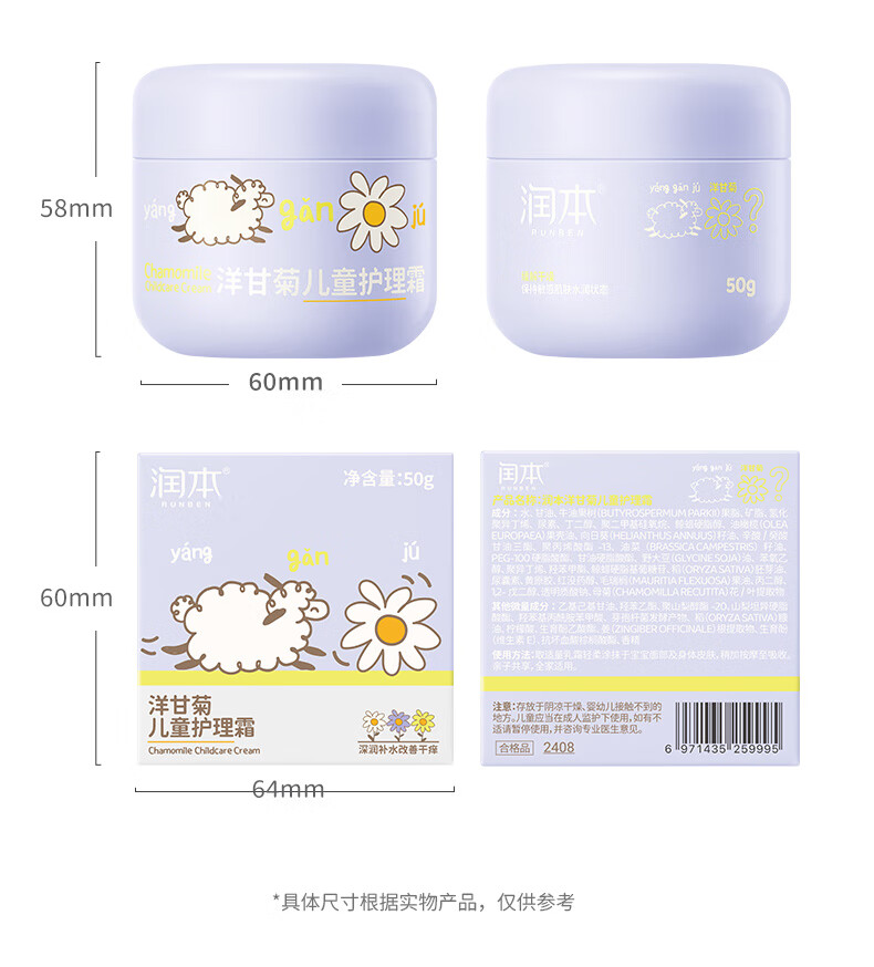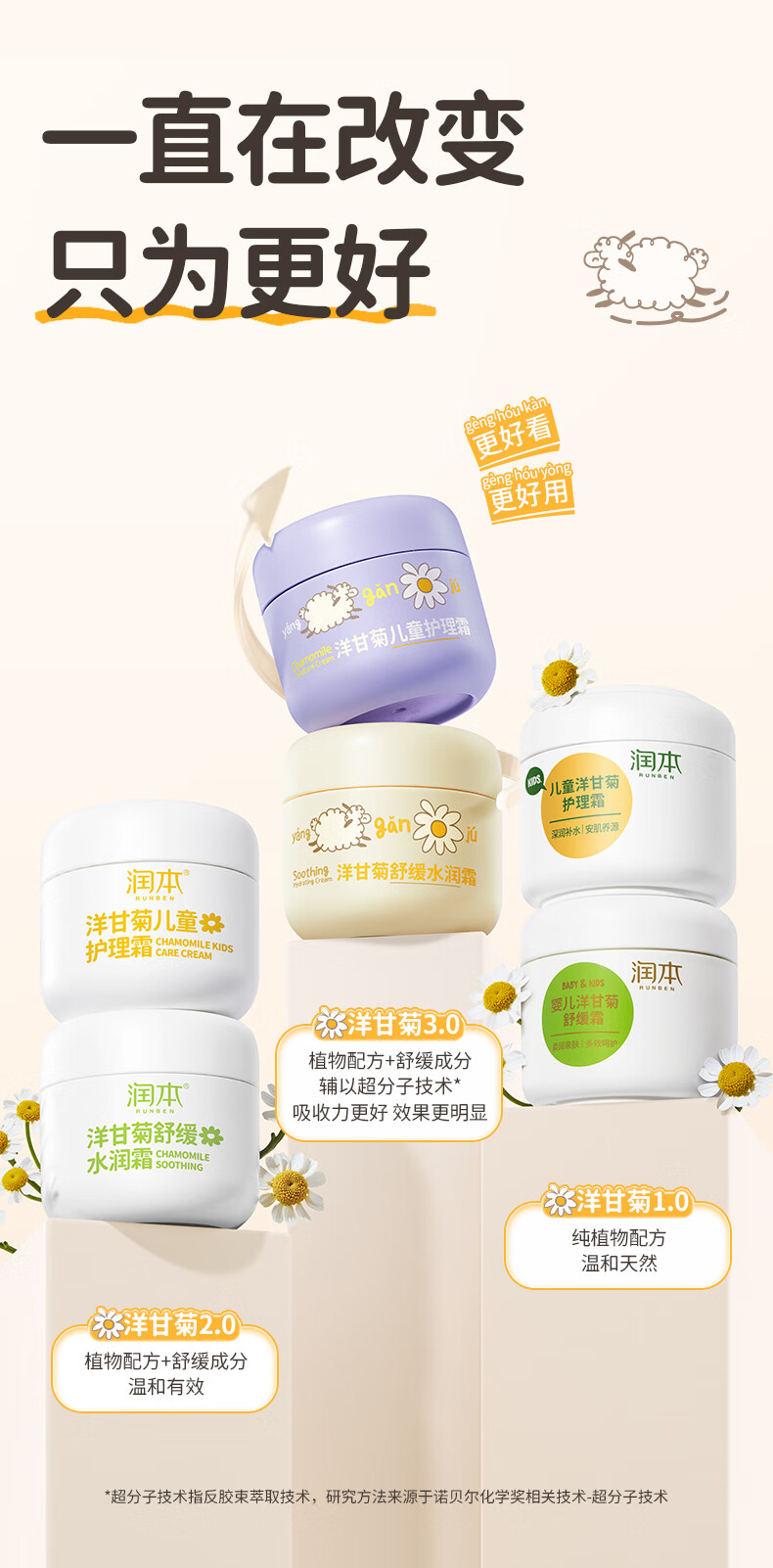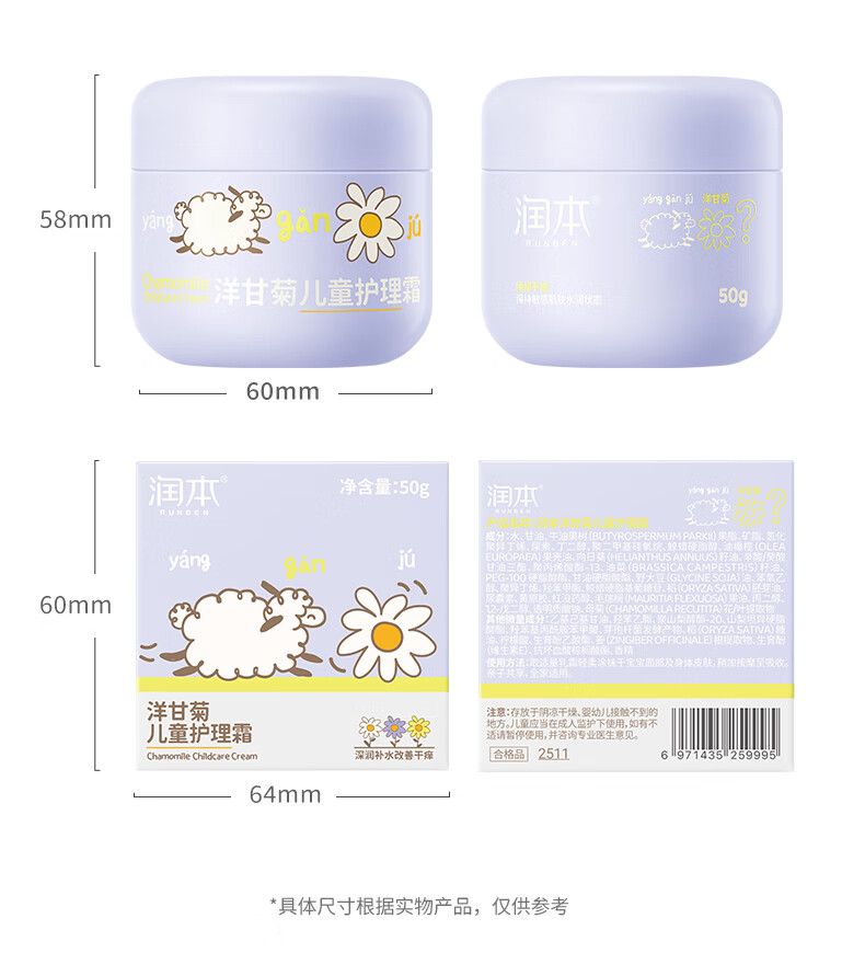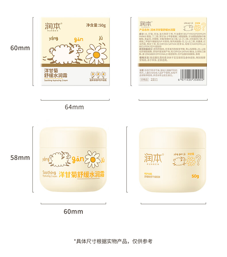 润本洋甘菊舒缓水润霜50g+护理霜50g+护手霜40g