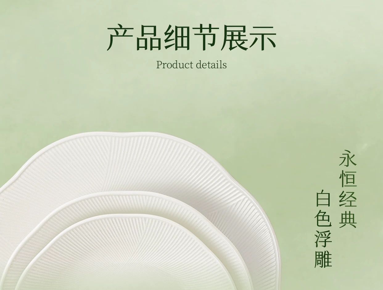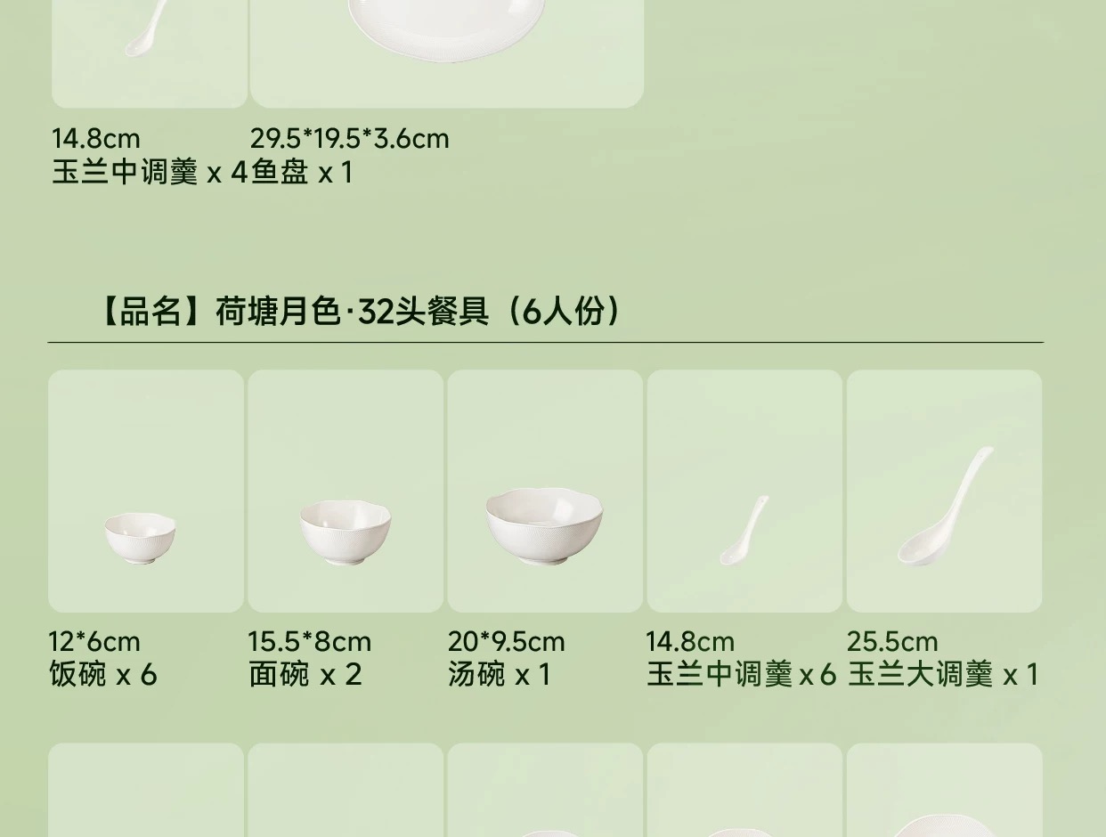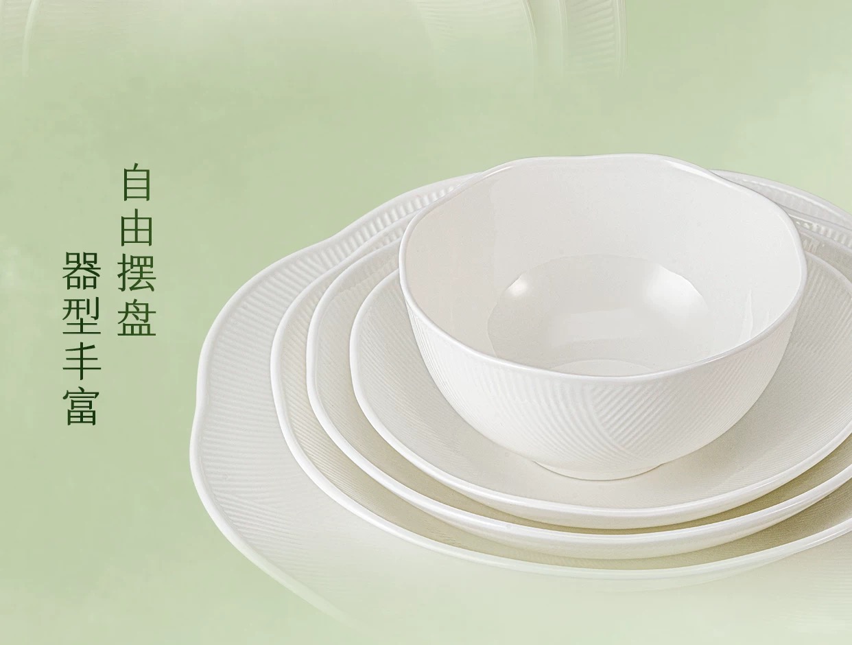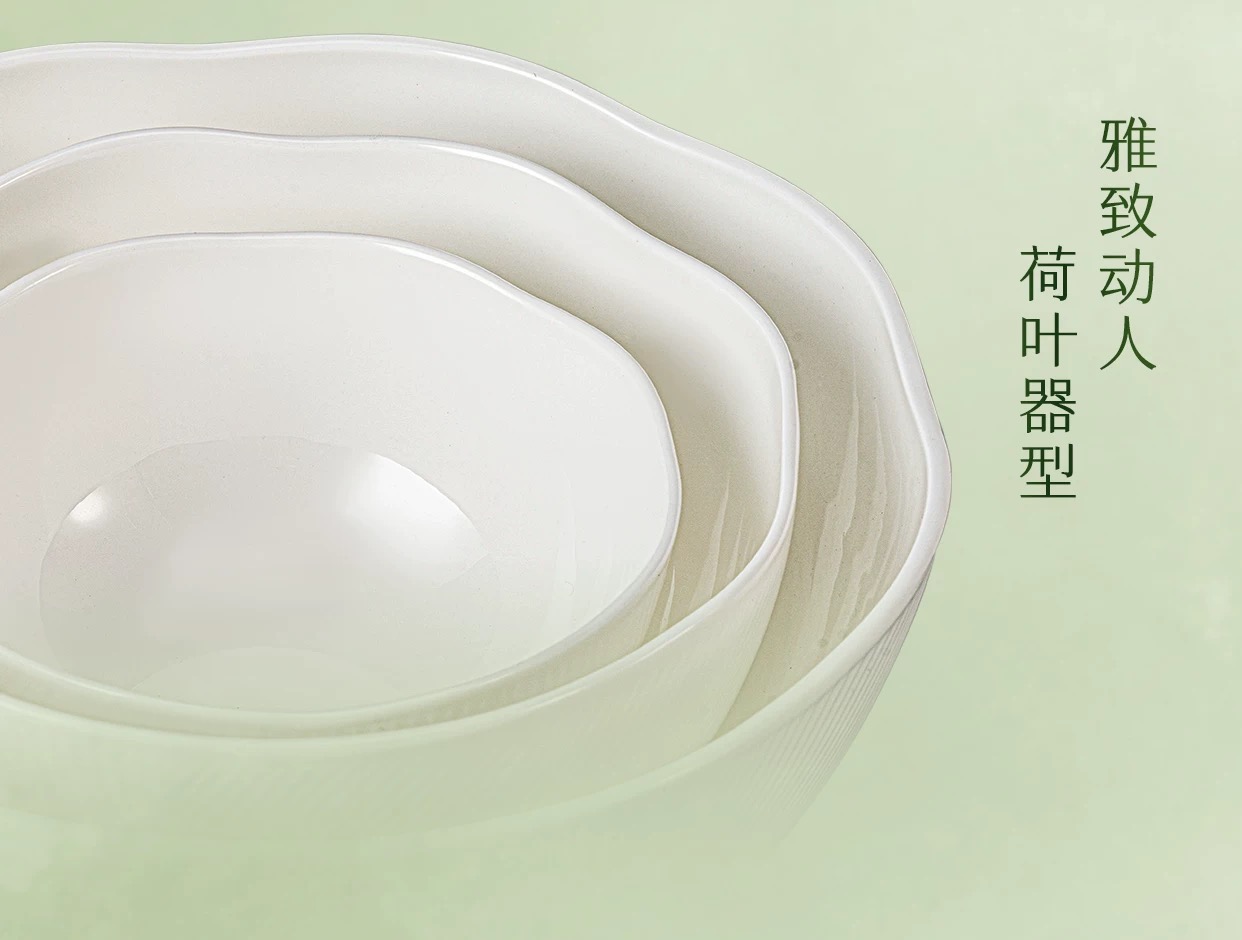 【6F】玛戈隆特荷塘月色骨瓷餐具浮雕餐具中国风面碗白瓷餐具骨瓷碗盘子32头