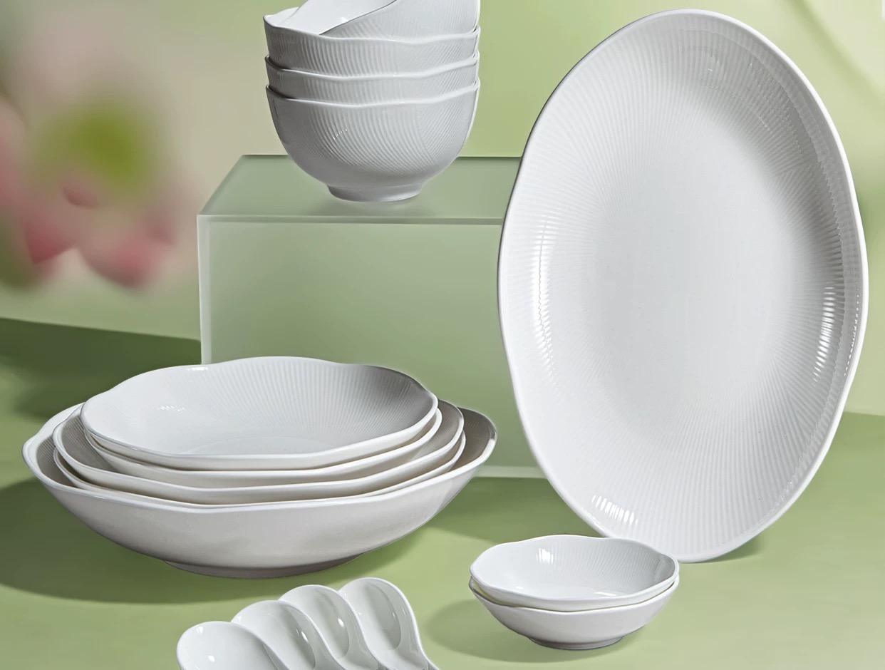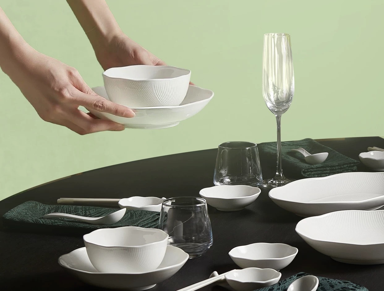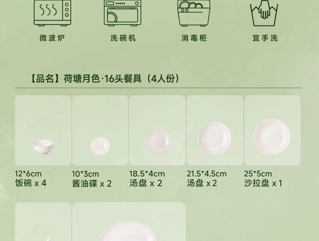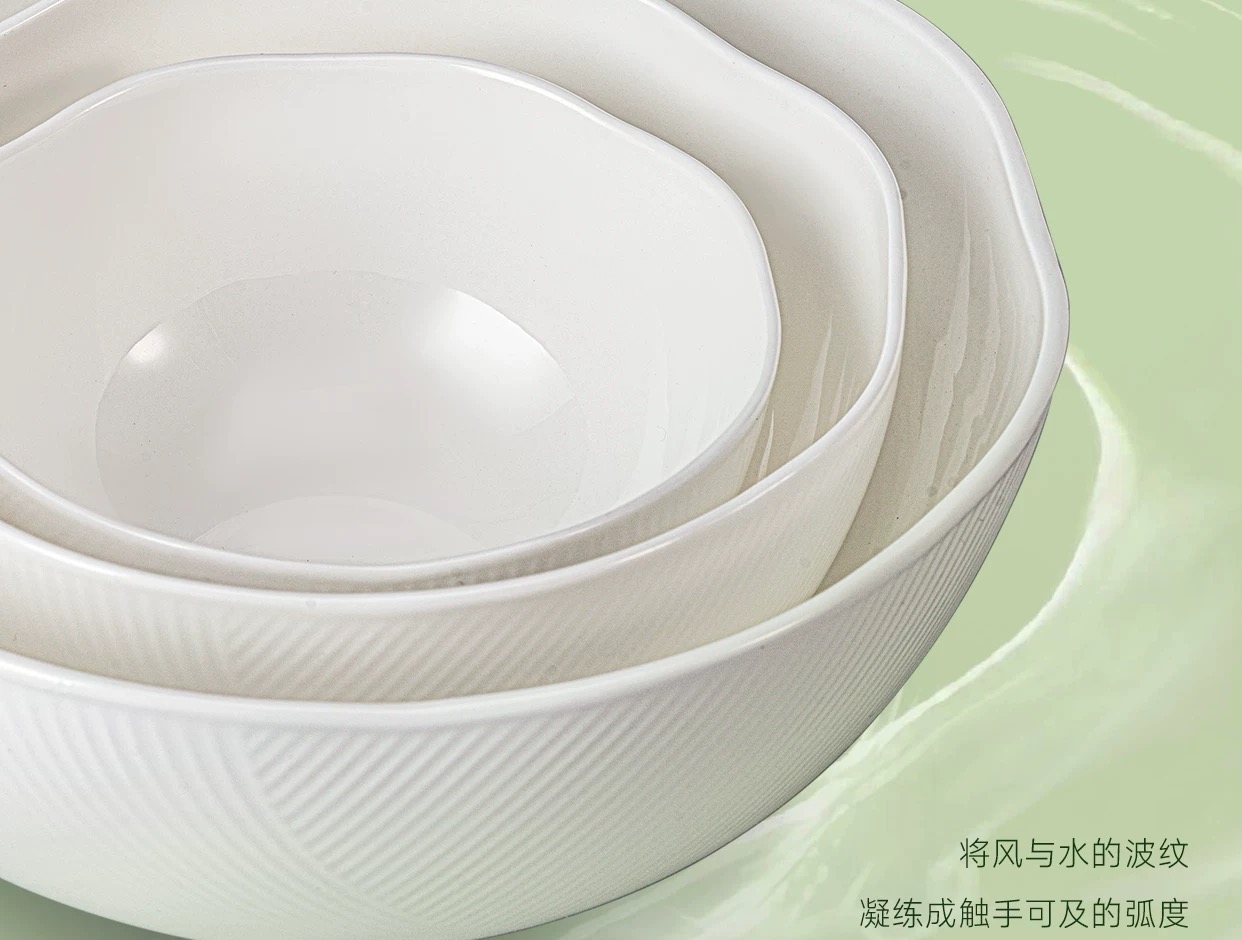 【6F】玛戈隆特荷塘月色骨瓷餐具浮雕餐具中国风面碗白瓷餐具骨瓷碗盘子32头