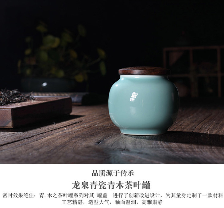 尚唐丨龙泉青瓷茶叶罐 陶瓷密封罐 鸡翅木木盖