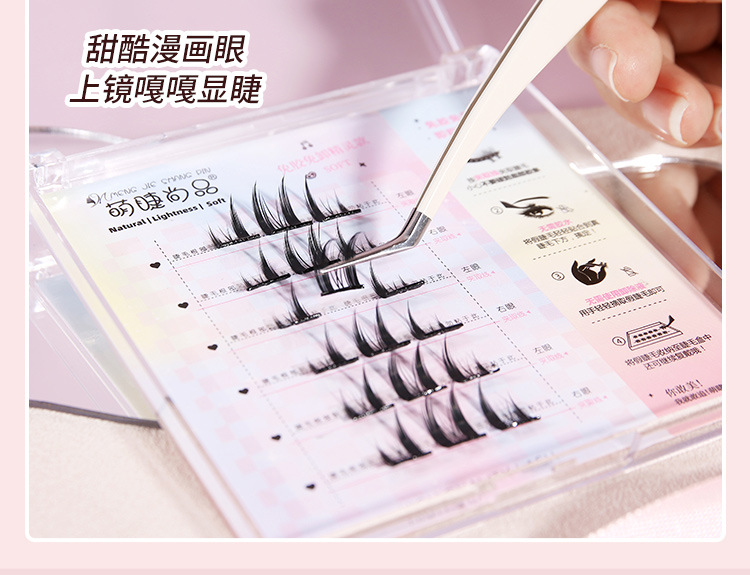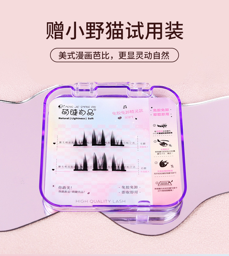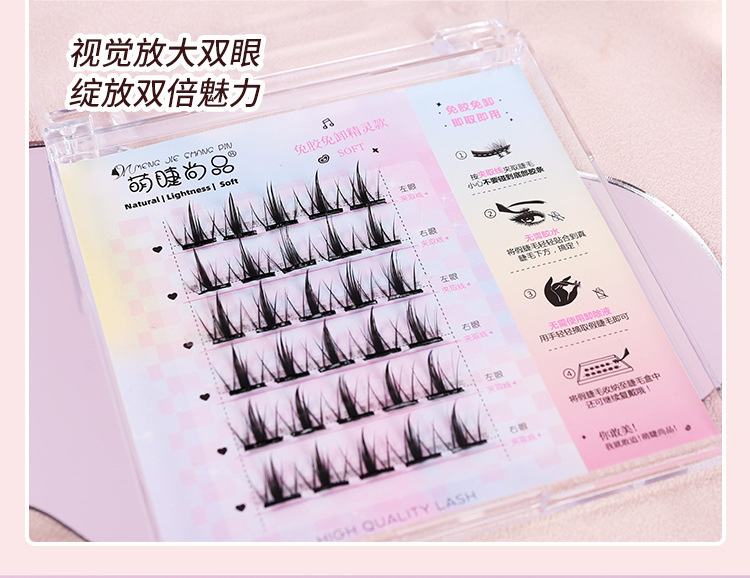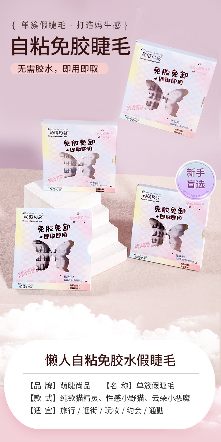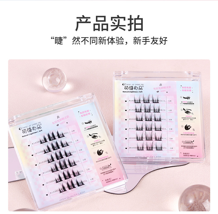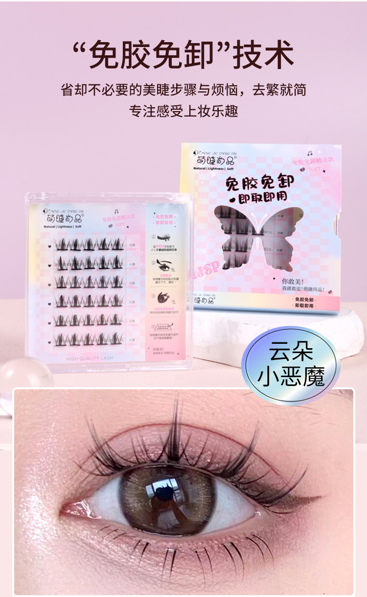 萌睫尚品免胶自粘假睫毛六排自粘云朵小恶魔单盒 猫精灵自然单簇分段漫画芭比新手免卸睫毛