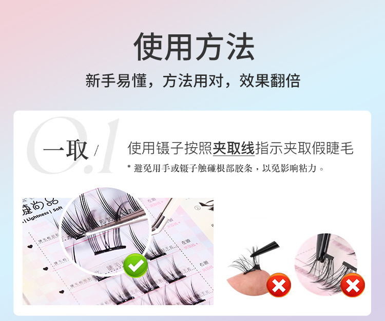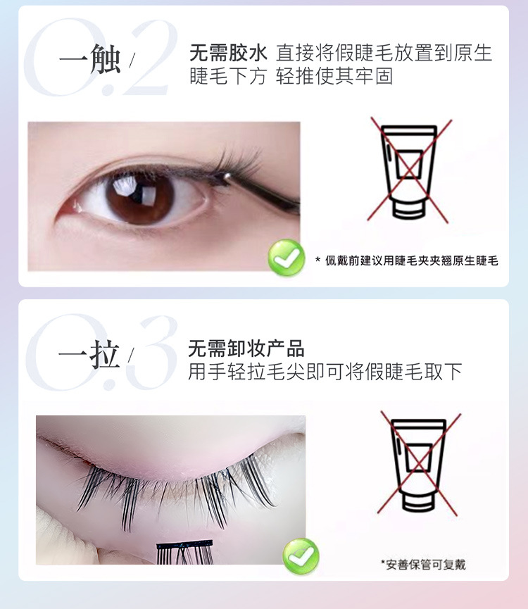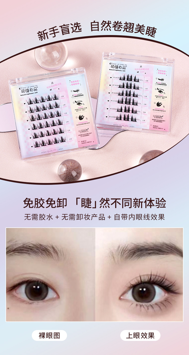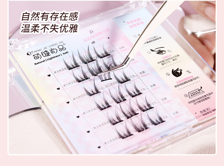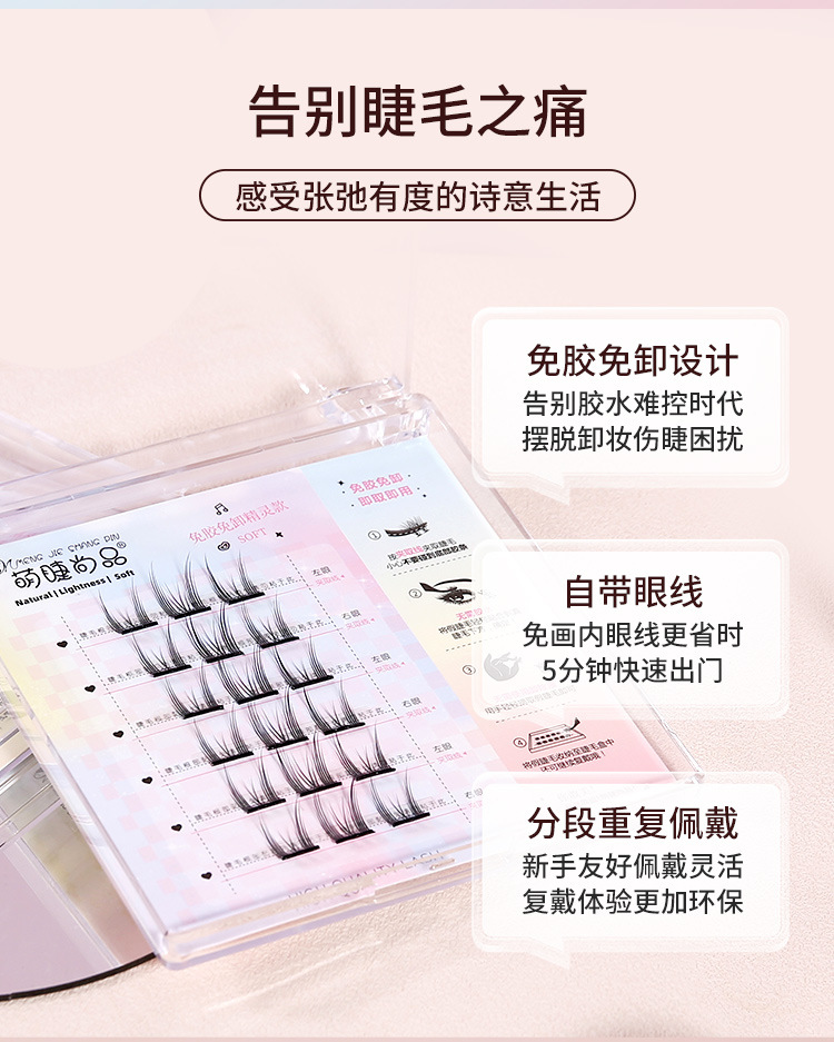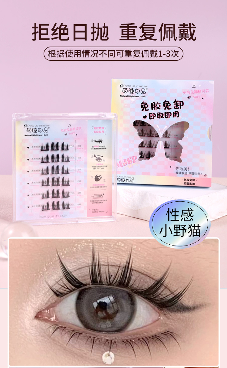 萌睫尚品免胶自粘假睫毛六排自粘云朵小恶魔单盒 猫精灵自然单簇分段漫画芭比新手免卸睫毛