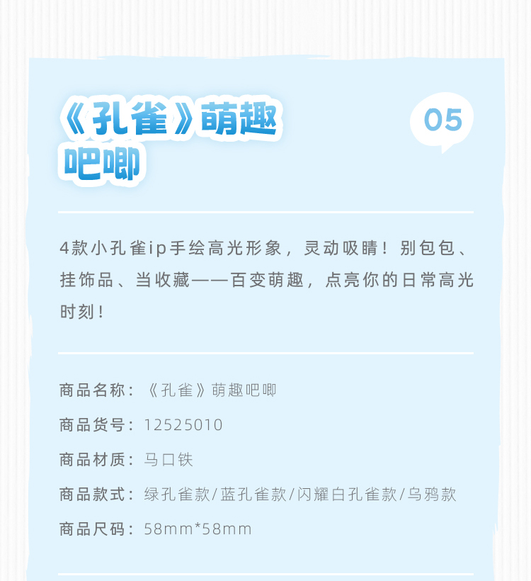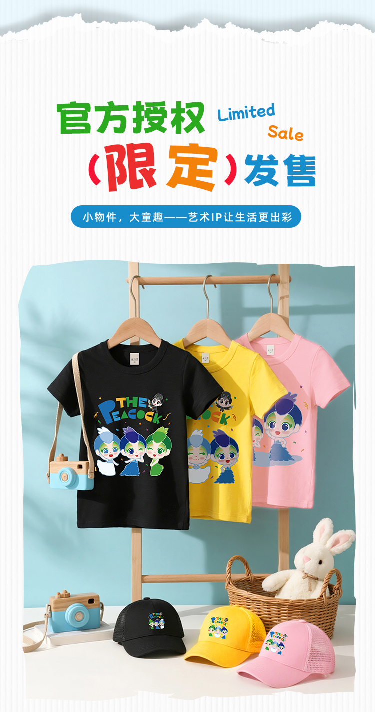 《孔雀》舞剧少儿版文创系列产品 | 萌趣T恤 鸭舌帽 毛绒公仔挂件 吧唧 贴纸