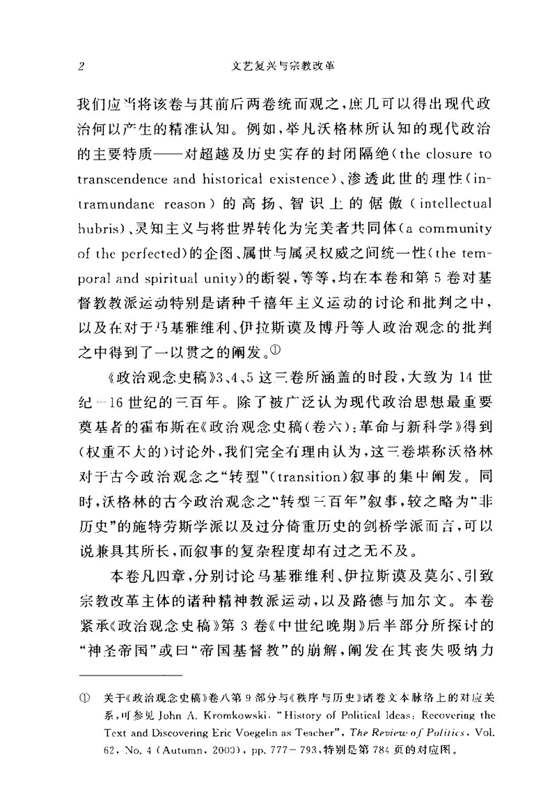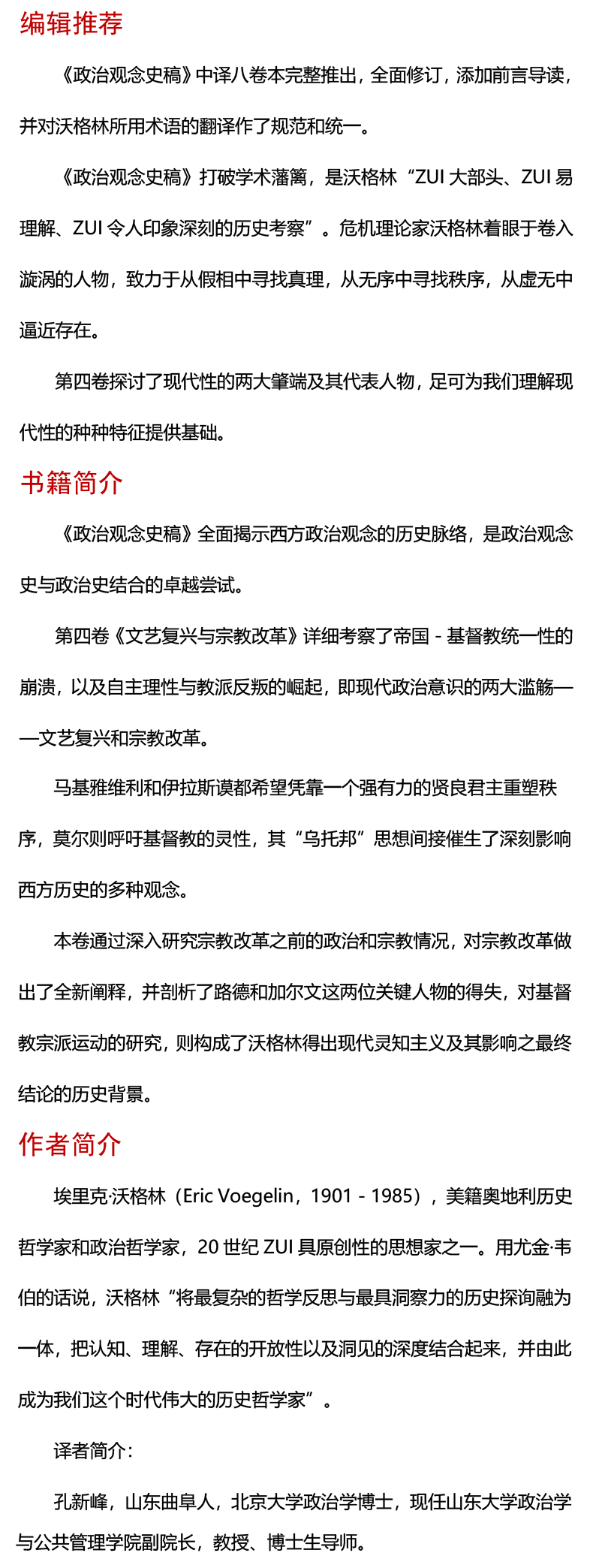 政治观念史稿卷四 文艺复兴与宗教改革 精装修订版 全新中译本 沃格林毕生之作真正核心 政治观念史哲学 正版 华东师范大学出版社