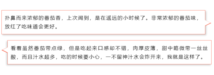 这款远道而来、个头不大,而且还带点青色的西红柿,试吃后,很多同事都收获了久别重逢的美好体验。