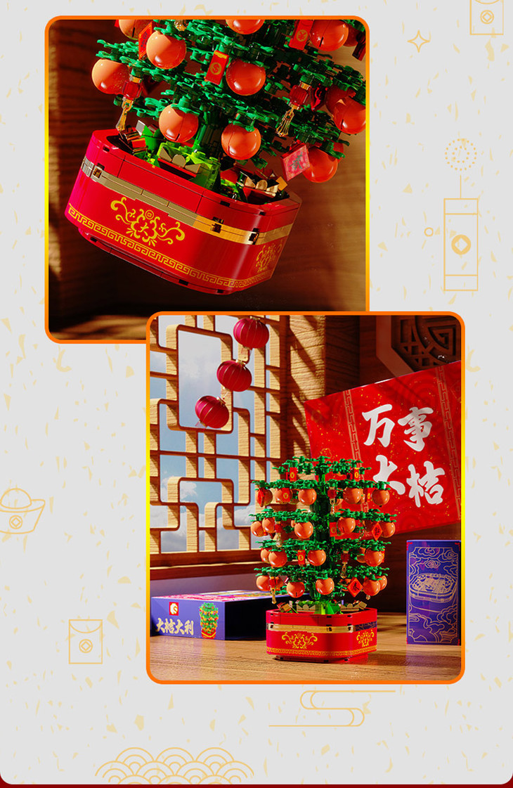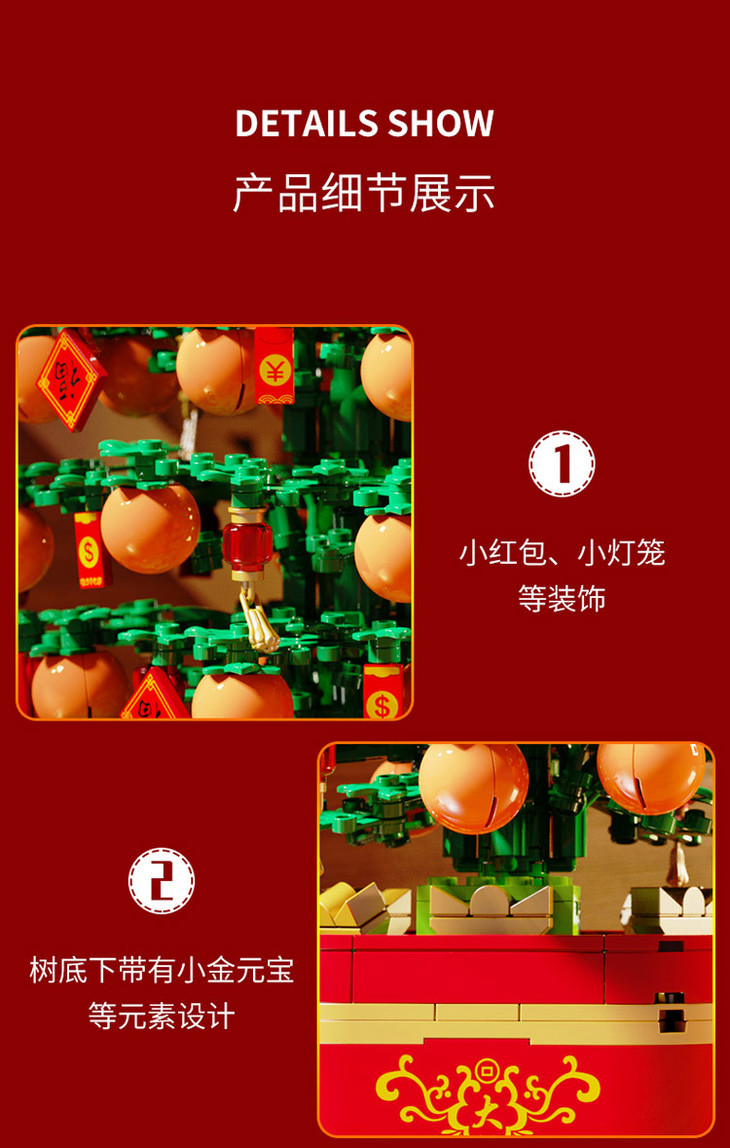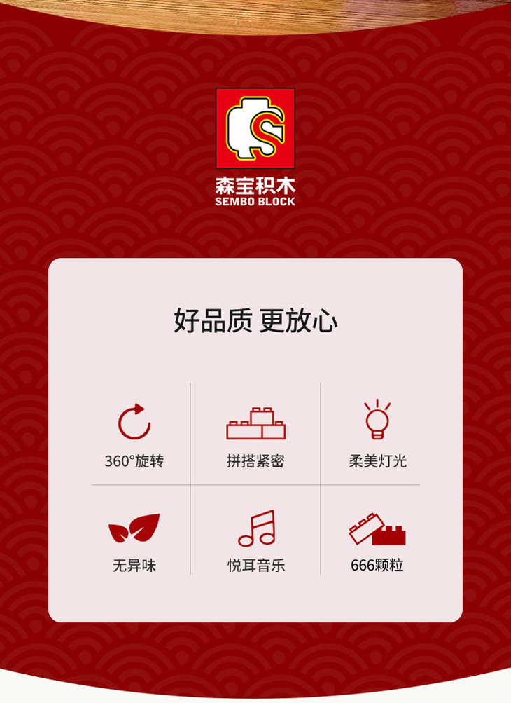 【新春礼品】森宝新春DIY灯光音乐盒万事大桔、舞龙、舞狮音乐盒益智拼搭积木兼容乐高玩具 ,带发光灯源