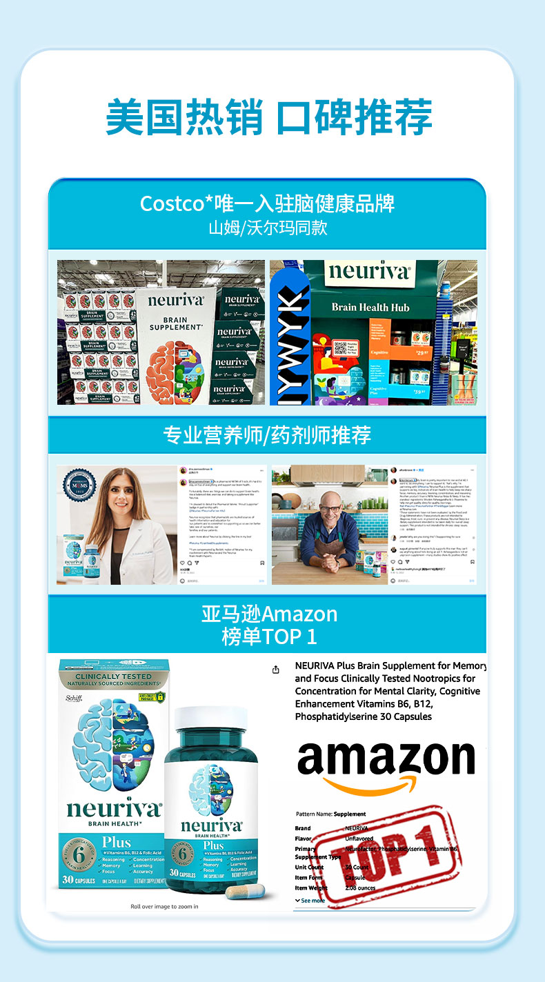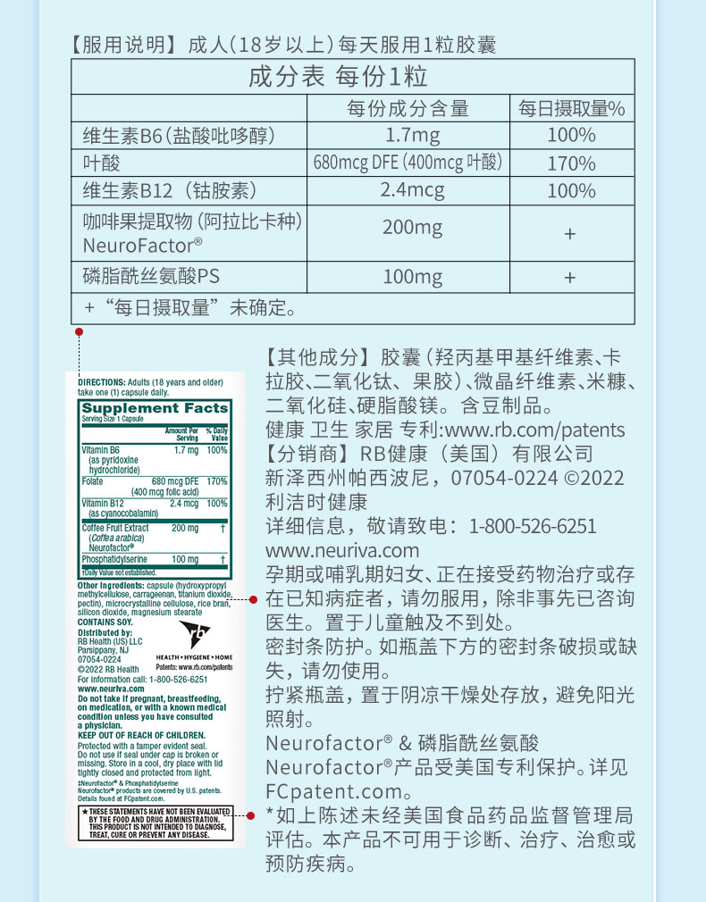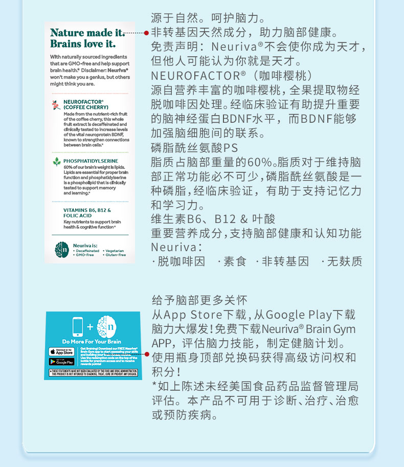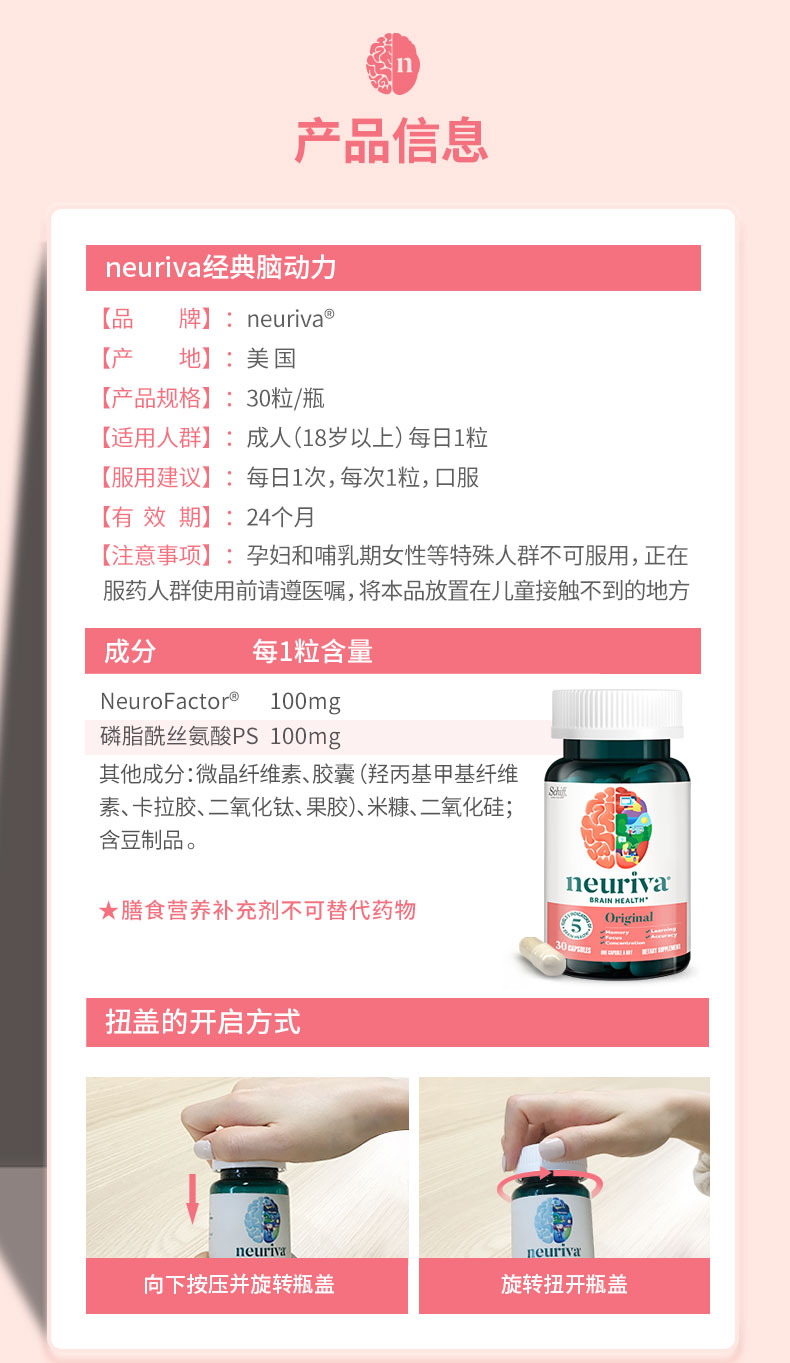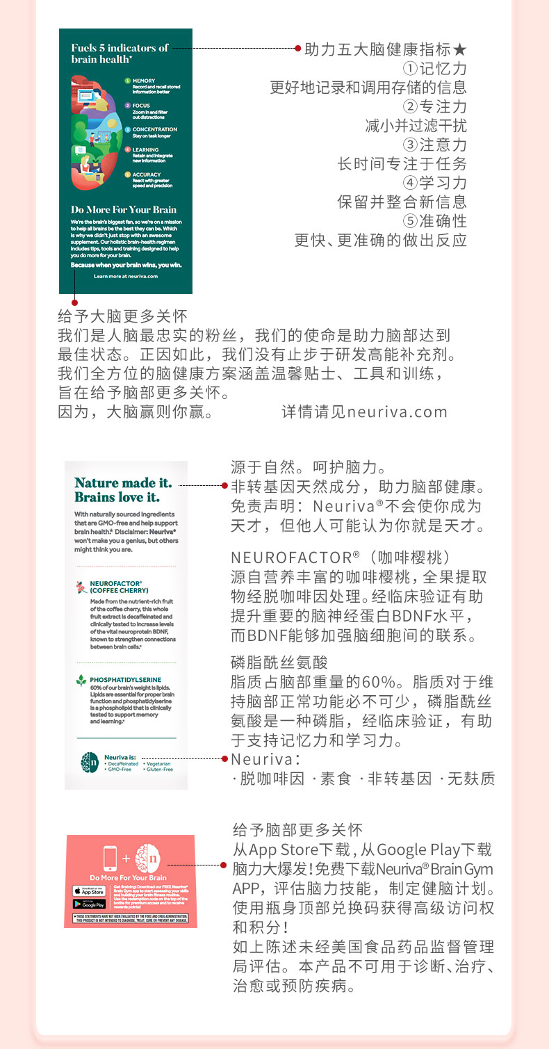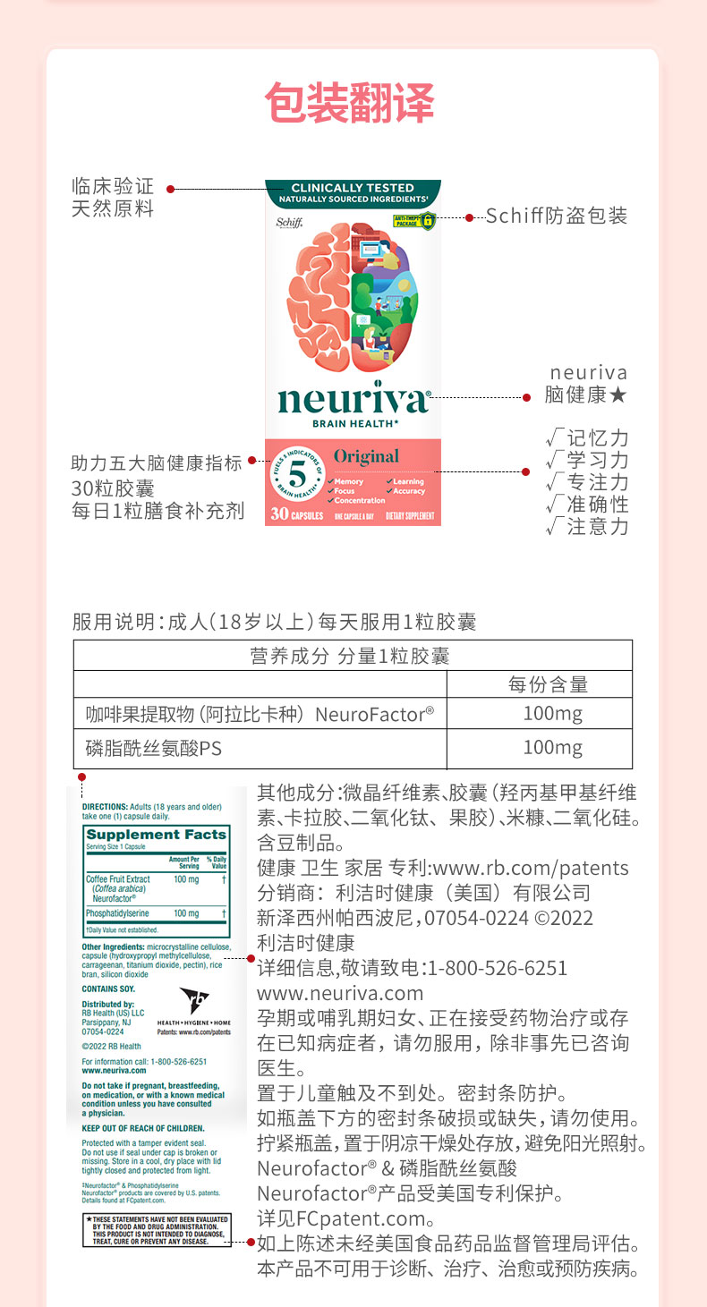 Neuriva脑动力纽睿华旭福补脑辅助成人记忆力专注力磷脂酰丝氨酸ps