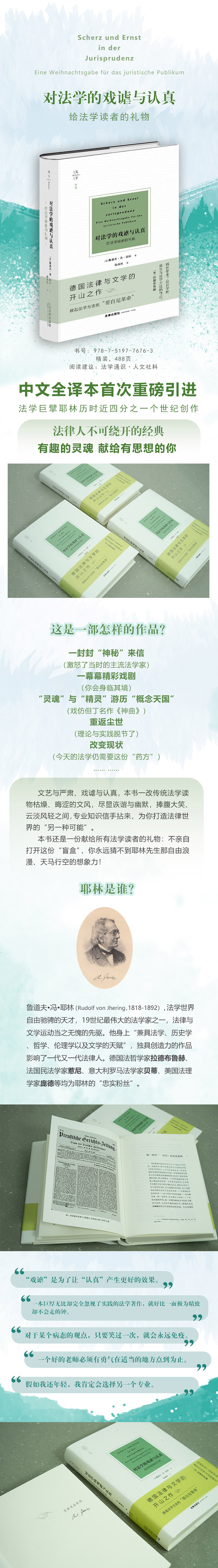本书是法学领域不可逾越的经典,是一部写了超过四分之一个世纪的作品。全书以讽刺的手法对19世纪的“概念法学”展开批判,并认真提出了改善法学教育的若干方法,由此奠定了20世纪“利益法学”的基础。该书一改法学著作枯燥乏味的文风,尽显诙谐与幽默,系德国法律与文学的开山之作,“铁血宰相”俾斯麦、社会学巨擘韦伯、法理学大家庞德等大咖均爱不释手。即使在今天,也很难再找到这样一部独一无二的作品。