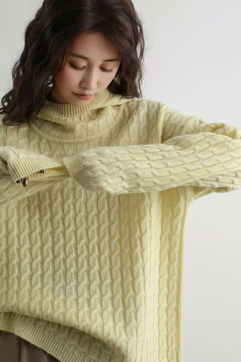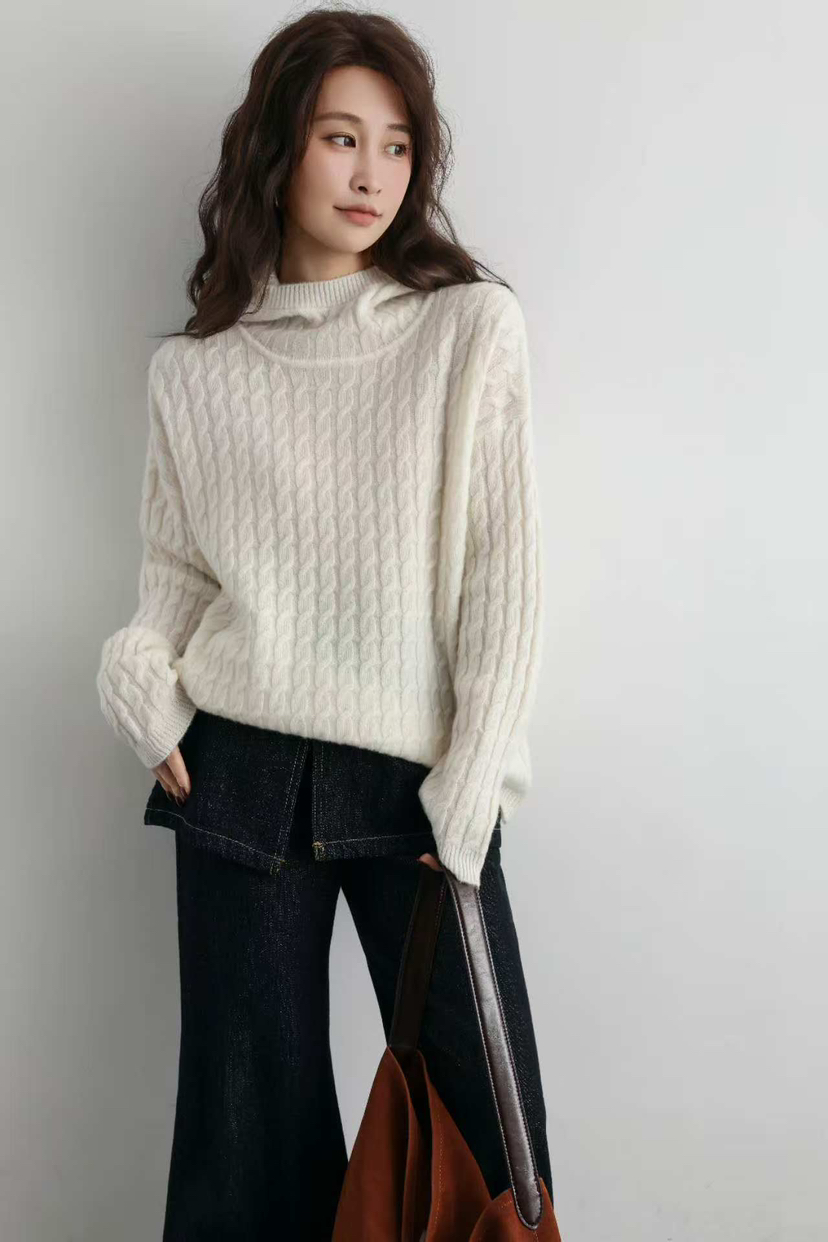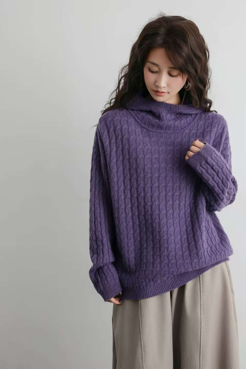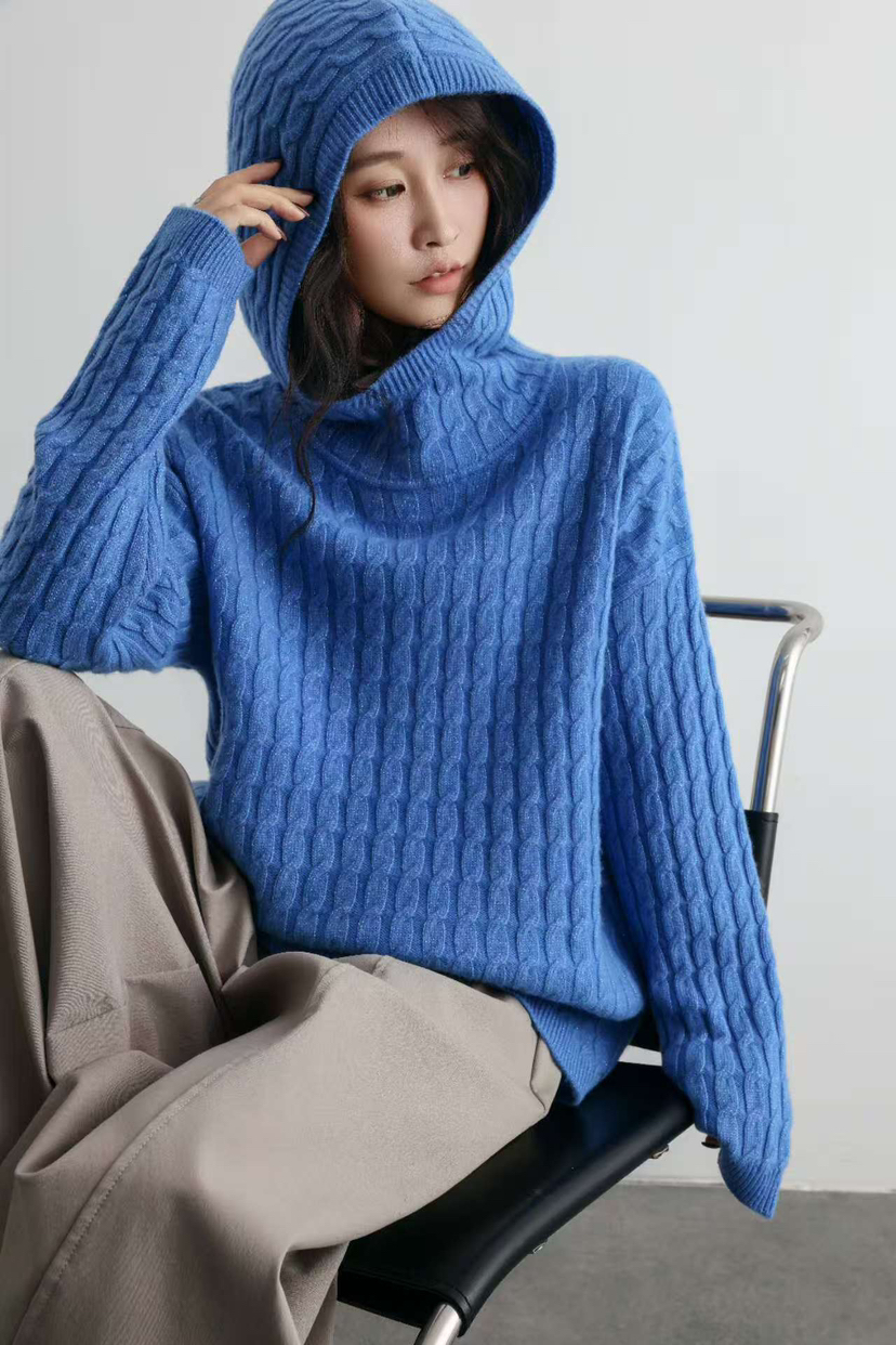 纯羊毛 进口金丝 绞花纯羊毛 连帽款羊毛衫