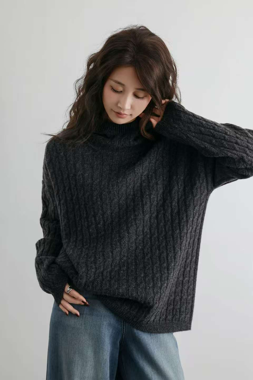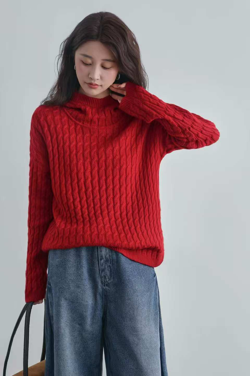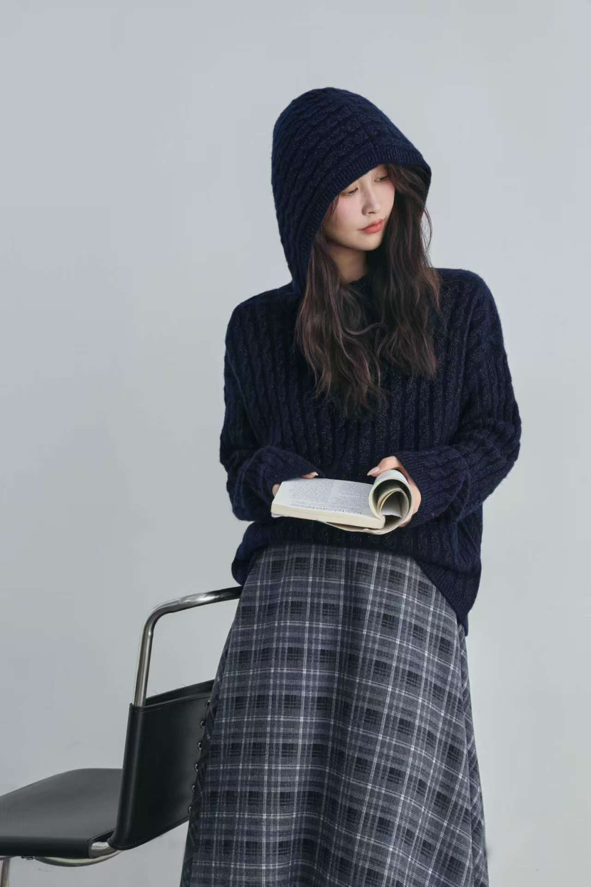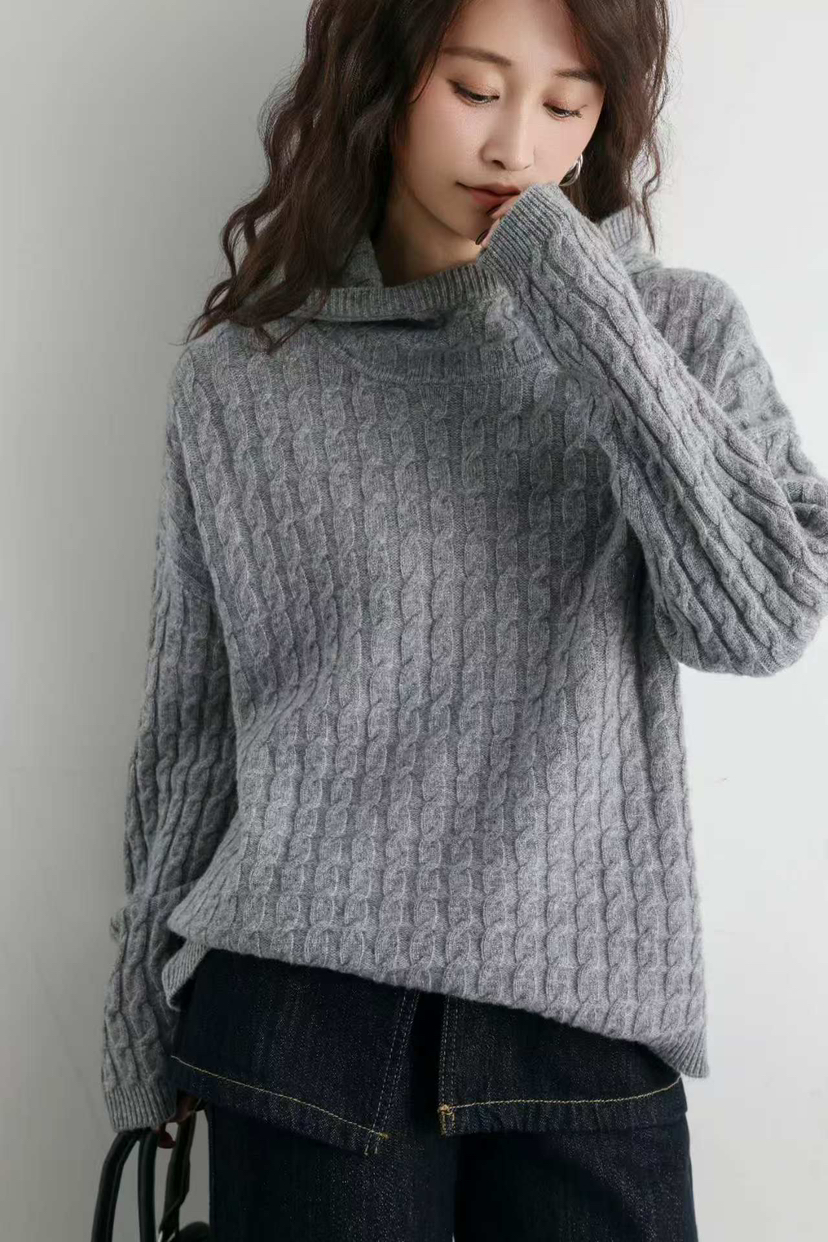 纯羊毛 进口金丝 绞花纯羊毛 连帽款羊毛衫
