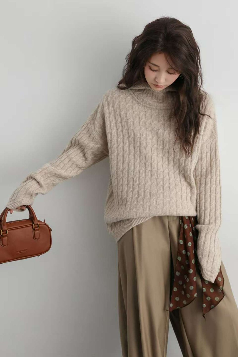 羊毛质地没有那种硬邦邦的市场货效果哈,秋冬,有质感的羊毛衫,羊绒衫是必备的,内搭外穿都显气质