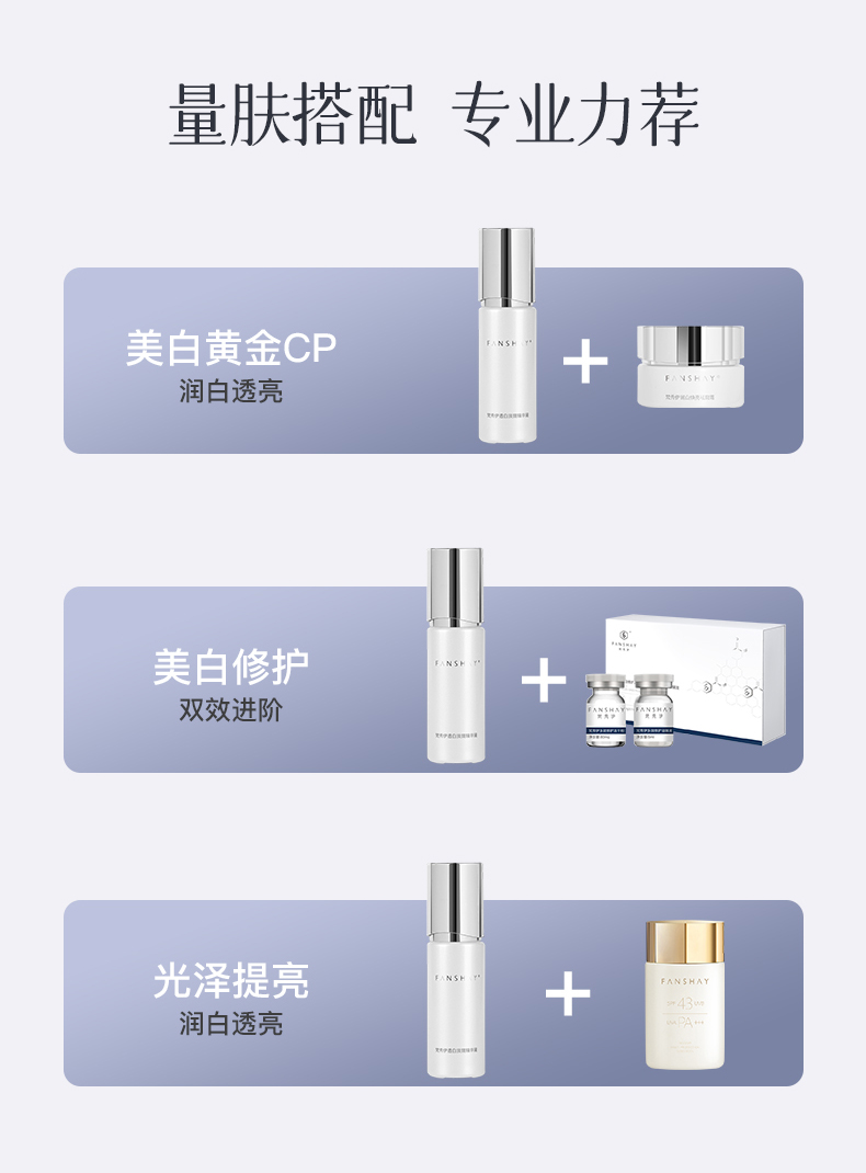 梵秀伊(FANSHAY),为女性肌肤问题提供专业性的综合解决方案,从根本上调理肌底层细胞,并坚持以天然植物萃取精华。产品以草本植物为重点,取中草药之精华,辅之现代高科技提纯技术,让肌肤由内而外深层改善
