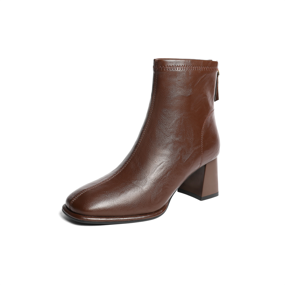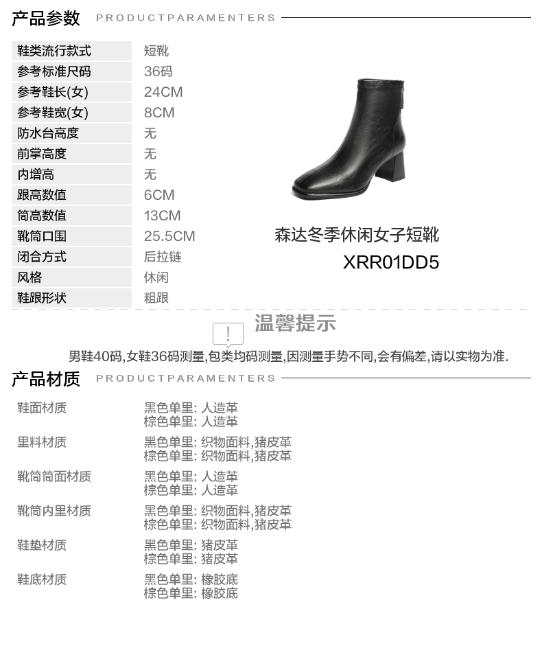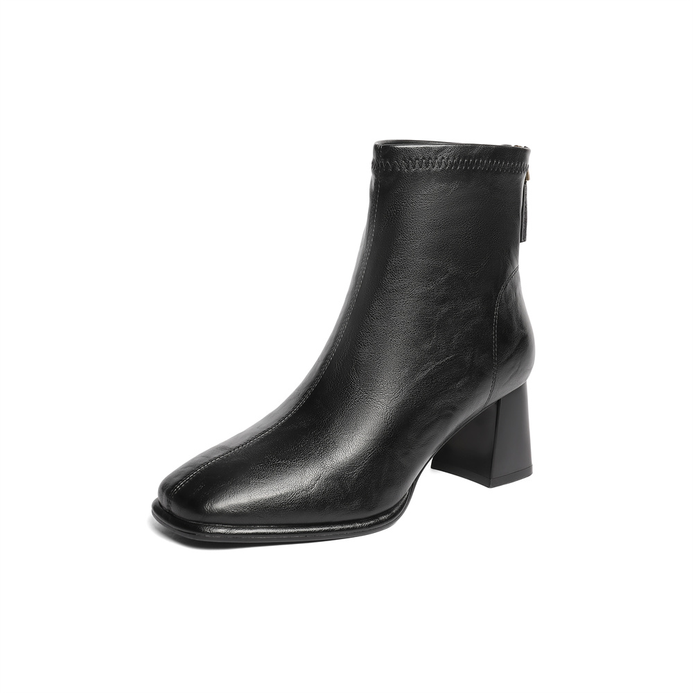 【云粉节】BF楼 森达弹力瘦瘦靴2025冬季新款气质粗跟法式切尔西靴XRR01吊牌价899活动价399