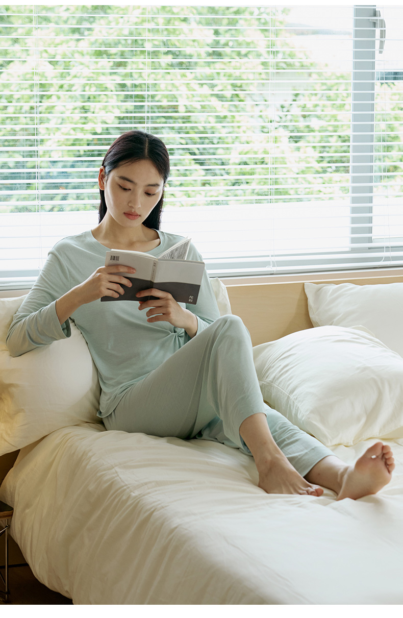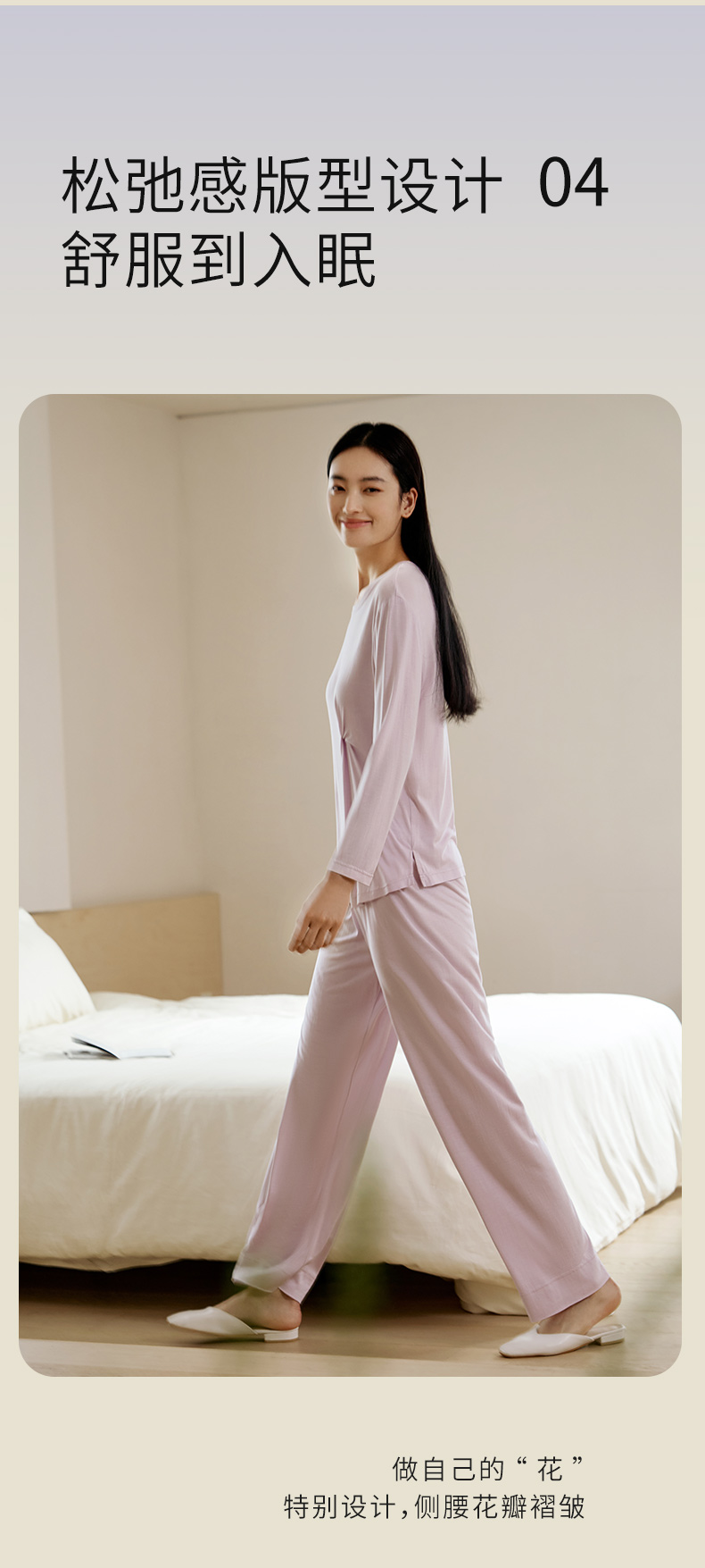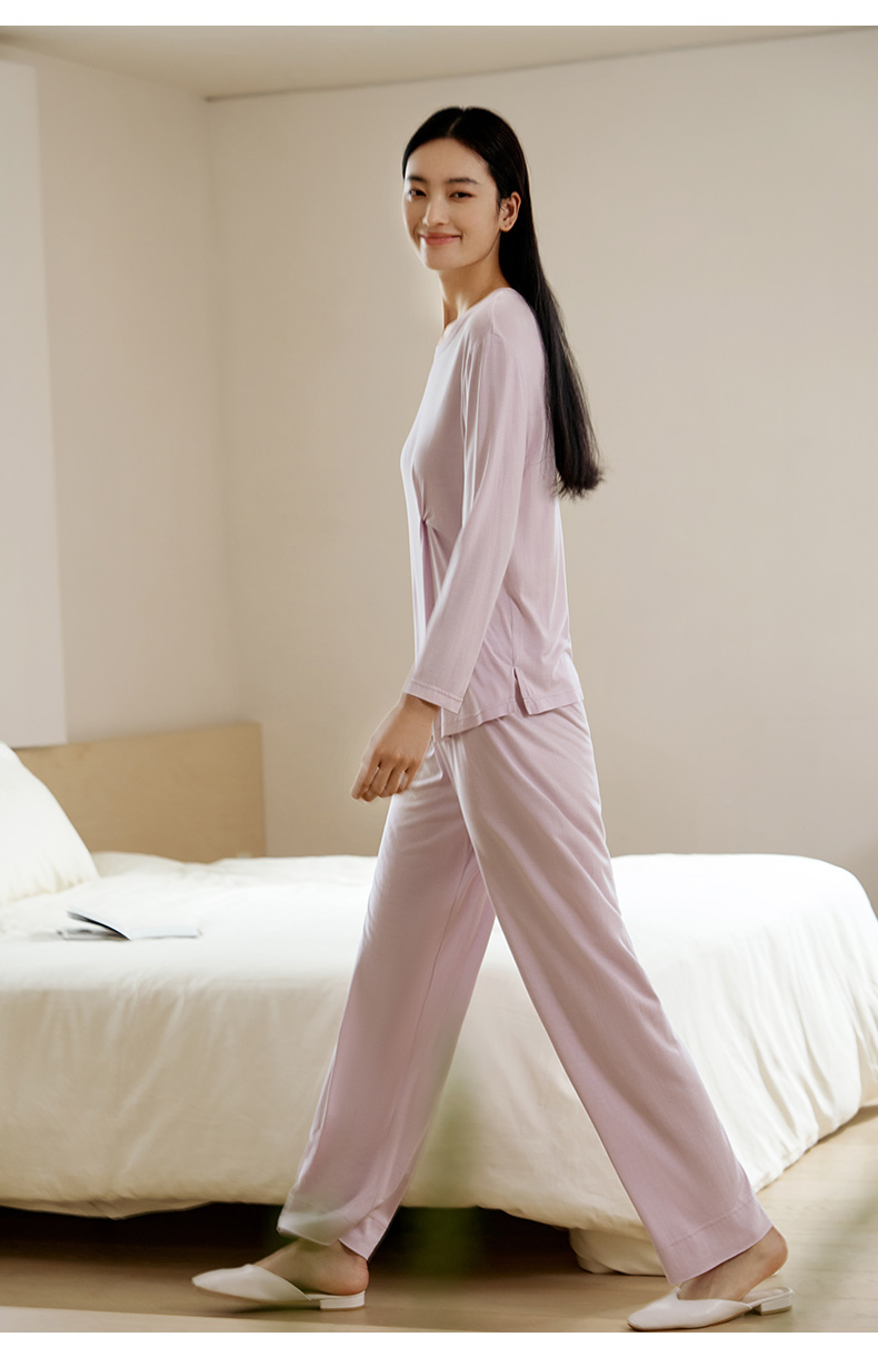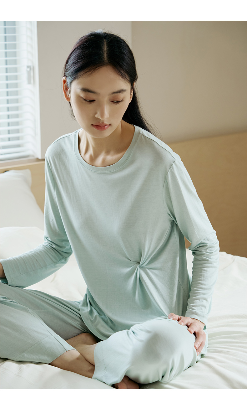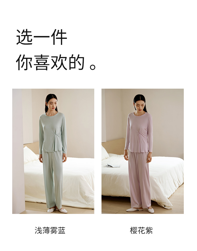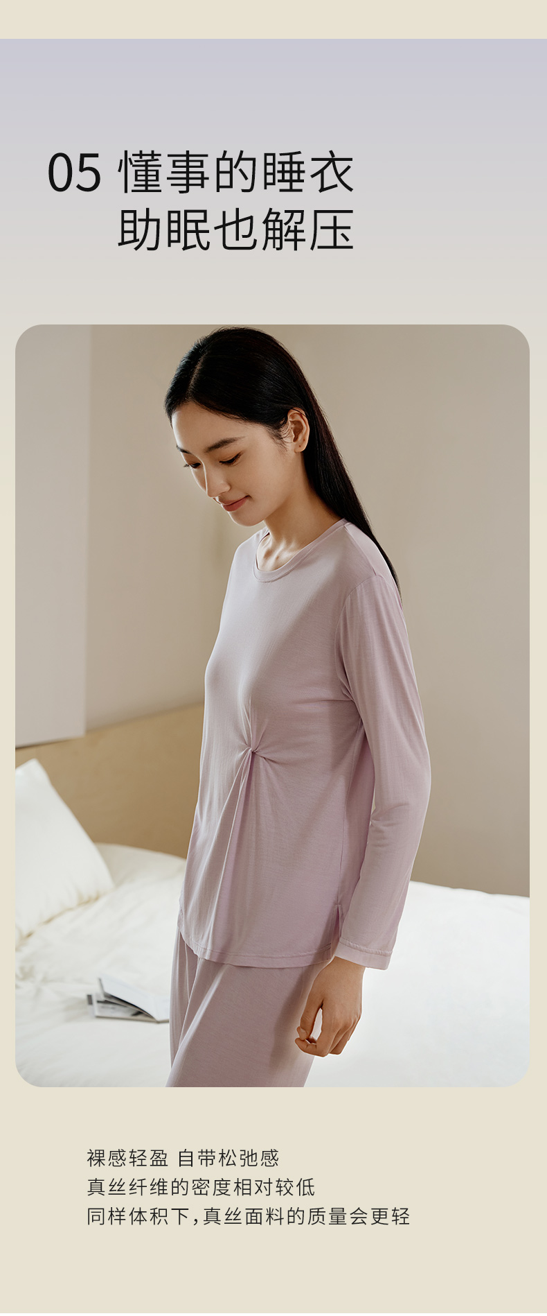 【深睡眠蚕丝睡衣】金三塔真丝睡衣针织扭结衣裤套100%桑蚕丝长袖家居服 YZFEC202