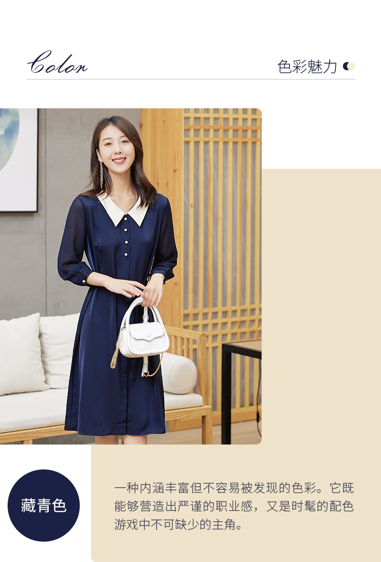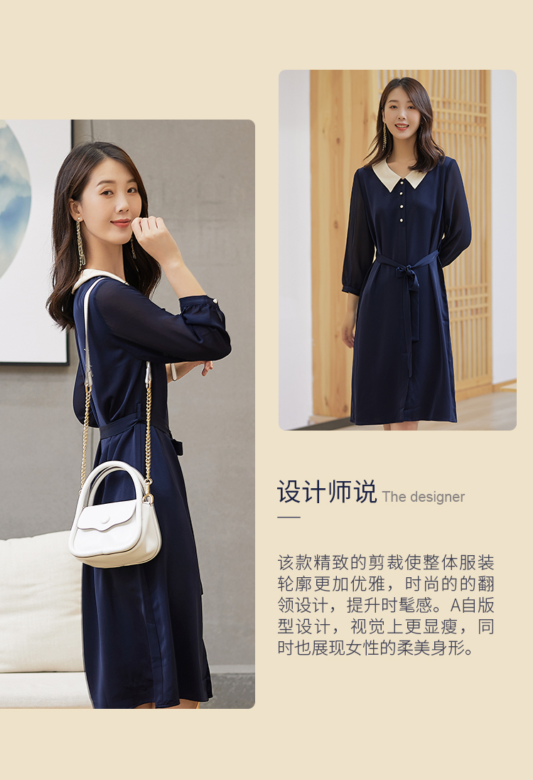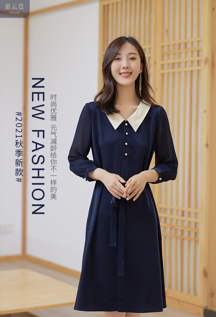 【减龄显白,气质优雅】慕云姿2021秋季新款气质华尔缎长袖连衣裙