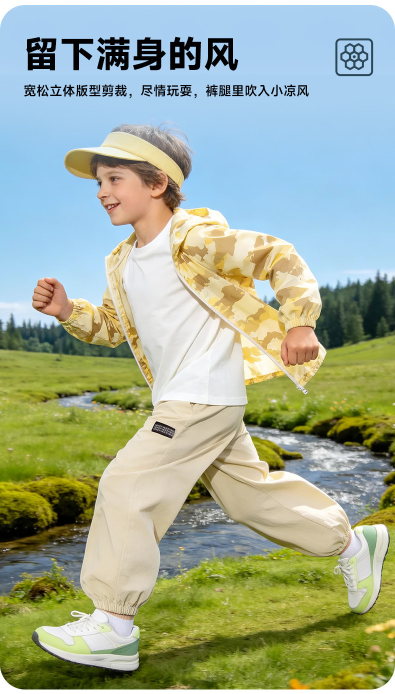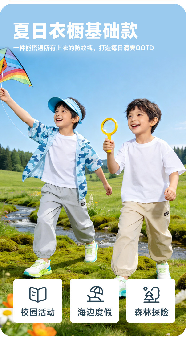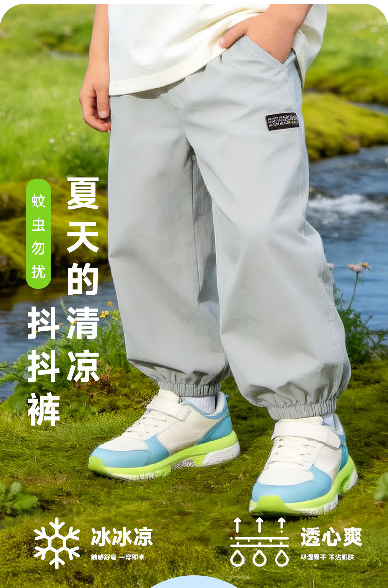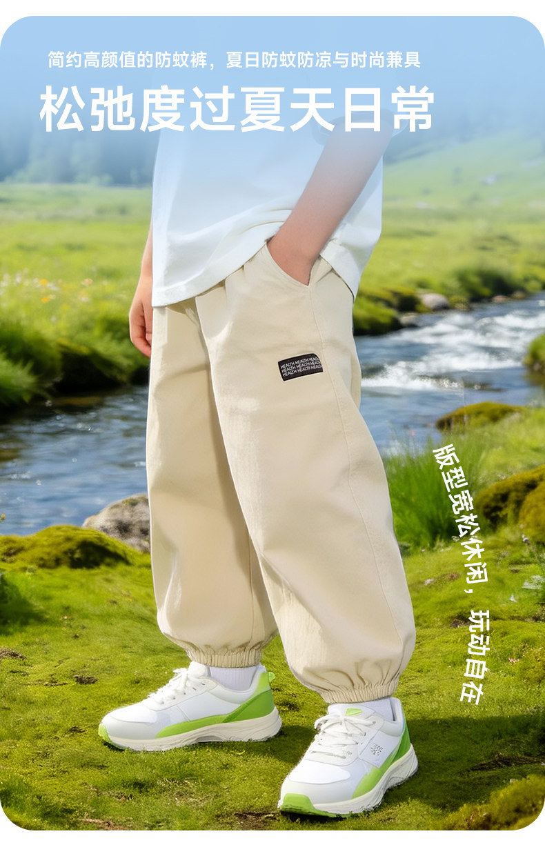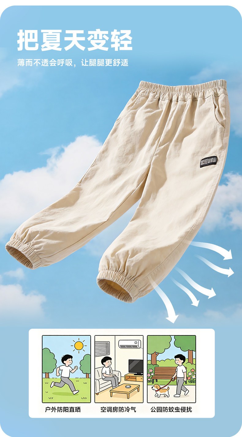 贝贝怡童装男童休闲长裤轻薄防蚊裤子2026夏新款透气中大童束脚裤ZB2FK010