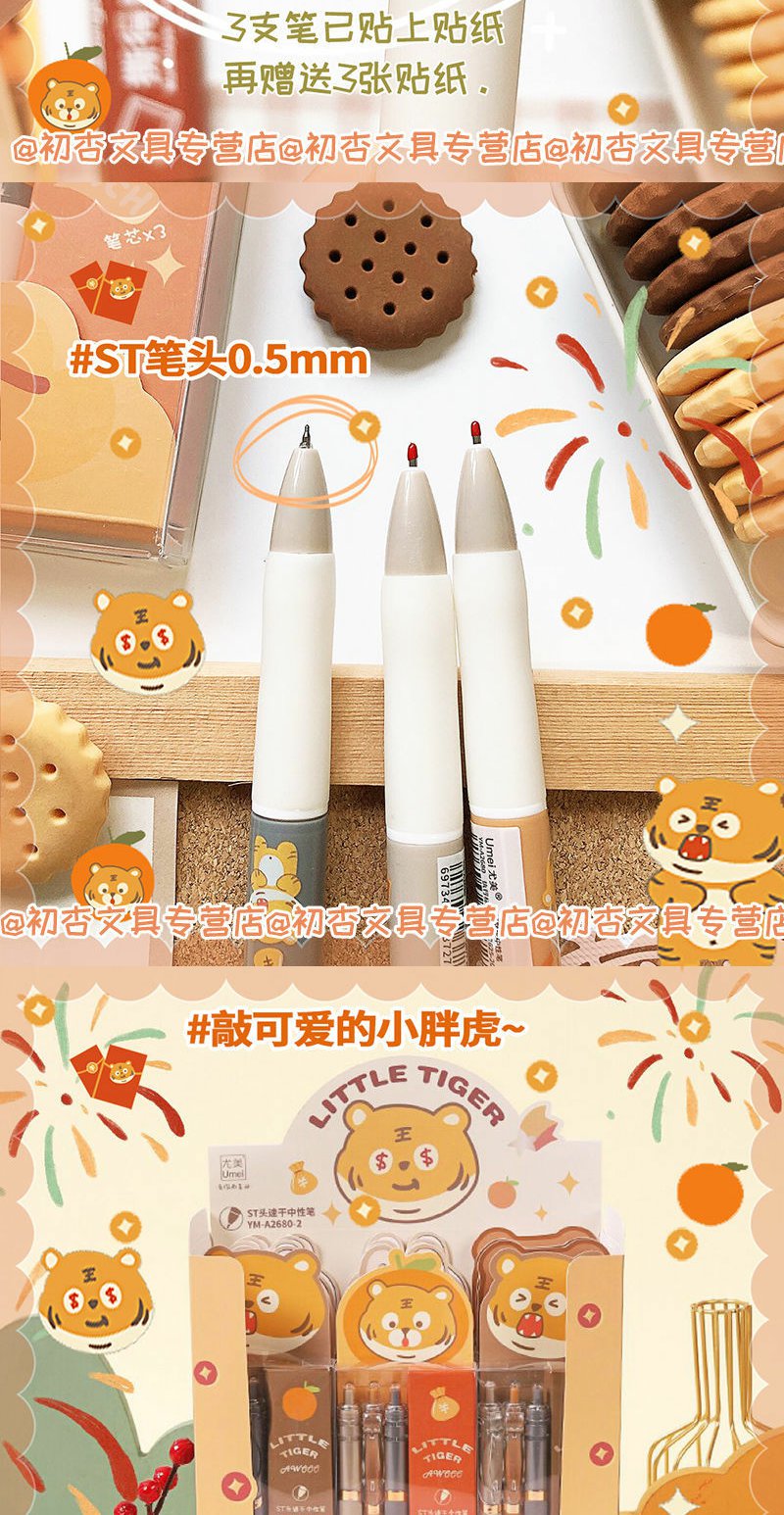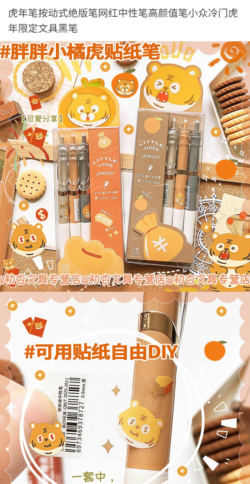 虎年笔按动式绝版笔网红中性笔高颜值笔小众冷门虎年限定文具黑笔