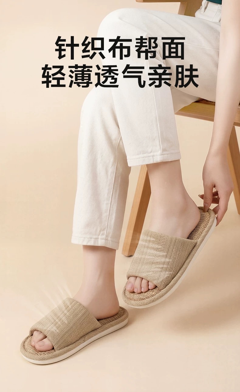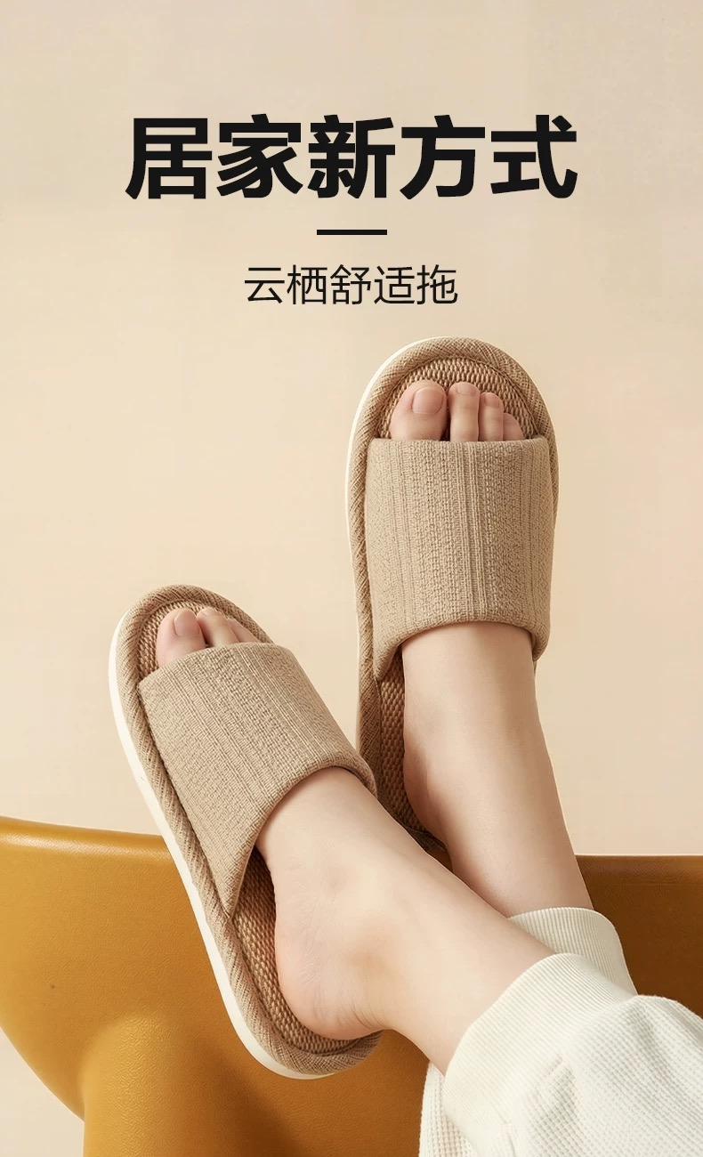 【6F】多样屋亚麻防滑拖鞋透气居家室内棉麻四季情侣拖 2026新款
