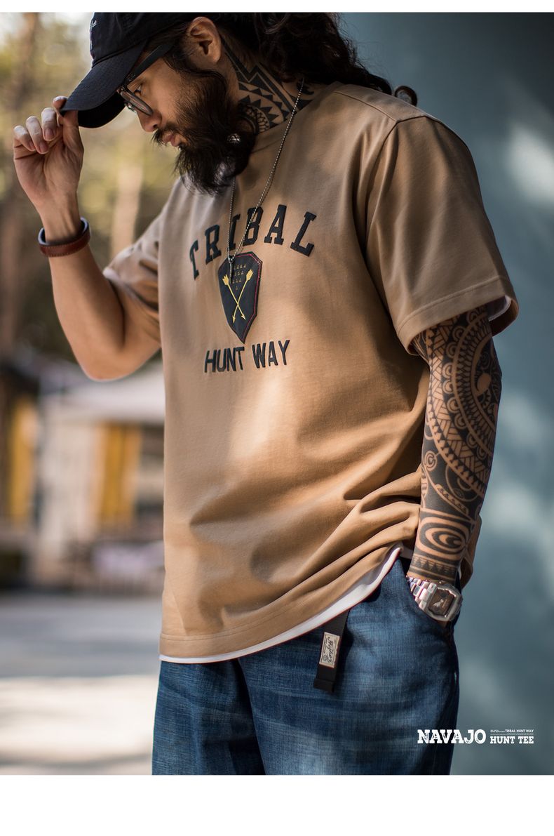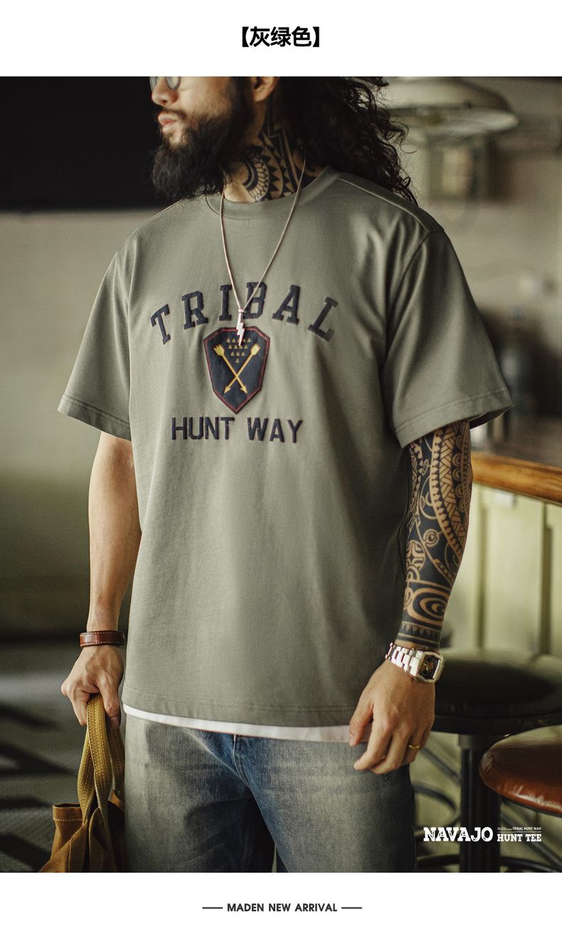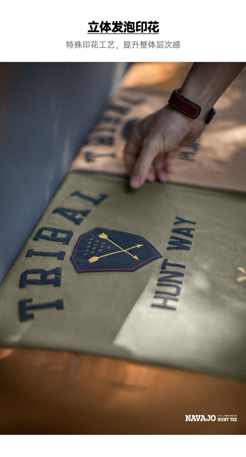 工装优选美式复古Navajo发泡印花印第安T恤纯棉宽松短袖男春夏
