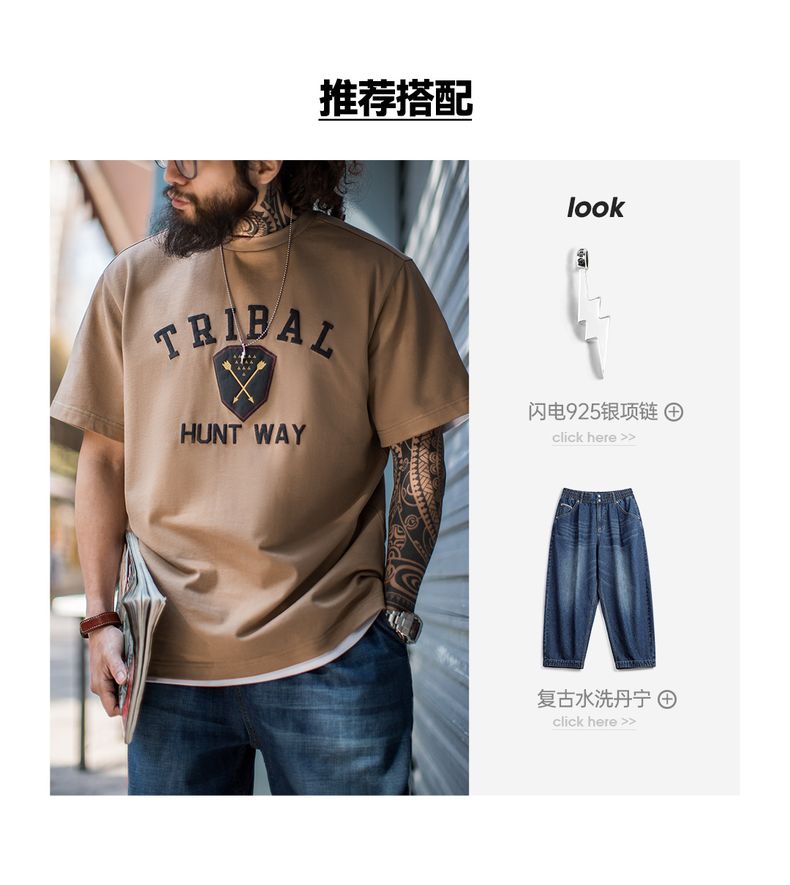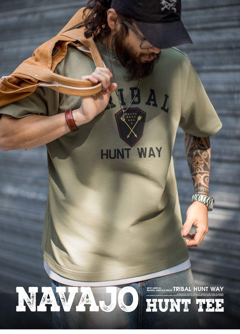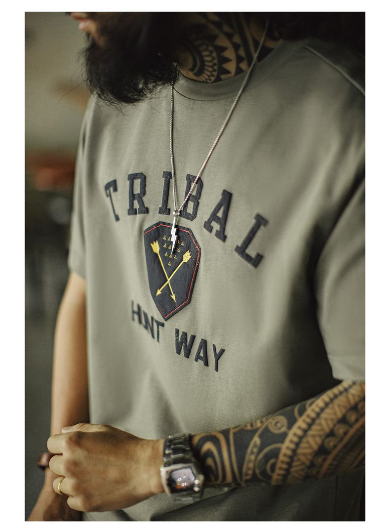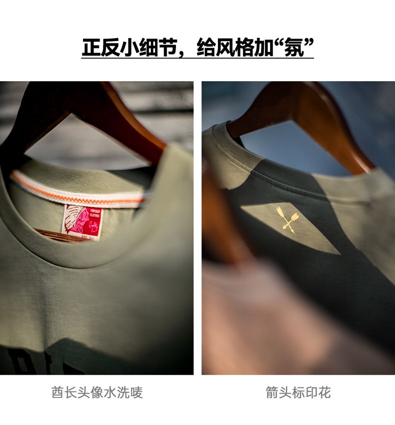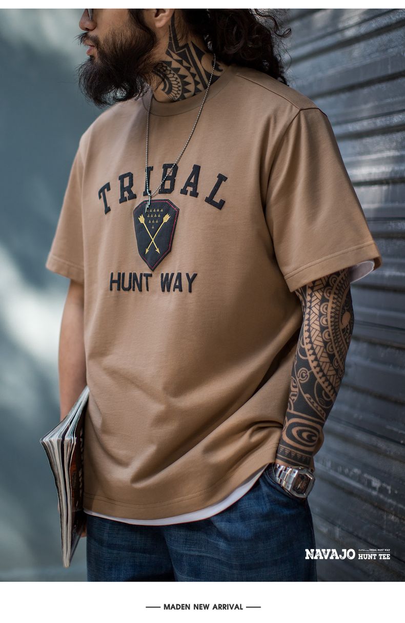 工装优选美式复古Navajo发泡印花印第安T恤纯棉宽松短袖男春夏