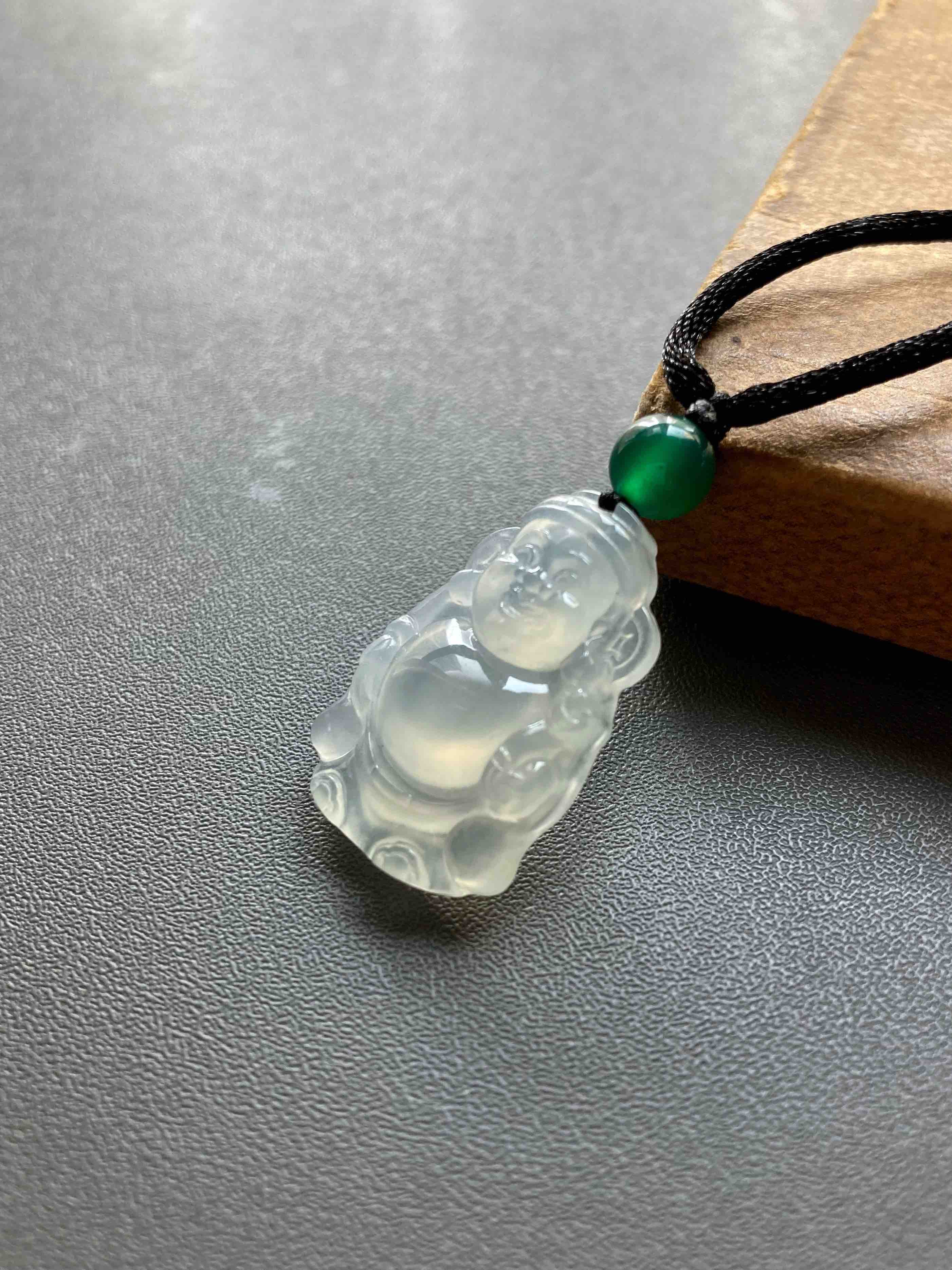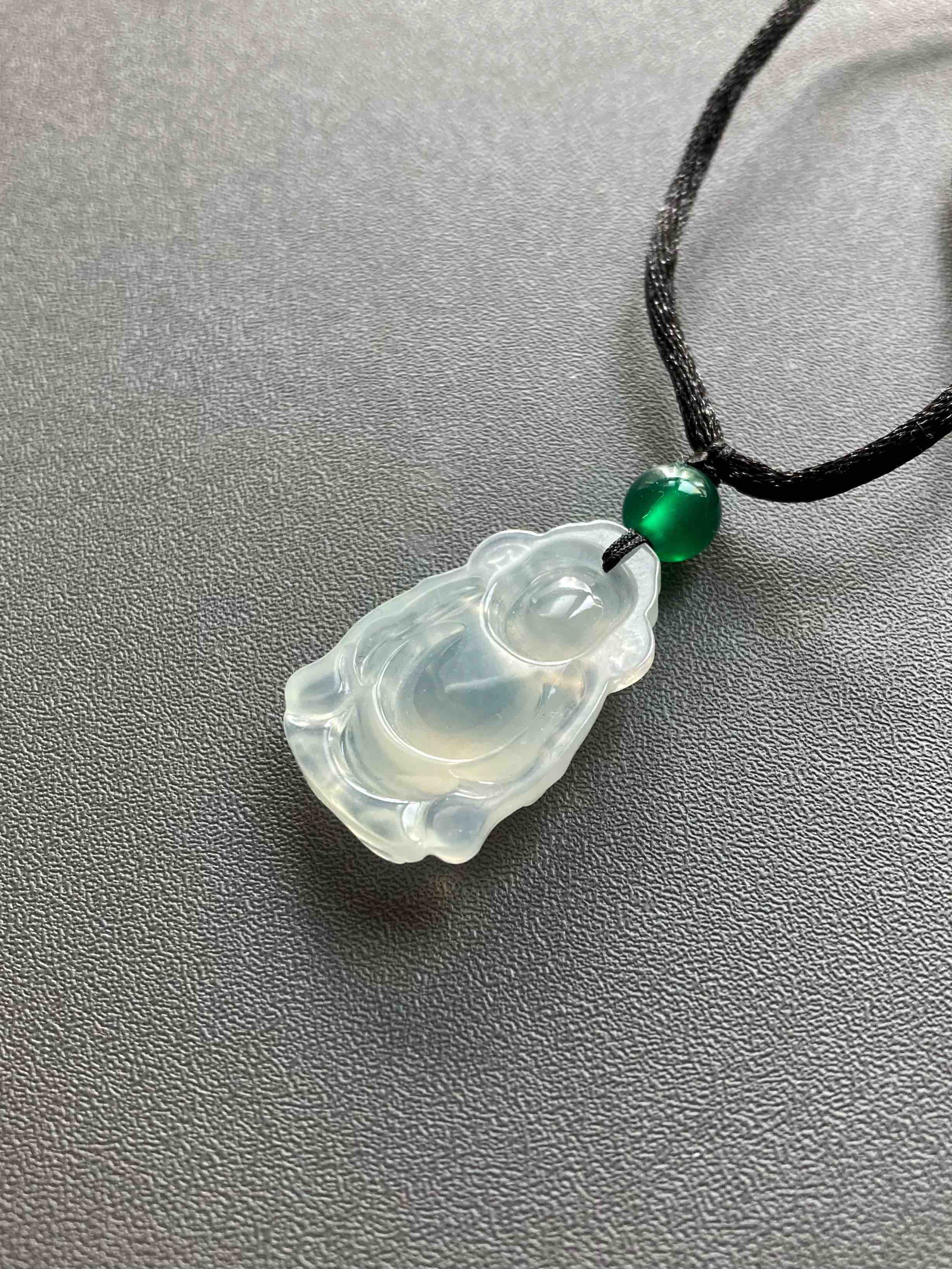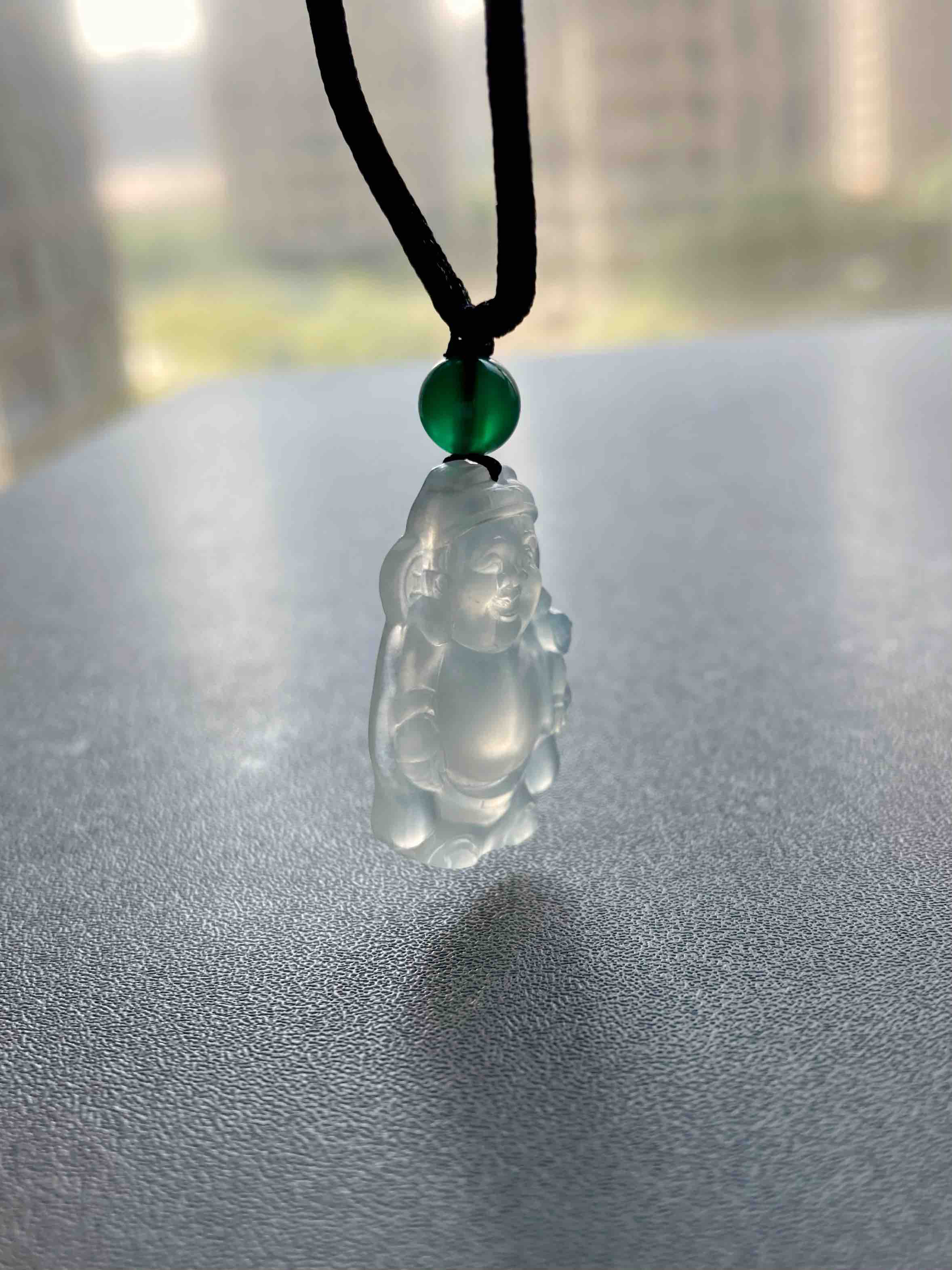冰种翡翠财神爷,放眼望去市面上找不到几个比这更漂亮的,招财进宝,添财运,种水棒极,荧光四射,尺寸厚实饱满,肚子鼓鼓像光球,这都是高规格好东西的标志,雕工好的东西看了就是舒服,这冰种翡翠财神爷,在雕刻师的鬼斧神工下活灵活现,尺寸25.2×16.3×5.1mm