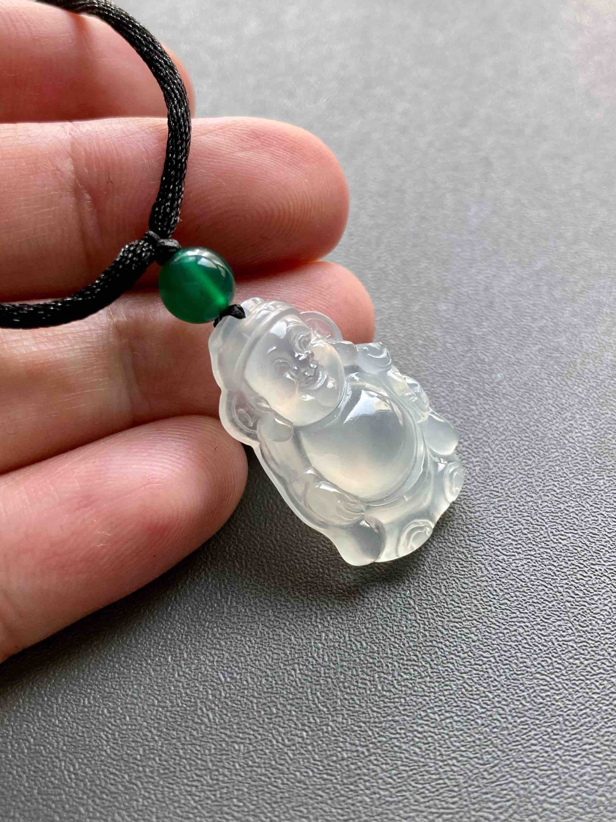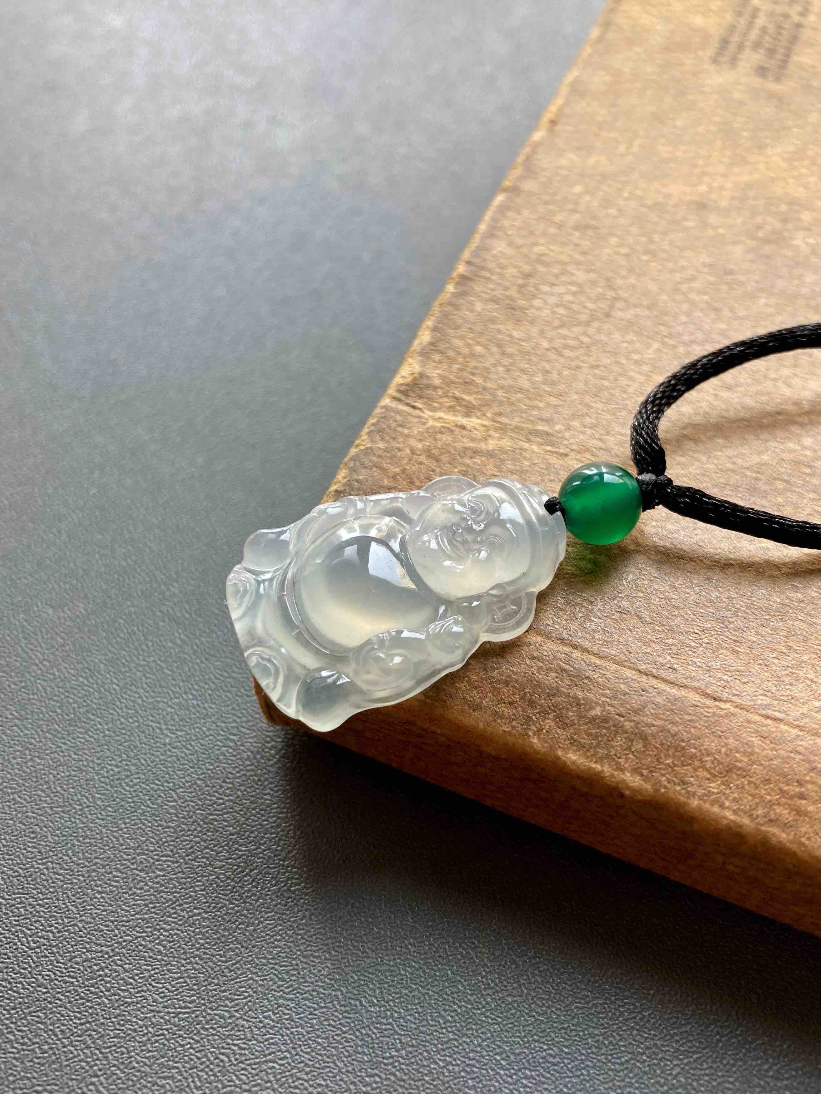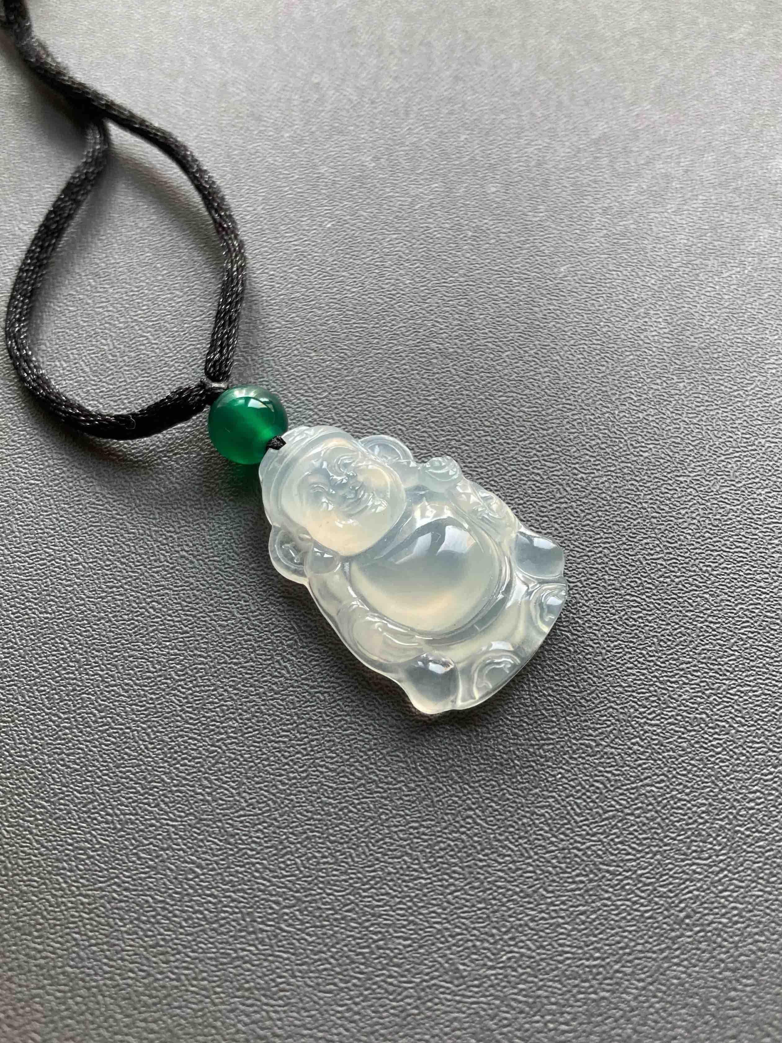 冰种翡翠财神爷,放眼望去市面上找不到几个比这更漂亮的,招财进宝,添财运,种水棒极,荧光四射,尺寸厚实饱满,肚子鼓鼓像光球,这都是高规格好东西的标志,雕工好的东西看了就是舒服,这冰种翡翠财神爷,在雕刻师的鬼斧神工下活灵活现,尺寸25.2×16.3×5.1mm