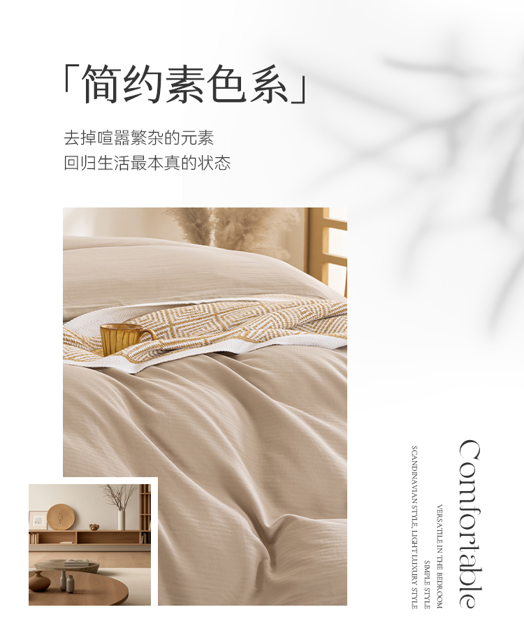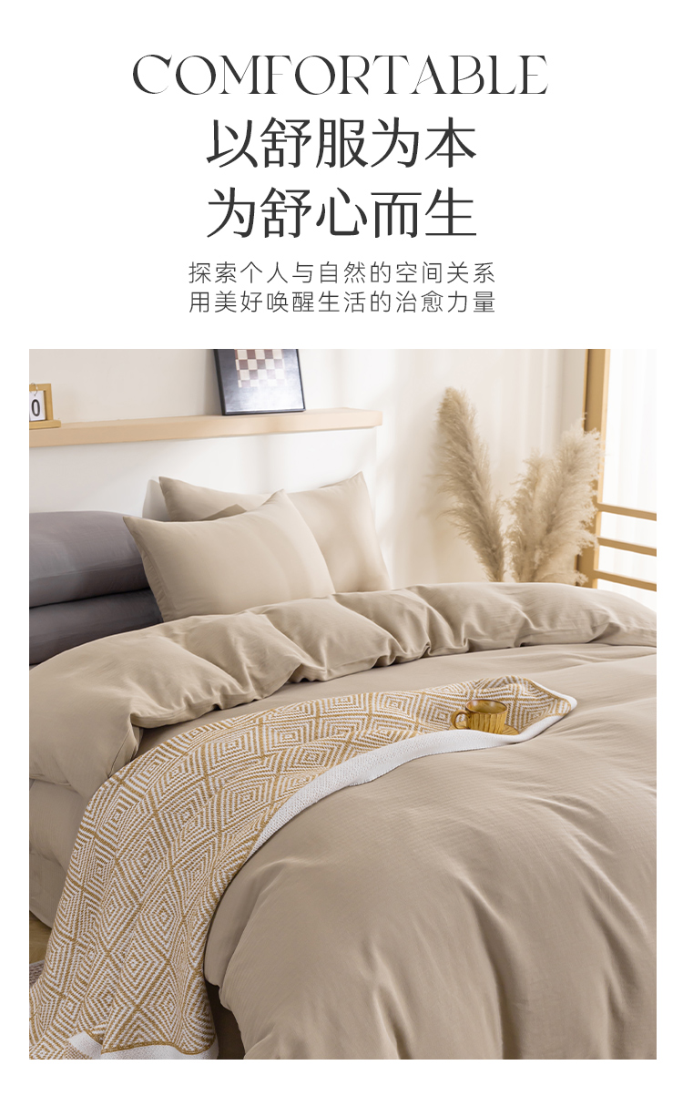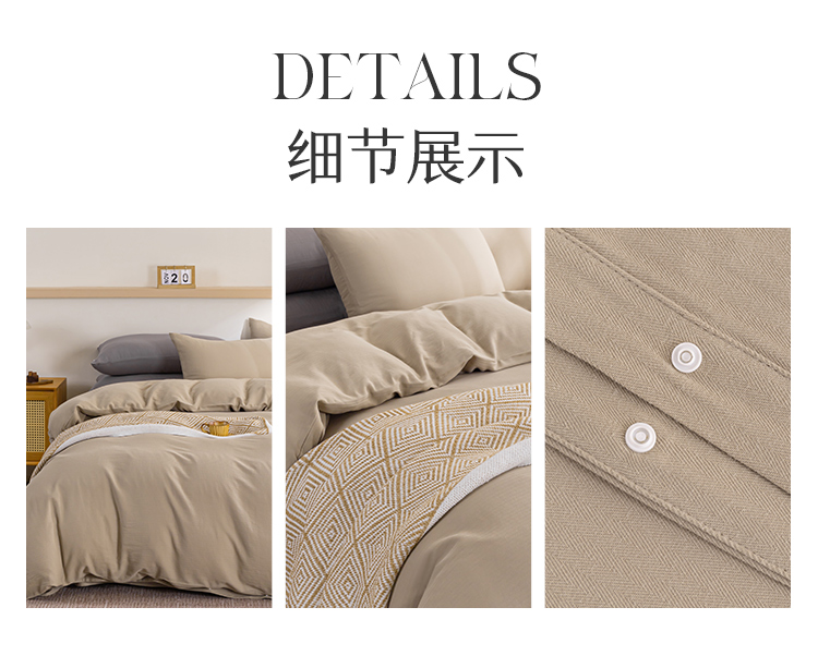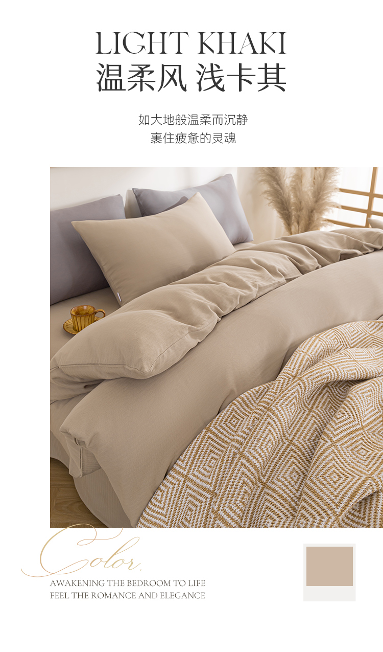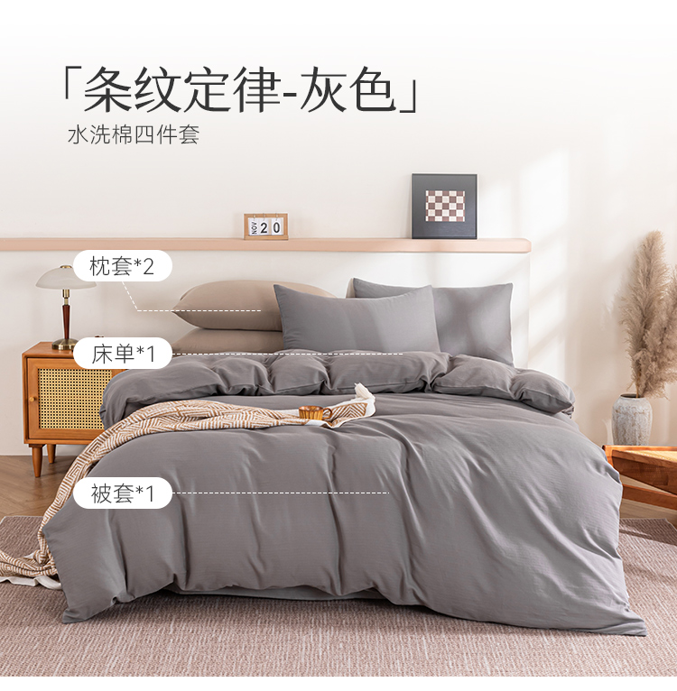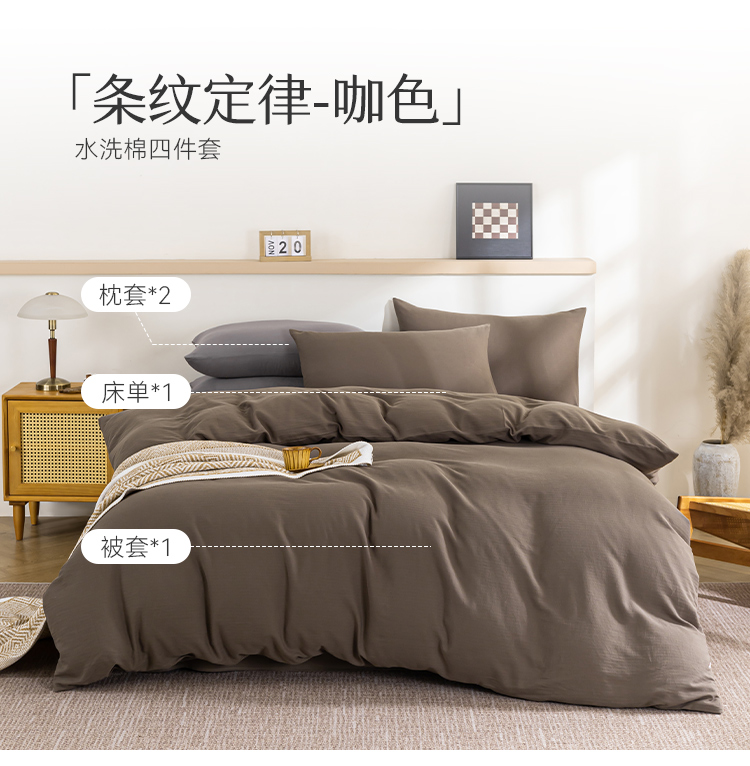 多喜爱 100%全棉简约素色系水洗棉套件 四件套 条纹定律(卡其、咖、灰)【亲肤呼吸】【越洗越柔】