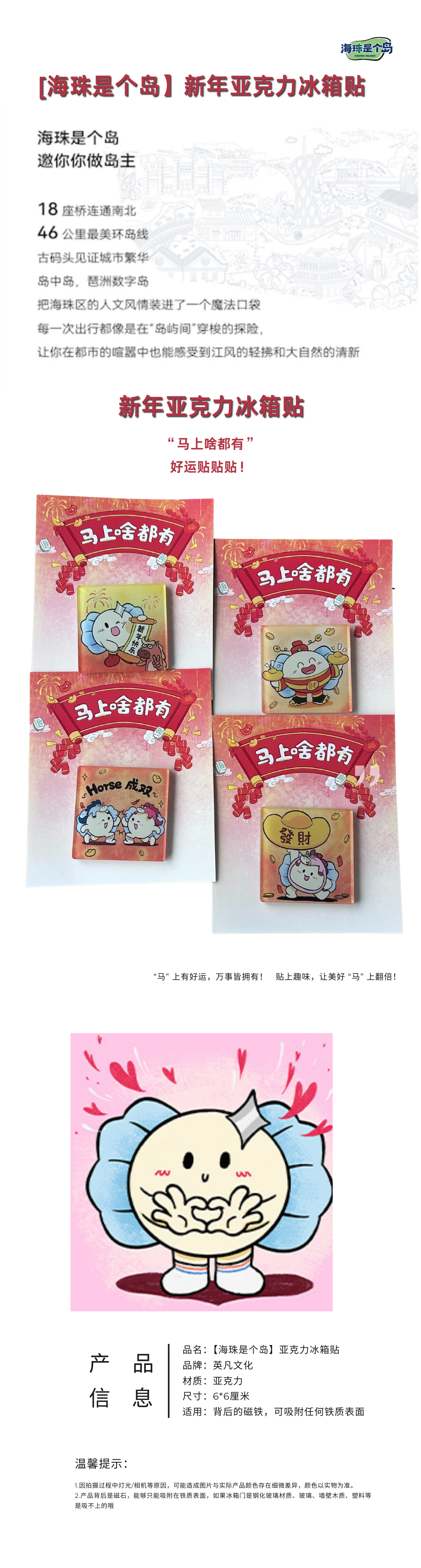 海珠是个岛亚克力冰箱贴9*4.5厘米
