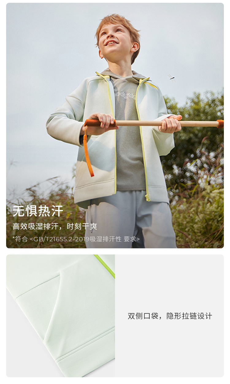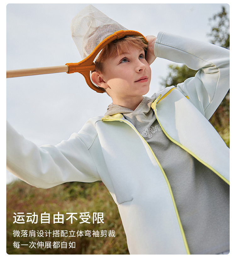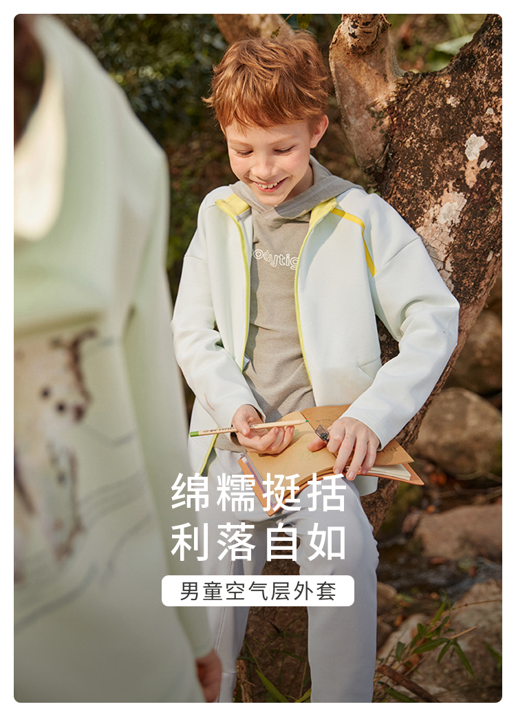 【专属】moodytiger男童空气层外套24年春季新品连帽宽松户外运动服41110401
