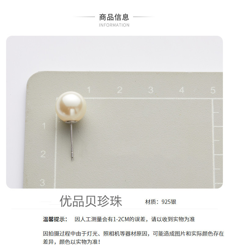 六鑫珠宝 s925纯银优品正圆珍珠耳钉