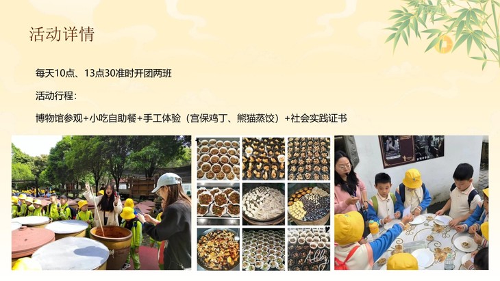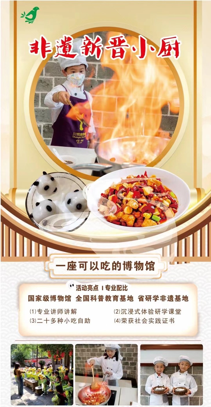 1组成团.厨神争霸赛【川菜博物馆-半日研学】一座可以吃的博物馆,278元/儿童,深入学习非遗川菜文化,学习川菜五味,烹饪宫保鸡丁,熊猫蒸饺,含社会实践研学证书