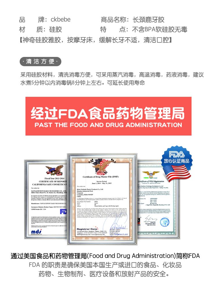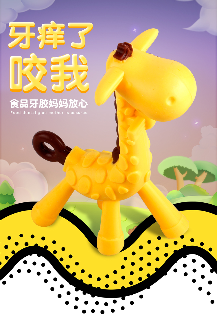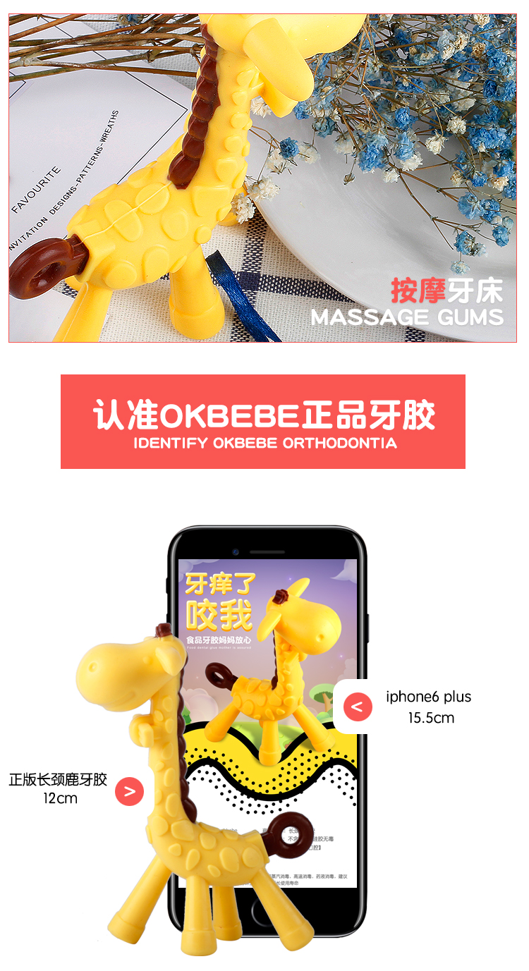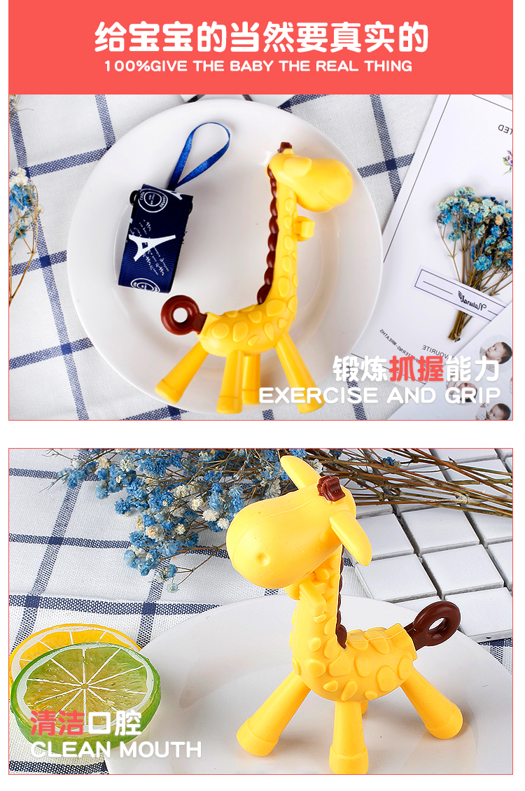 CKBEBE婴儿硅胶牙刷乳牙磨牙器长颈鹿牙胶咬胶咬咬乐带收纳盒