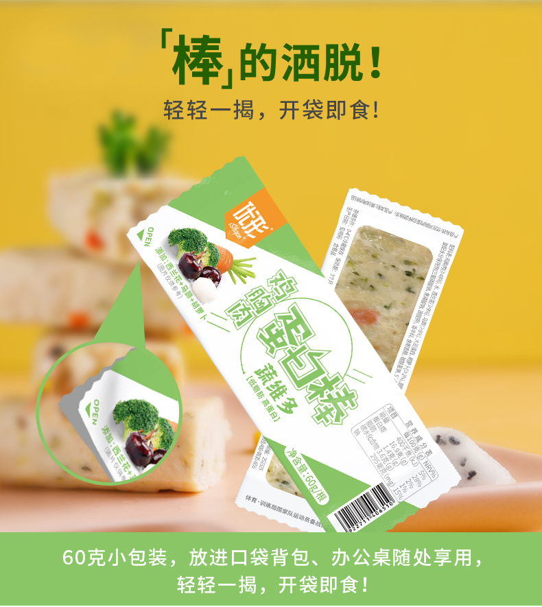 【多口味可选】优形鸡胸肉蛋白棒60g(谷物多/蔬维多多口味可选)