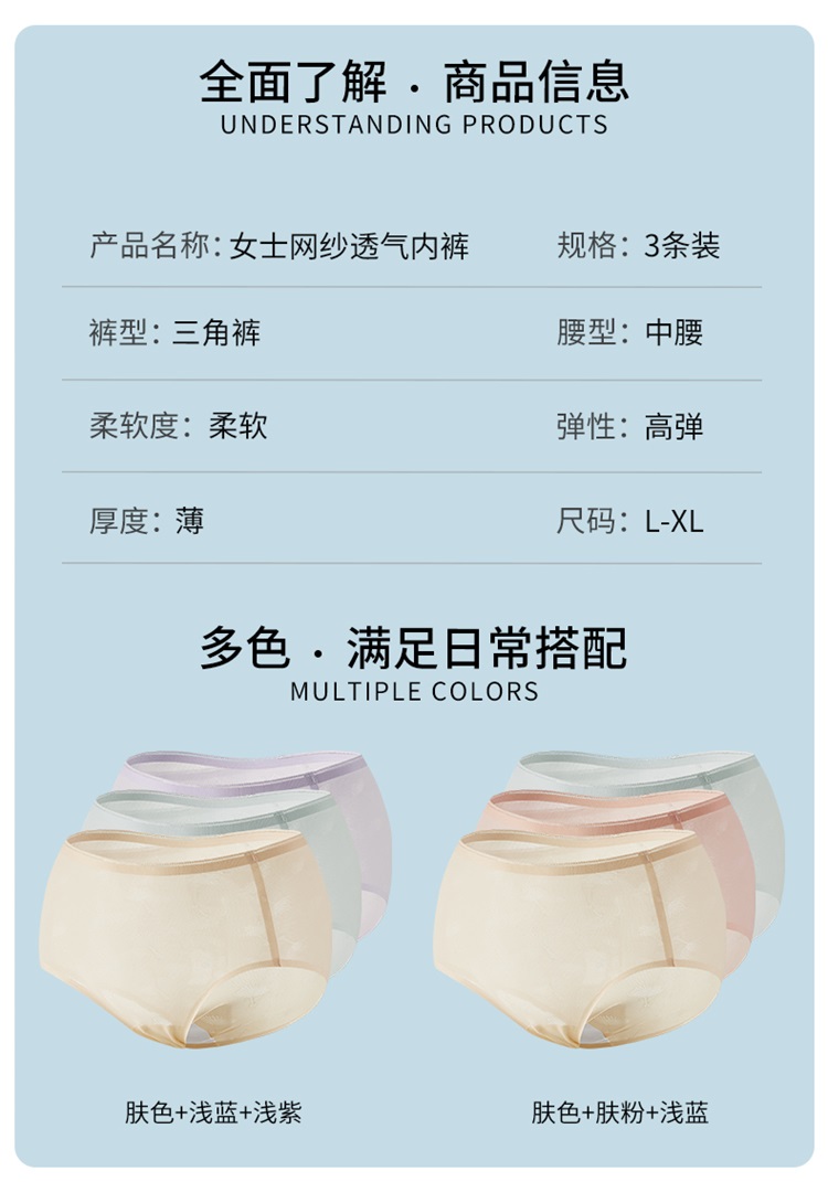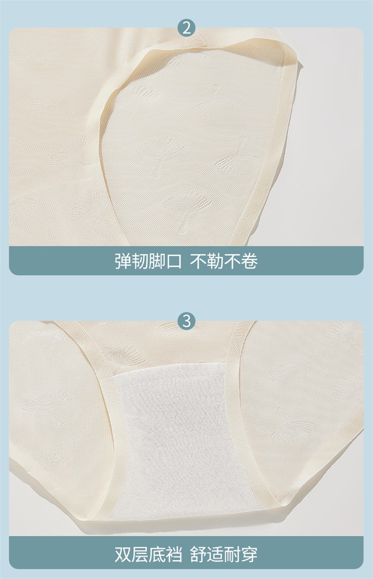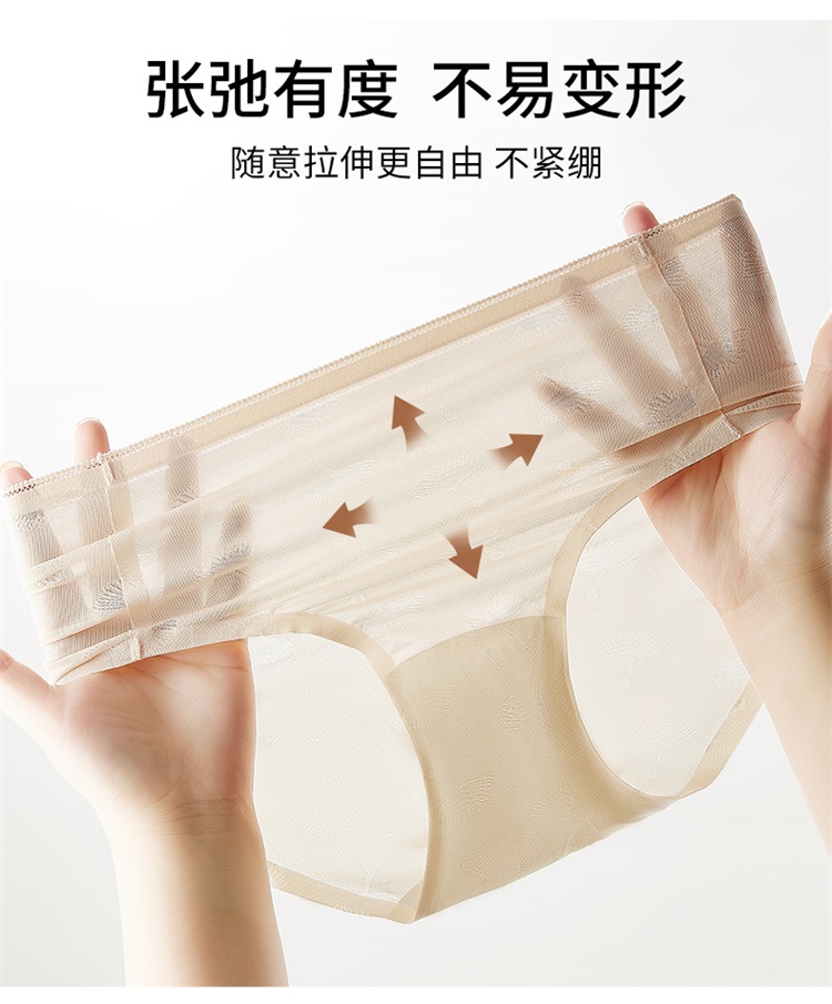 雅黛丽内裤女棉质底裆亲肤网纱透气中腰三角裤性感蕾丝高弹短裤头