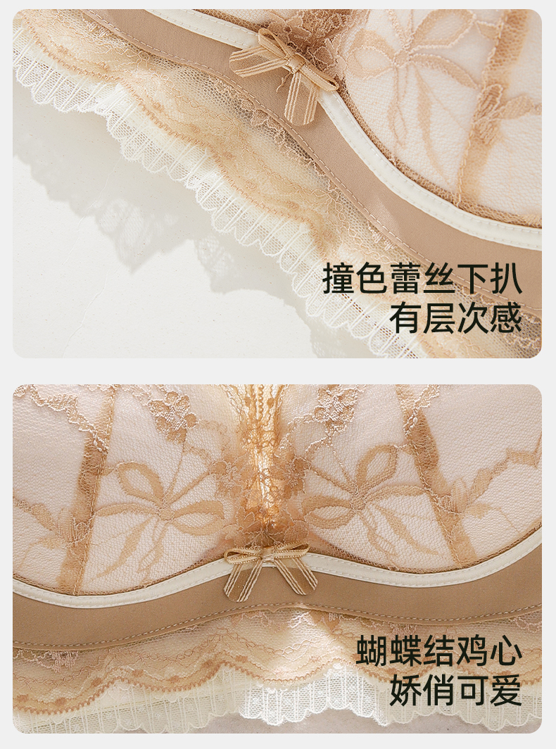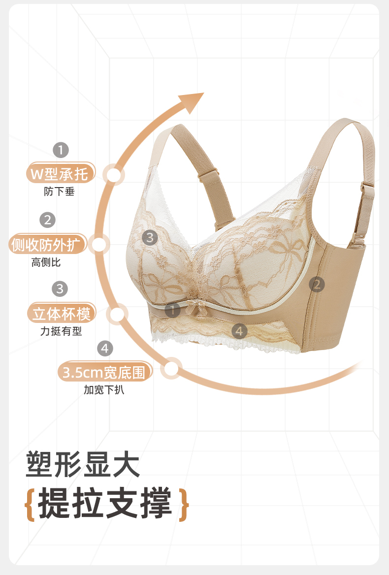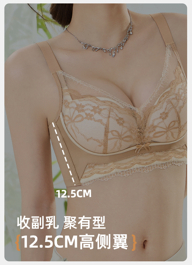 雅黛丽内衣女小胸聚拢显大7A抑菌杯侧收防外扩美背性感蕾丝文胸罩