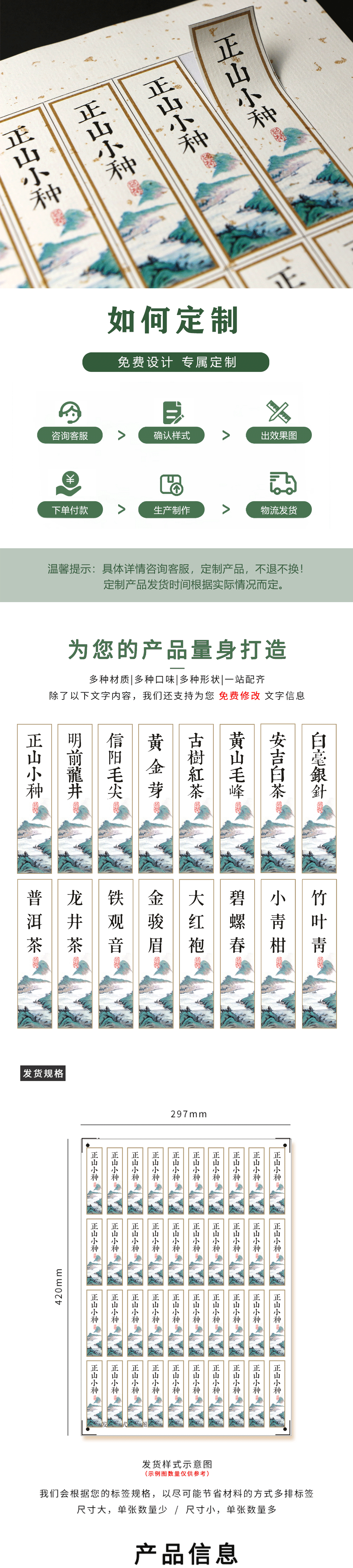 正山小种毛尖茶标一张6元, 满300元河南省内包邮