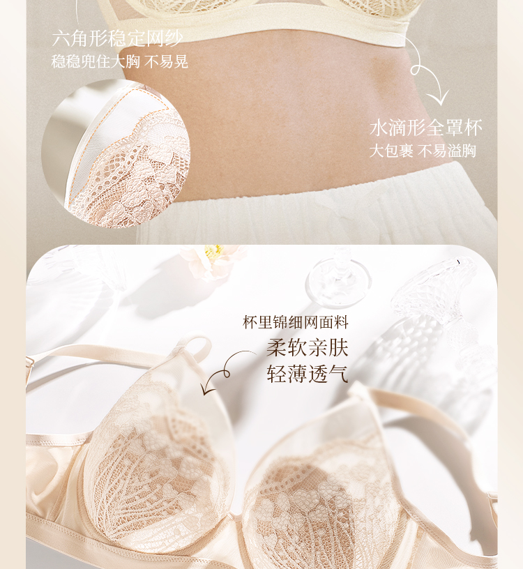 奶糖派微甜蕾丝大杯文胸全罩杯内衣大胸显小防凸点文胸罩女