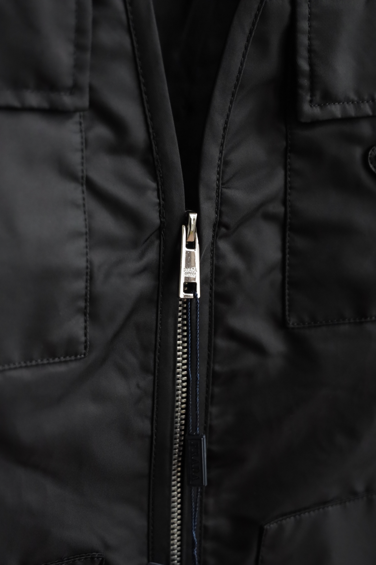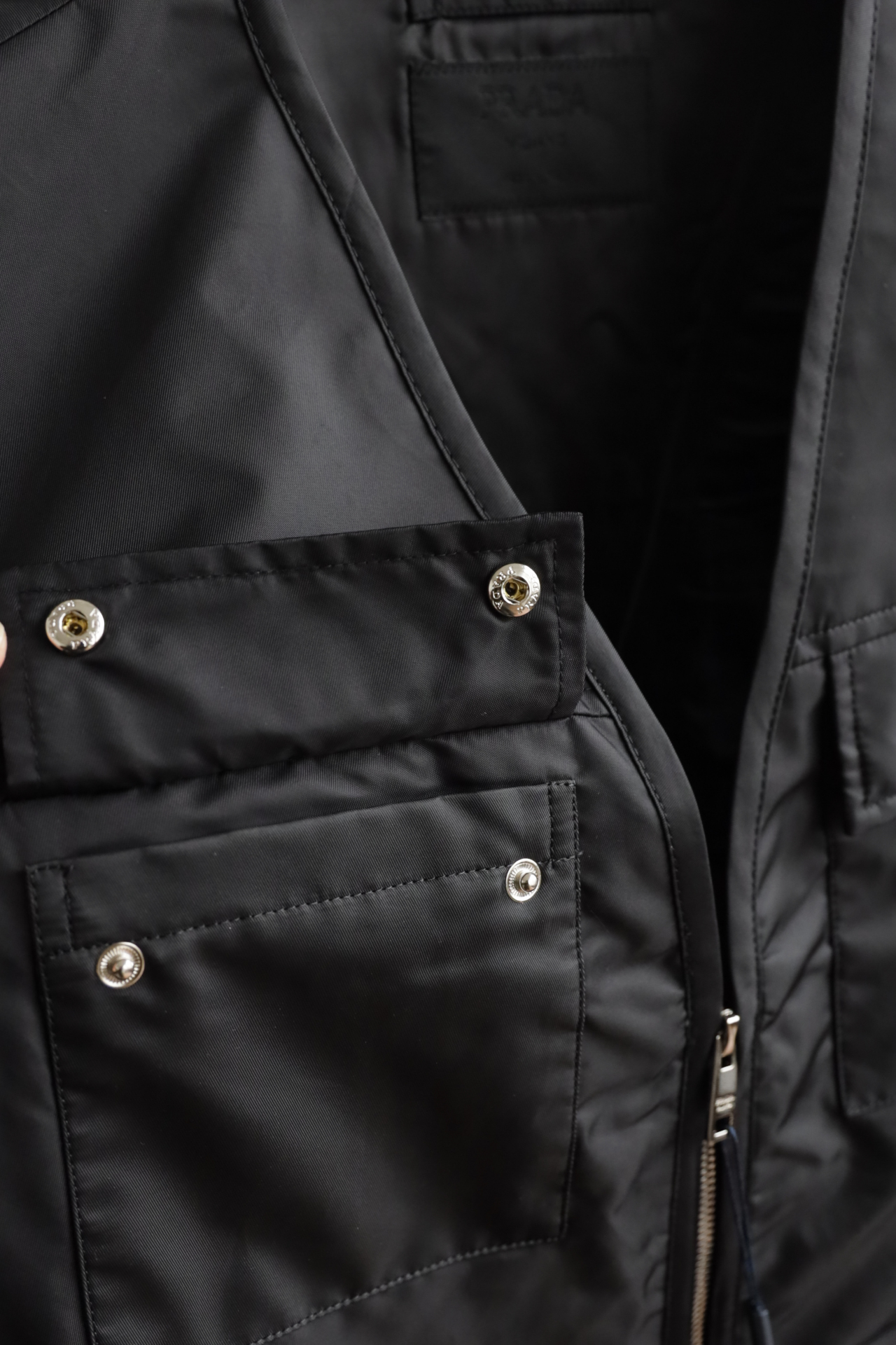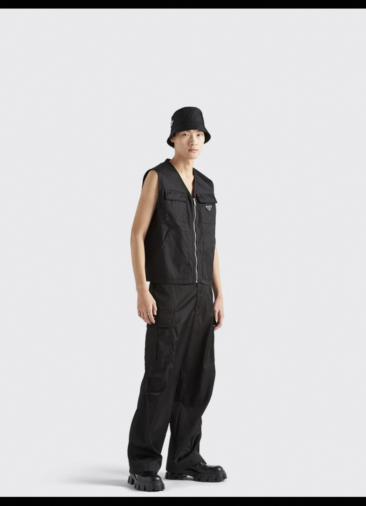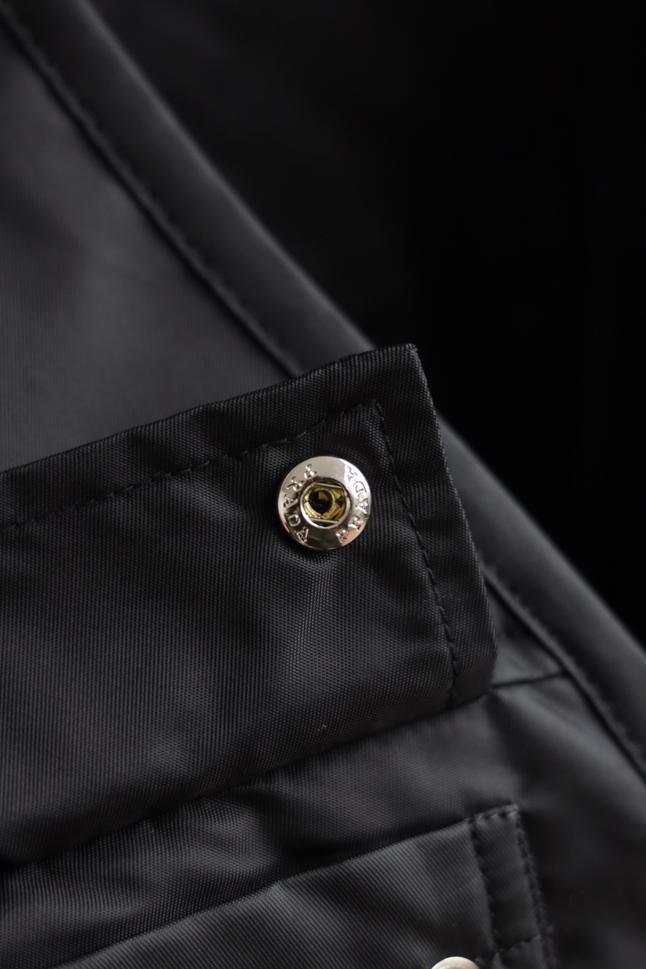 衣身取材Re-Ny1on再生尼龙打造,配搭功能性口袋和中心拉链。标志性的涂珐琅金属3角形徽标装点正面。