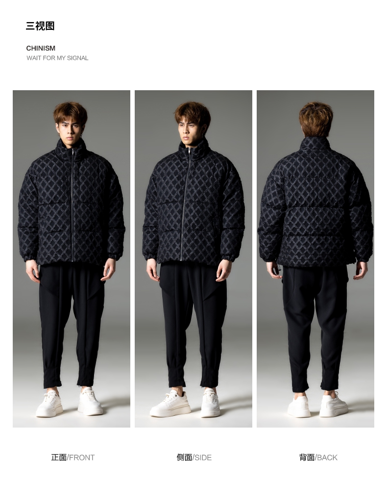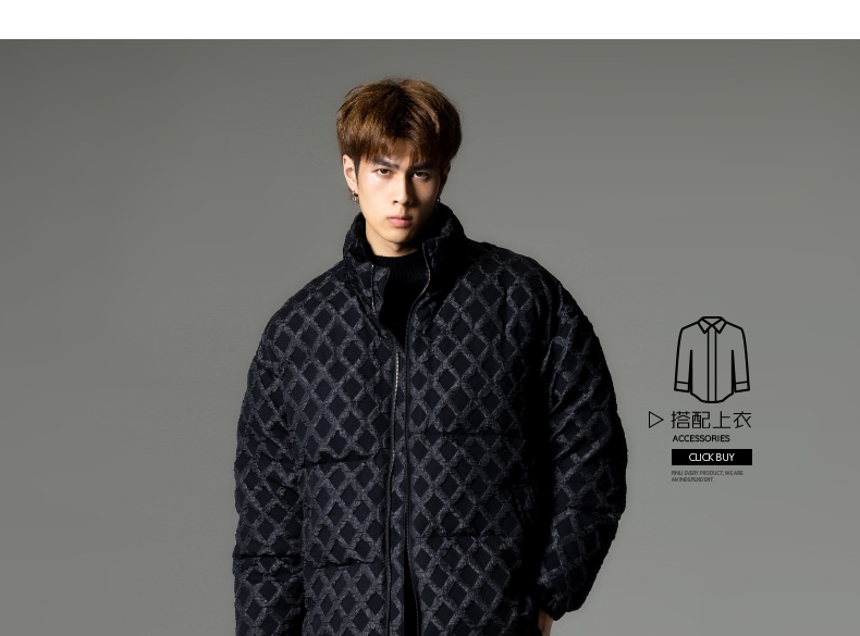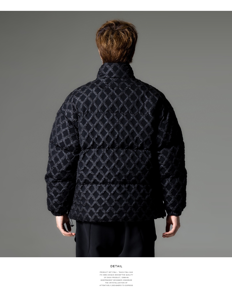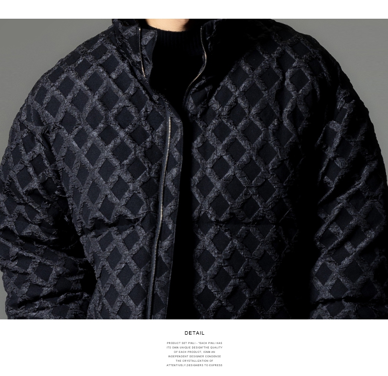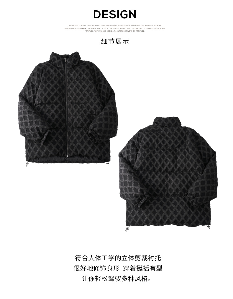 PINLI品立秋冬新品华夫格立领羽绒服潮牌短款加厚面包服外套B233208089