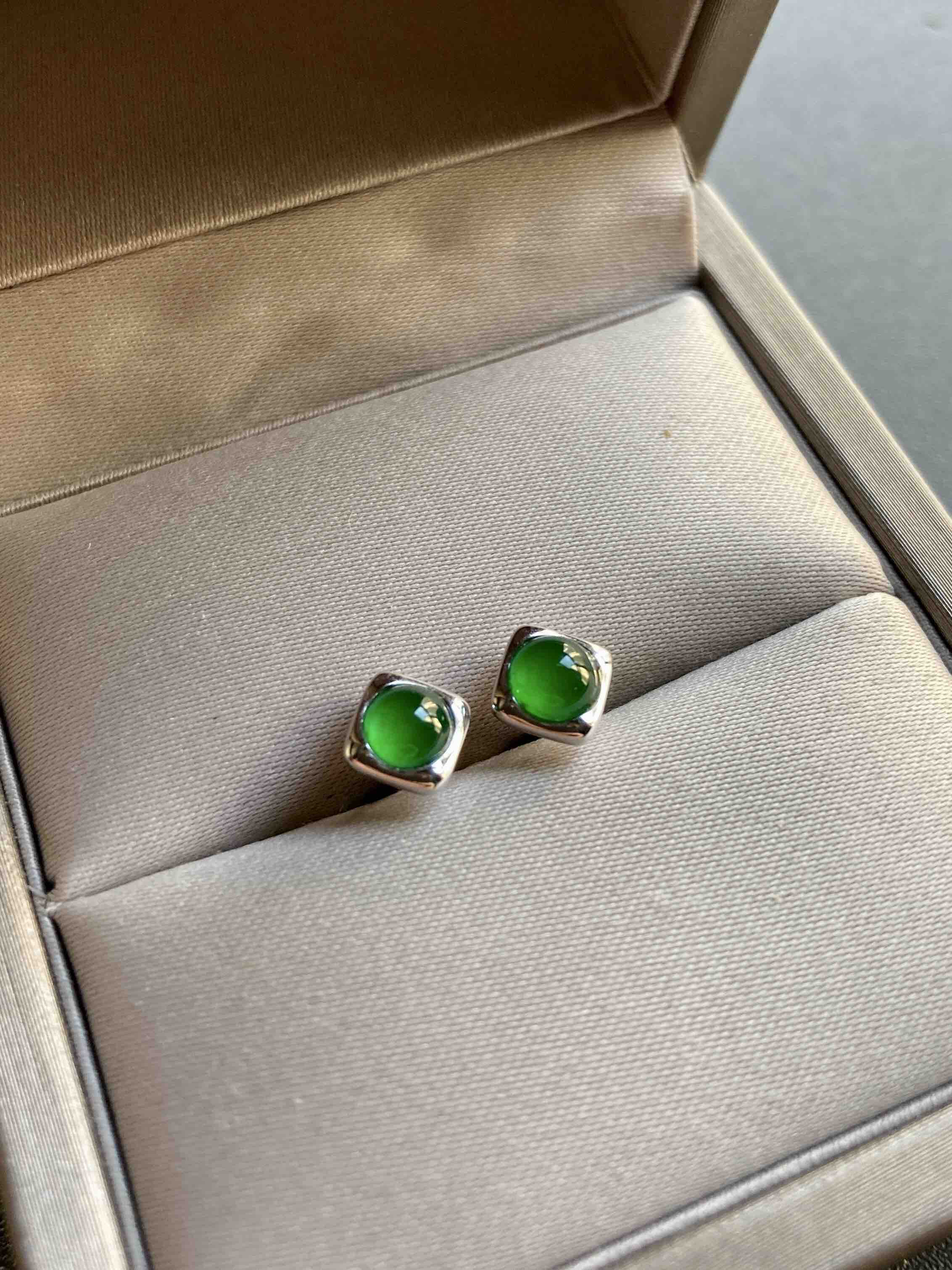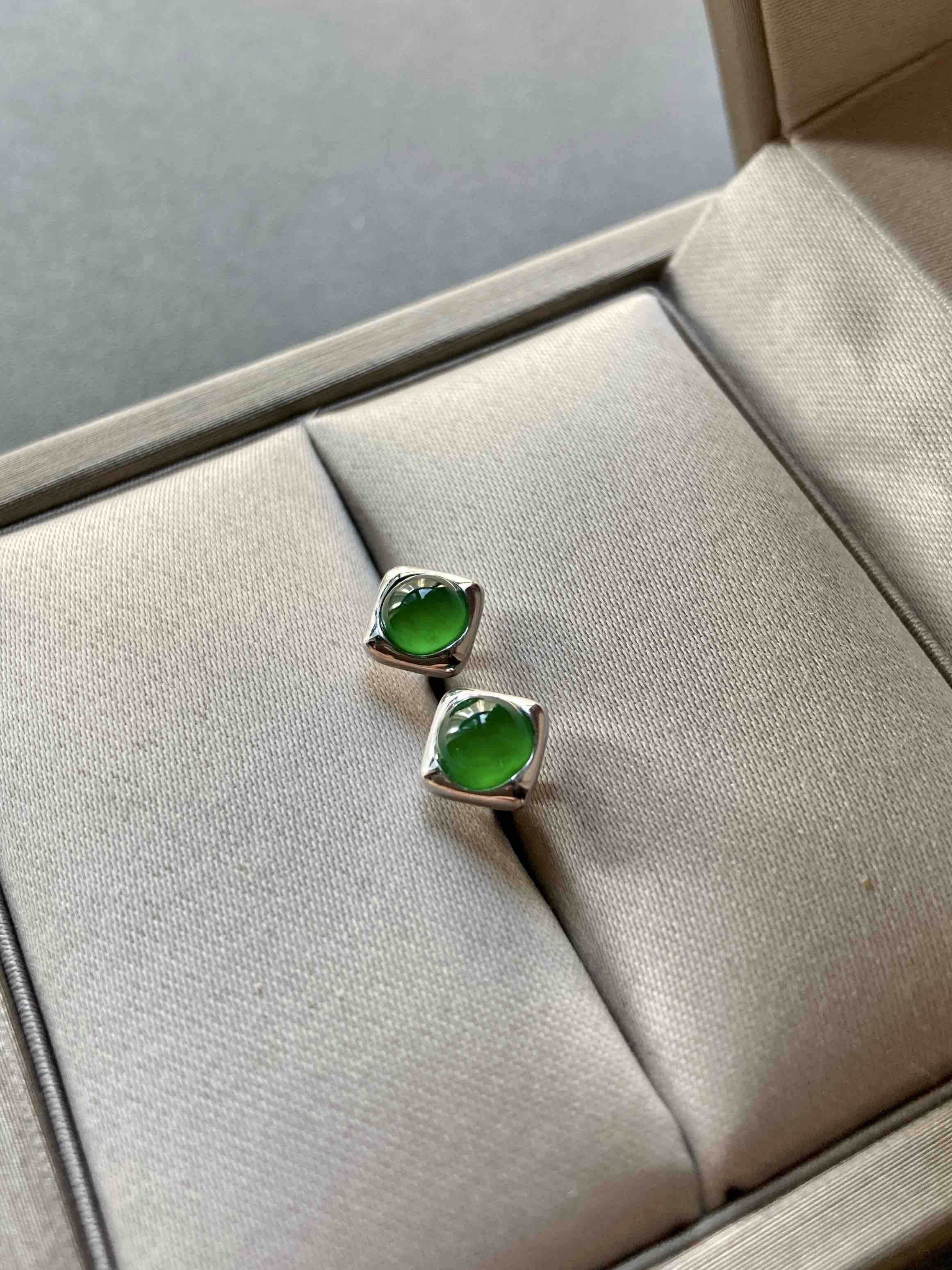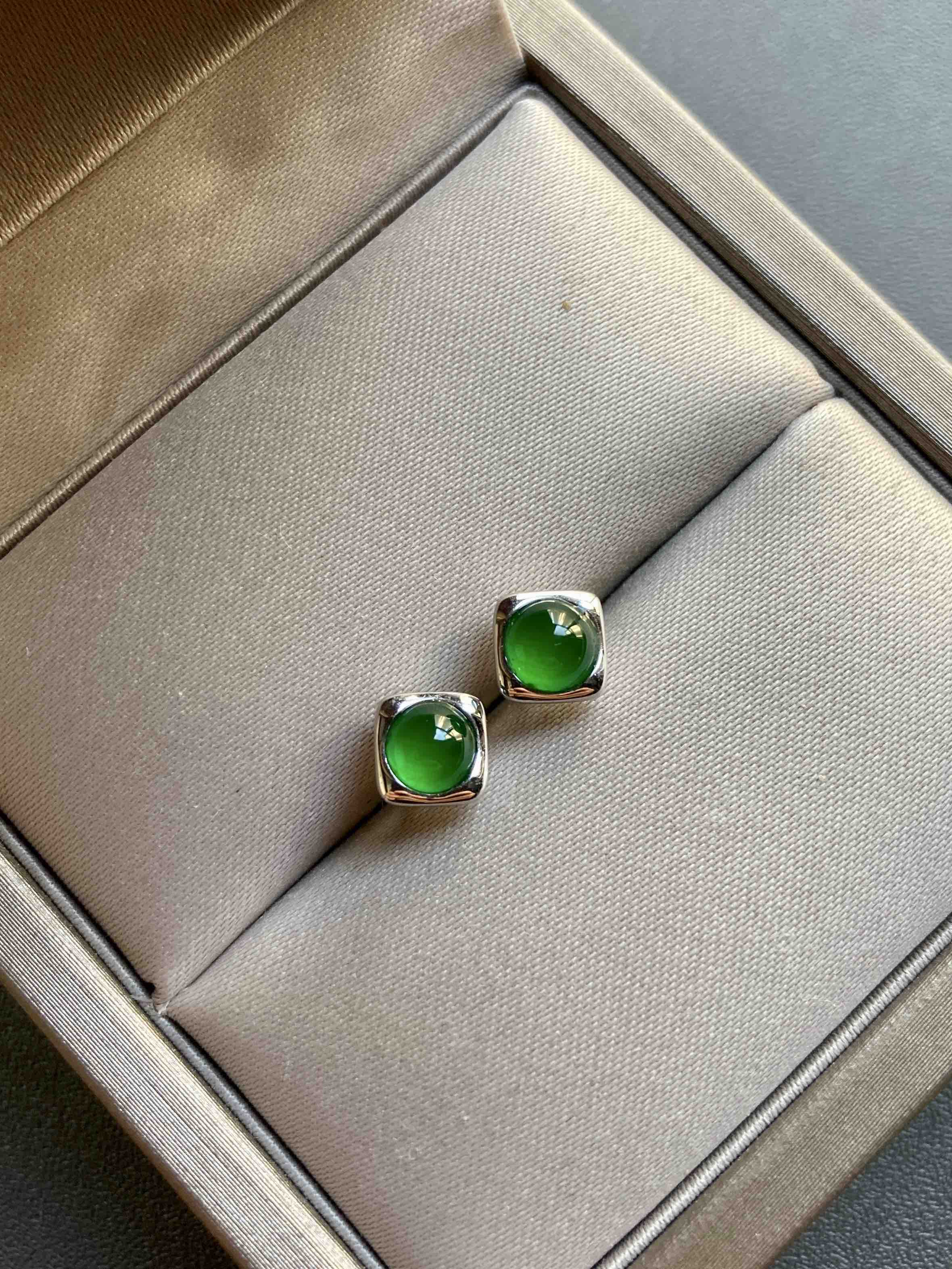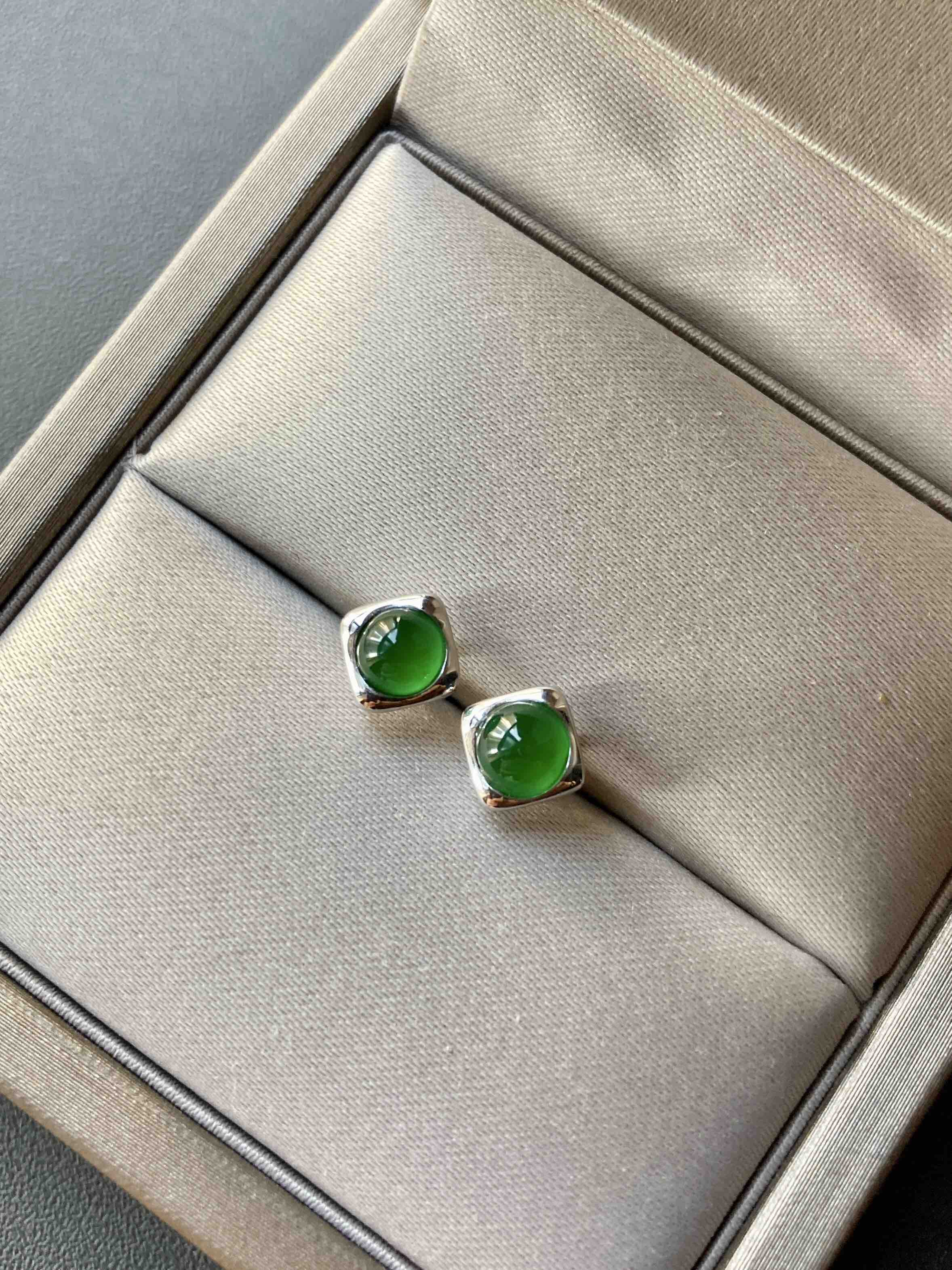禄来家的小爆款,小四价位拥有任何人都能驾驭的高冰种阳绿蛋面耳钉,时尚,简约,稀有圆蛋,厚实饱满,18k白金镶嵌,实在太好看了,日常佩戴百搭款,只要小四价位,蛋面4.3mm,蛋面5mm。两对