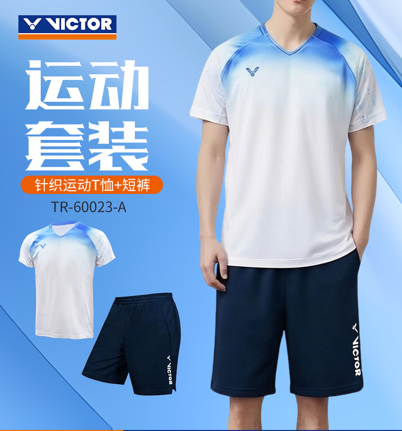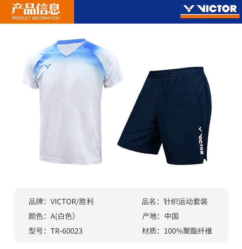 VICTOR威克多胜利羽毛球服速干男女款舒适短袖短裤运动套装TR-60023